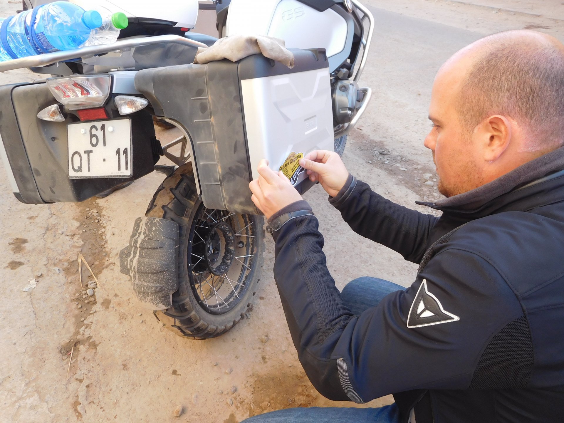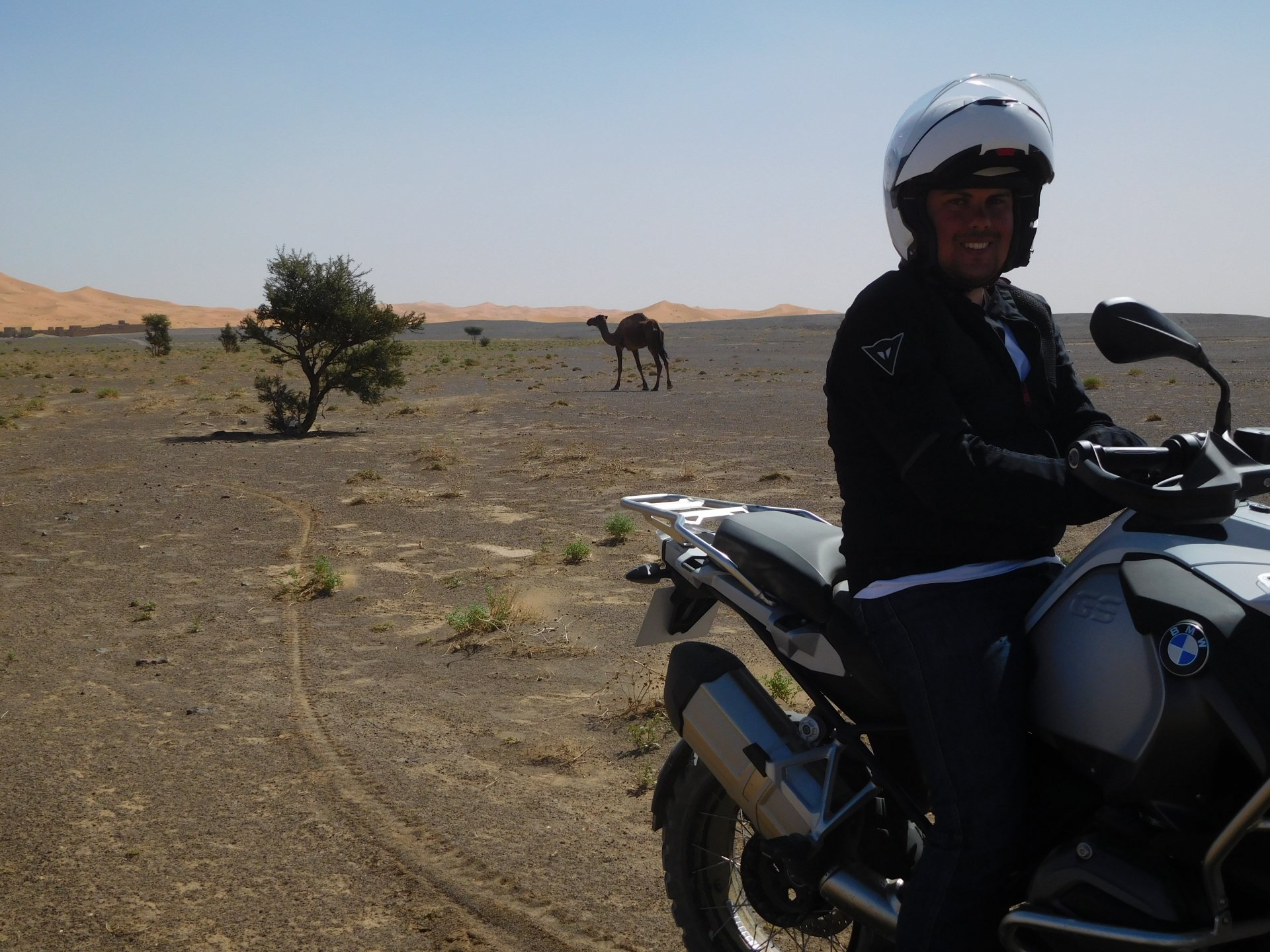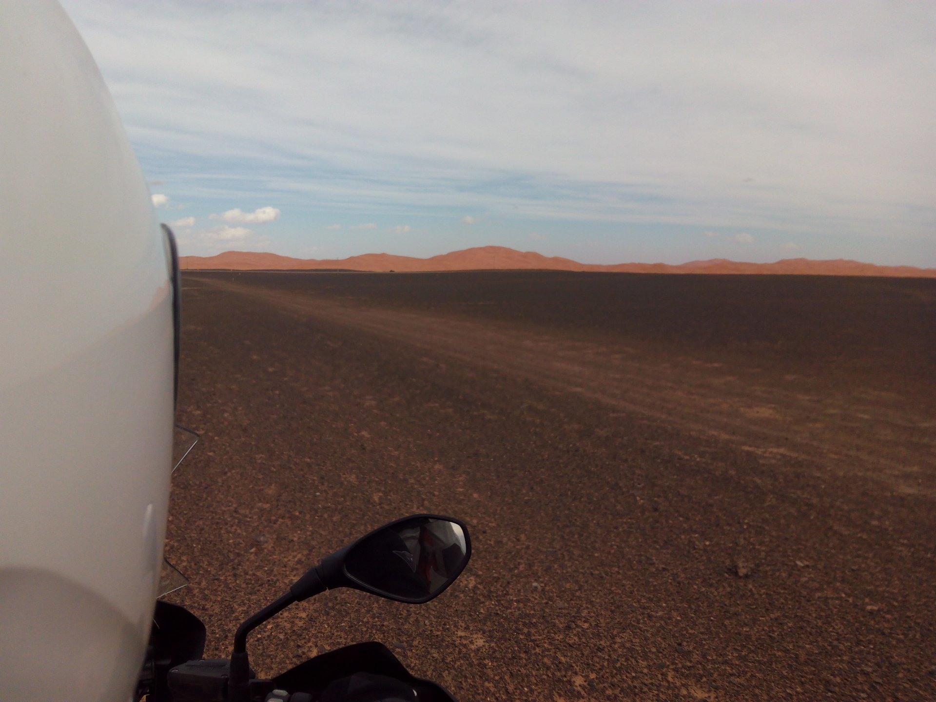 The group's goals for the day were to do a little motorcycling in the morning, a little lunch, some relaxation by the swimming pool, and watch the sunset on top of a dune. Good goals! Sunrise was pretty great Some light exploring to be done There's an offroad route from Merzouga to Mhamid, and I'd really like to make that route on my bike. Rui was adamant we couldn't do it, and to be honest I didn't really feel very happy about some of the soft sand sections that were bound to appear. Regardless, I went to scout for a few kms. In Portuguese, you see Rui jokingly complaining that they are suffering from the heat while I'm ok cause I've been riding for hours (I had been gone for 5 minutes) Eventually I'll try and do that route, the Vario cases might not be the smartest idea, though, and the GS is not the smartest tool for the soft parts either. As per plan, lunch was had, something about waking up early and riding bikes makes me hungry Then, onto the hotel via a souvenir shop for Rui to get something for his kids and wife. I took the chance and discreetly got something symbolic for Maria as well. I then proceeded to refresh myself and indulge in an afternoon of cold drinks and cold swimming pool. When we were up on the dunes waiting for the sunset, I did something I regret not doing sooner, which was to surprise Maria with a proposal, she said yes. This was most likely the happiest day of my life. Right before sunset the wind picked up and it seemed like a sand storm was forming, but eventually it didn't, just kicked enough dust into the air to make it not very nice to be on top of a dune. We retired to the hotel's shelter and had a delicious vegetable tajine for dinner. The greatest day!