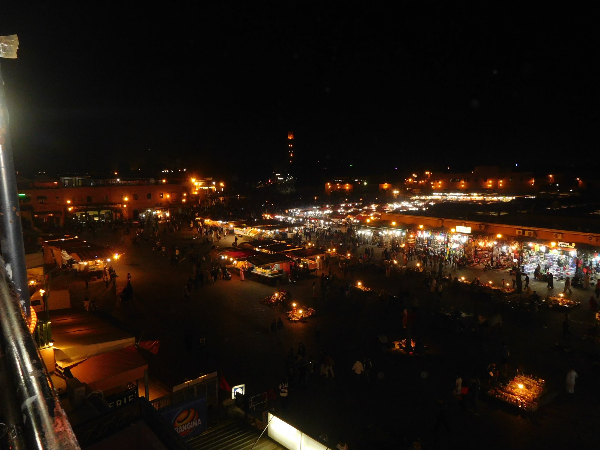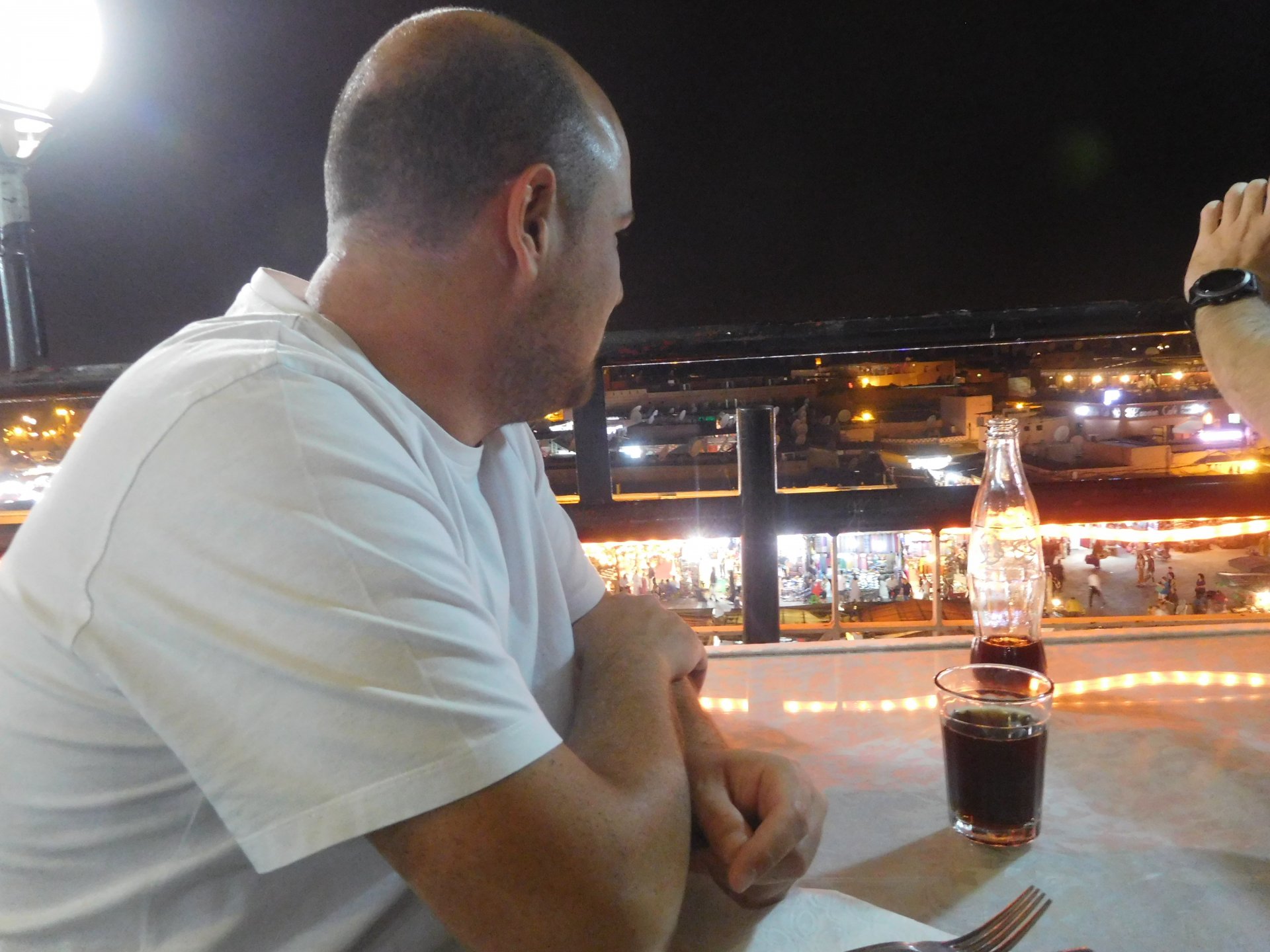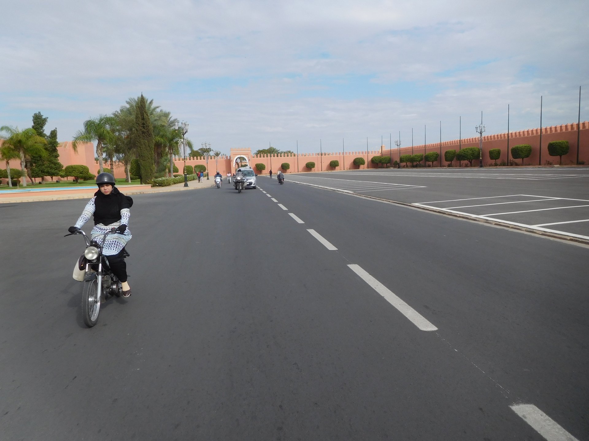 After a great night's sleep, we woke up rejuvenated and happy. After a nice breakfast with some proper dark coffee, I took the bike out to the street with a smile. We were off to Marrakesh via part of the High Atlas. It looked promising of great roads and views, we weren't disappointed, but first a stop by the local post office so that Rui could send his daughter's school class a postcard from a small forgotten village in Morocco written in berber. Took him long enough, weather actually changed from morning crispness to hot while he was inside , and we're finally going again! After a while we reach the mountains. Road porn? We were passed by two road bikes going way faster than I wanted to, Rui couldn't hold back any more and went in pursuit About an hour or so of pretty boring riding later, and we're entering the outskirts of Marrakesh A door into Marrakesh We rode around Marrakesh's wall, and visited the reservoir. This reservoir was built in the 12th century to water the Menara gardens and olive trees, it's impressive that it brings it's water from the high Atlas, way in the distance. We were all pretty hot and sweaty now, and negotiated past Marrakech's traffic to get to our hotel and freshen up. And refresh we did Reaction to whatever joke I just finished as always, Rui turned up just in time, just in time for us to go out After a nice shower and some clean clothes, we were eager to go out for dinner in a city where we had spent a few days the year previous, and show it off to our new friend. Rui was going to part ways with us on the next morning, he was supposed to be at work in three or four days, and still someone to visit before being home, so time was ticking for him. Me and Maria were to ride from Marrakech to the coast, and then follow the coast up to see Casablanca and then a stop at our favourite luxury hotel in Tangier before heading home. On our way to Jemaa el-Fna square (look it up) we came accross @Tym's paradise You want to taste something truly great? try one of these orange juices: They're squeezed from cold oranges and a full glass costs pennies, the orange flavor in these is nothing like you can taste in the UK. Jemaa el-Fna is busy, lots of people, lots of food stall, lots of coal grilling, lots of smells and then there's Marrakech's Medina, which branches out from the square. Good thing they don't serve alcohol there because it's easy enough to get lost sober. We found a 1st floor balcony to have some dinner while looking at the bustling square below: Walking back to the hotel after dinner and a few drinks (of coca cola ) we were happy but also sad to be ending ou trip together. In the morning Rui would be getting on the motorway and go at Mach5 on his way to Portugal, at least that was his plan but you know how things went with him We made plans to see each other often.