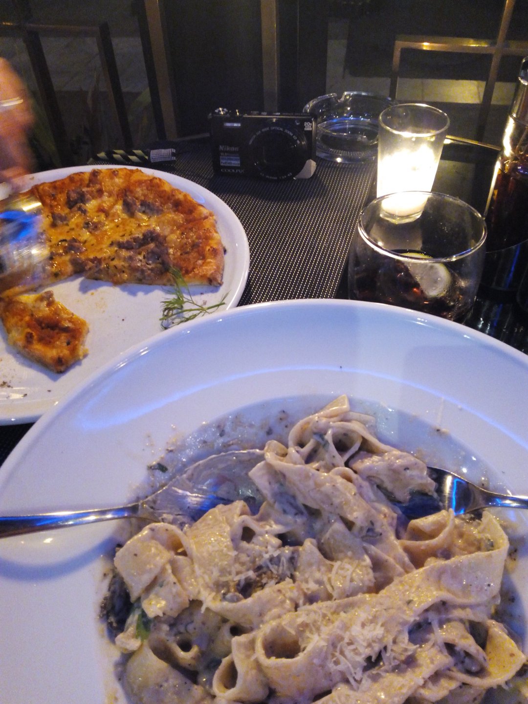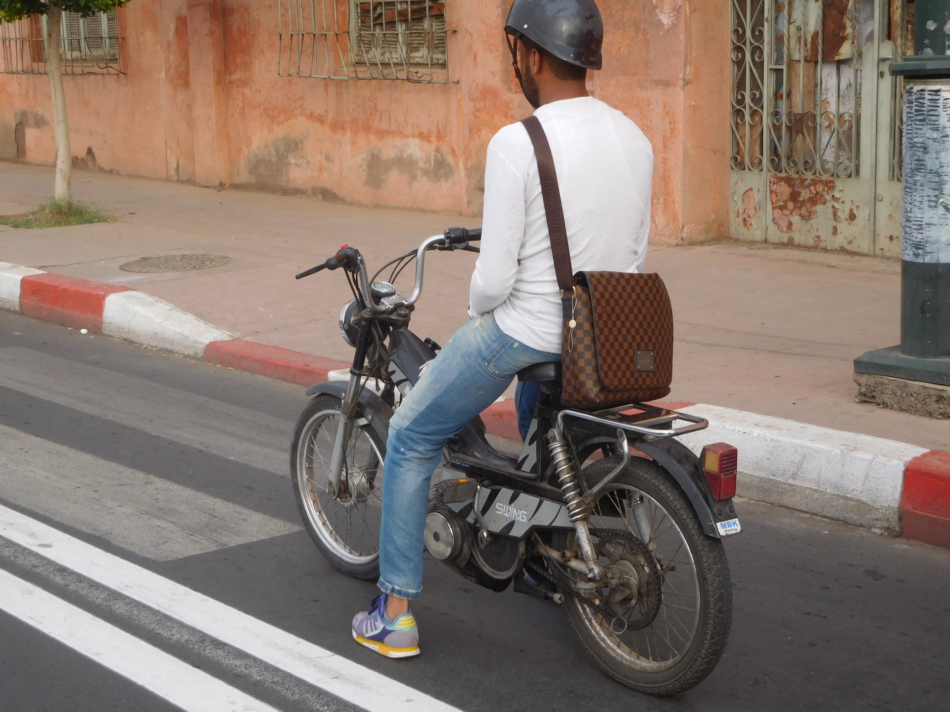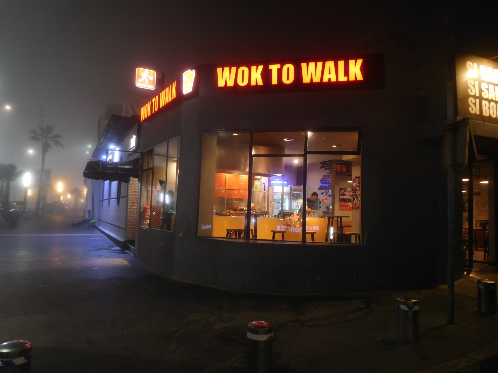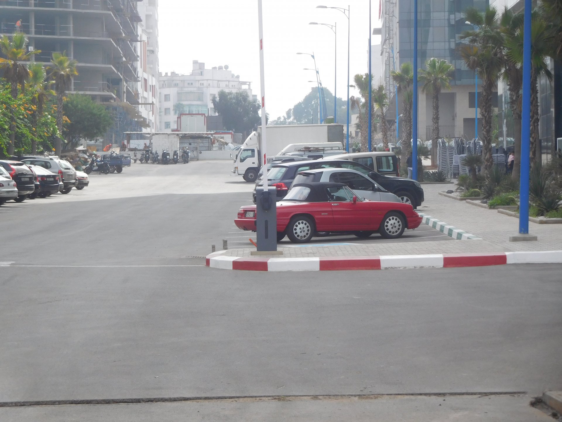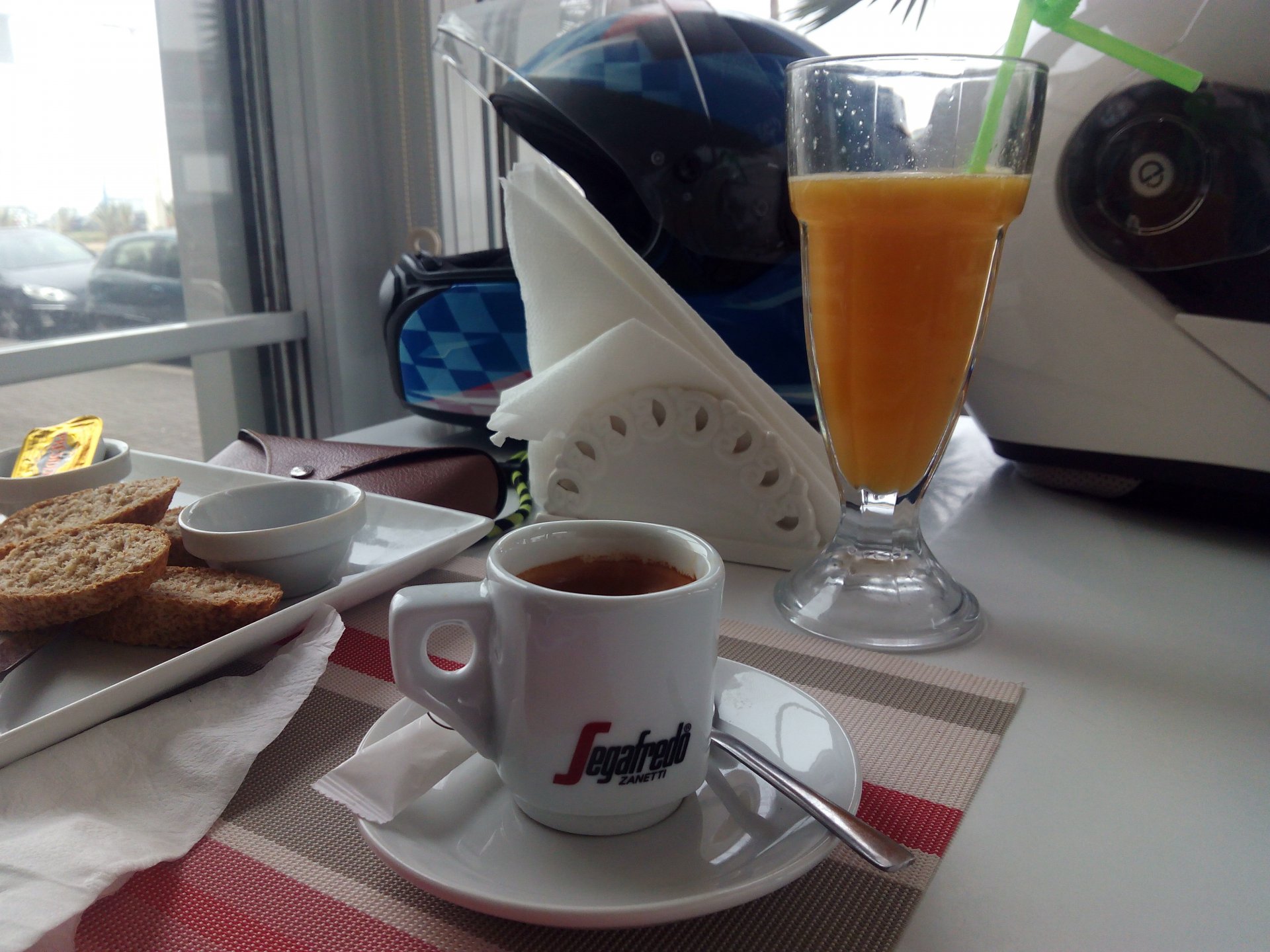 After a pretty sad meal the day before, only made better by the staff's enthusiasm over having Portuguese guests, we slept quite well listening to the sounds of the ocean. We left our hotel at our usual, not too early not too late, time, and made our way up the coast to Casablanca. Safi, a nice town with a huge refinery, not my kind of tea but people have to earn a living somehow. Never stop: we share a stoplight with this cool dude and his BMW (sound system properly on!) We get to Casablanca for an early afternoon snack instead of lunch, with Portuguese espresso We tried to visit Casablanca's mosque, apparently one of the world's most impressive religious buildings, it was closed for visitations and too foggy to even see the top It's so tall that it's got a laser that manages to be pointed and "making contact" with the minaret in Meca, and the inside is known to be amazing. I'm not one to visit buildings, so I wasn't too bothered by the fact it was closed, but the outside is impressive and beautiful. Instead we focused on finding a good deal on a hotel in the center. Casablanca is the city I've ever been in with the highest concentration of brand new Range Rovers per 100 cars, including London, but I sort of hagled a room price down. We had a nice bed and a guarded parking, that's all I need. We went out after dar for a walk and a meal, and saw a Morocco that was nothing like what we new, with neons and franchise food places, and cabarets We sat outside at a nice restaurant and had pizza and pasta, I don't remember who had what but I remember it was pretty nice. I get excited when I see a cocktail menu so ask for the wine menu, and the waiter tells me all cocktails are non alcoholic, and just that easily he breaks my heart ... Next morning we bug off early in the morning, just in time to catch rush our. It was raining drizzling, so instead of riding on and get wet I stop to look at cars for 20 minutes, it was pretty obvious why we had stopped so we got a good smile from the salespeople And off we go to Tangier But since I'm a sucker for a marina, we stop for a coffee instead ... took us AGES to leave Casablanca Somewhere, we stop for lunch in the sort of place we usually stop for lunch at. A cafe or cafe/restaurant at the side of the road, we figure that since this would be our last lunch in Morocco we might as well go native: Maria goes for the omelette with minced meat, a bold choice! She proceeds to eat it like a local, with her fingers and bread to help along, which I loved watching I have the skewers with a side of hot sauce to dip them in while eating. Onwards, because a 5 star hotel awaits us, we shall splurge! The roads aren't special at all in this area, the traffic sometimes reminds you you're still in Morocco though, but in a good way. I was feeling nostalgic during this last couple of hours of riding before Tangier. Maria asked if everything was ok with the bike, but no, it was just me trying to make it last a little longer. I love the way this people drive and treat the road and other users with respect. They don't really care for rules but at the same time will move over for a faster vehicle, will expect you to move over if they need to avoid a big pothole, if the road can fit three cars then there is no problem in fitting three cars even though there might be some random theoretical line in between, I get along with road traffic in Morocco a lot better than in Europe. This attitude to driving with survival and cooperation makes it simple. I don't get along with big city traffic, though, that is just random As we arrived to the most posh part of Tangier the sole focus is to enjoy the afternoon and evening, before going back home. Early morning and go to Tangier for breakfast, and quickly catch the ferry. This time we rode straight home, stopping right at the border between Spain and Portugal to put our rain suits on. Riding those last few hours in the rain, with the last 2 or 3 hours being already dark, and arriving home to a cold October night was a shock compared to the previous two weeks. We had little to eat at home, so did the smart thing, had a hot shower, and went out to eat while leaving the heating on to come back to a cozy house. We had grilled meat and drank wine in the only place still open in Azambuja!