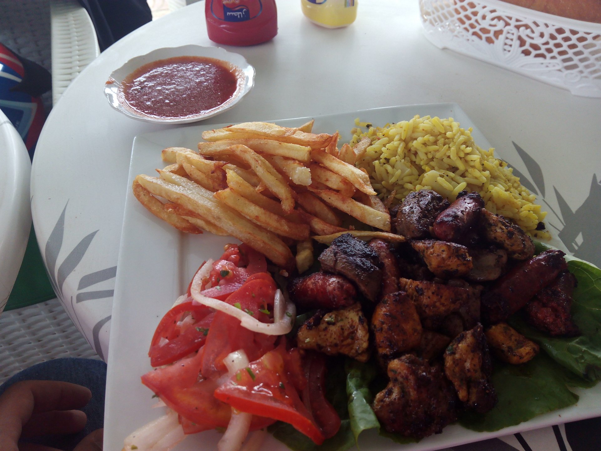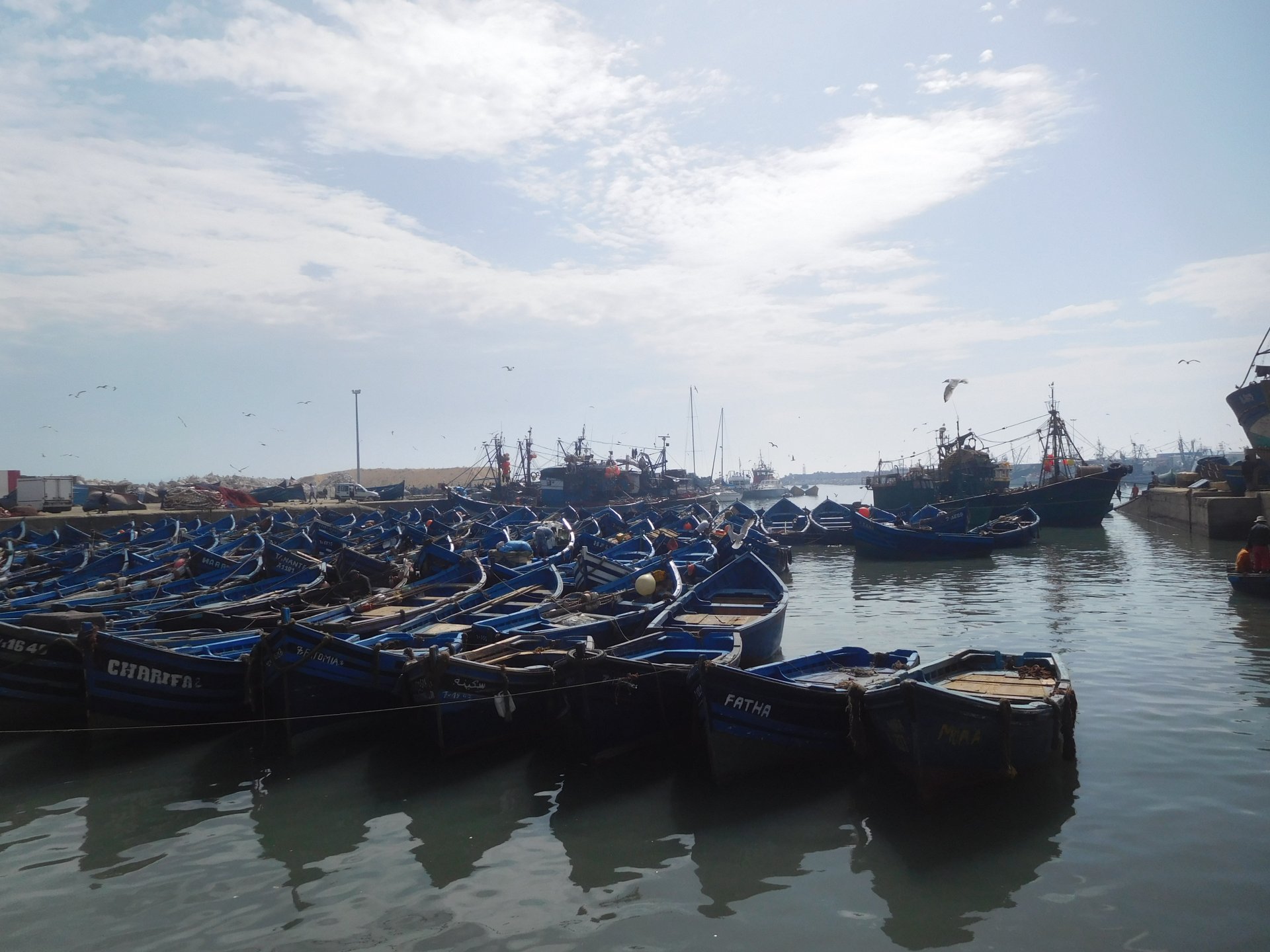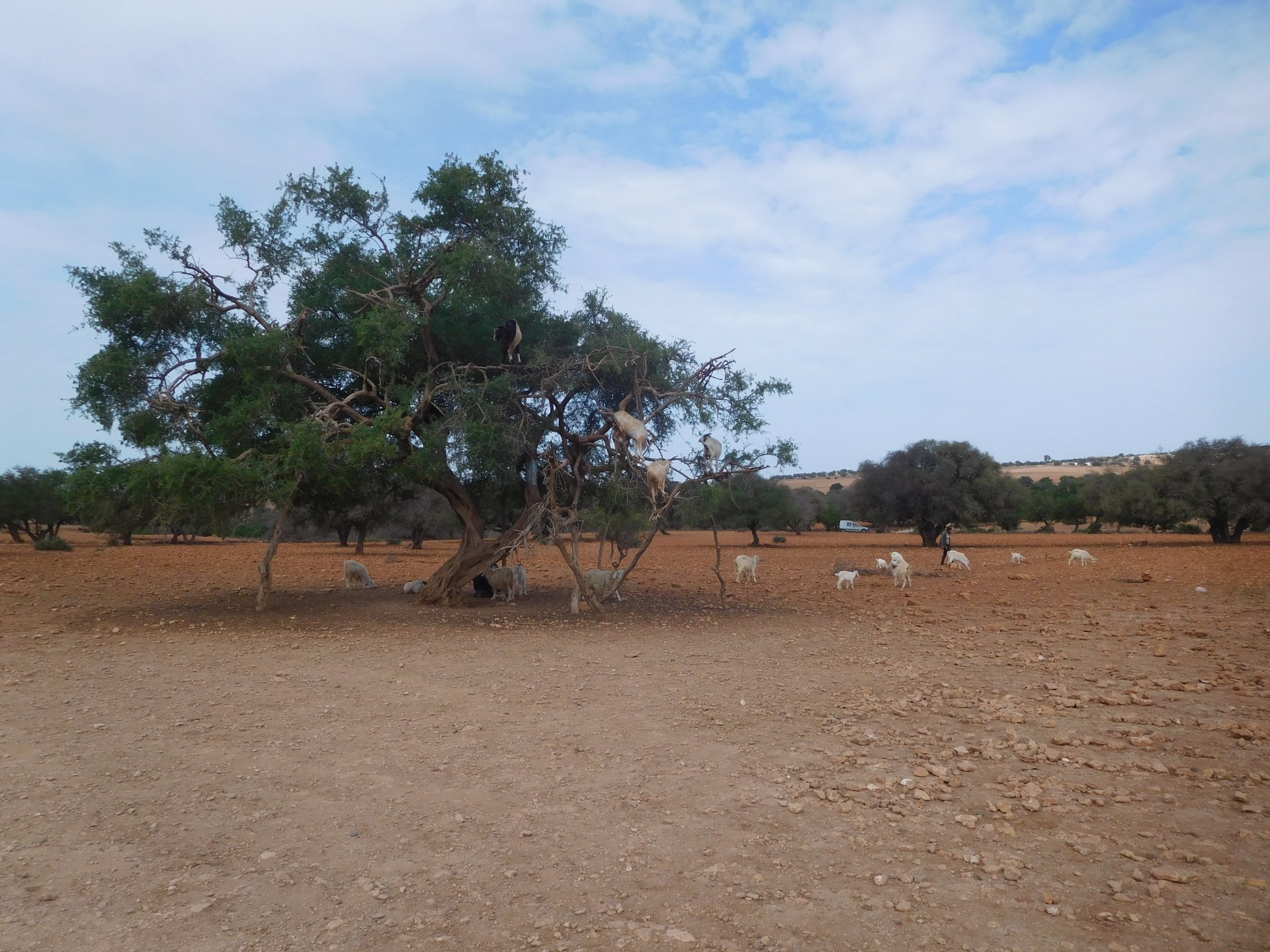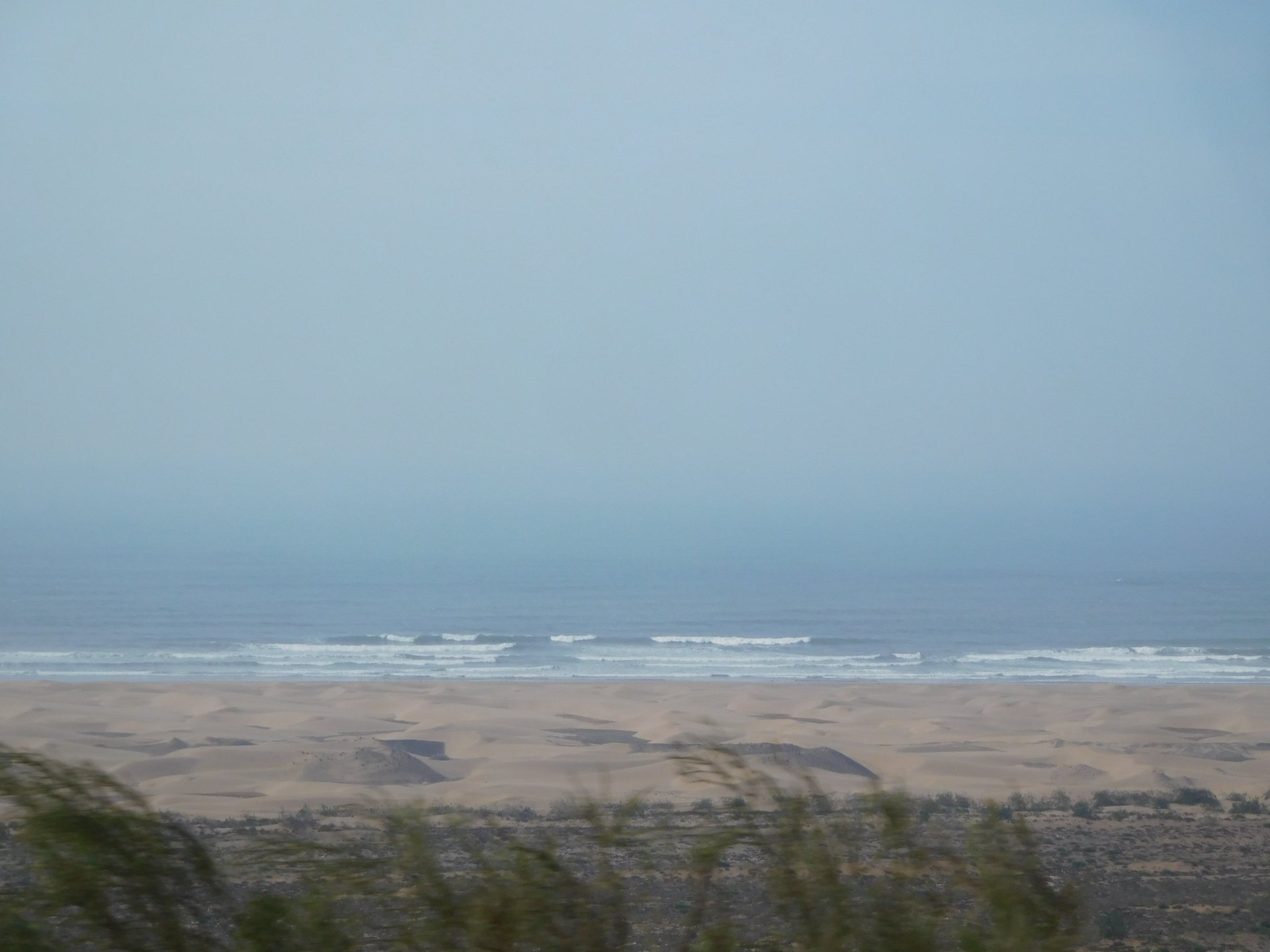 Tangier's waterfront has changed quite a bit in the three years we've been coming here We were headed to Al Hoceima, which is on the Mediterranean coast. It's a short ride, but still took longer to get there on account of a couple of detours. for @XTreme: See you in a bit, Tangier, we've got a nice coastal road to do We stopped at a fish grilling place right on the beach, and ordered whatever they had, sardines. They didn't speak any french, and a communication error meant that I ordered two doses of fish instead of fish for two, we had a huge amount of sardines to eat, the cats went home happy that day. They brought another portion right after this one Best sardines I've ever had, though, and it was quite cool to be there. Goats don't care if you're growing decorative bushes or gardens Al Hoceima looked like a paradise with little people about and the Mediterranean sea. We stayed by the sea and went to the beach, a pattern was emerging One of the ways we pack light, being a couple and using just one case for all our clothing for two weeks, is that we wash clothes frequently. Most of the places we sleep in are warm and breezy during the evenings, whenever we get somewhere we usually do our clothes in the sink, and by the time we go to bed they're dry. If you carry three sets you're almost always golden. If you carry a fourth you're safe. One o With nightfall, peaceful Al Hoceima came alive, noise and traffic, and lots and lots of people. We had a nap after the beach and went out to eat. Who says you can't have class on a street hole in the wall in Morocco? Another great day