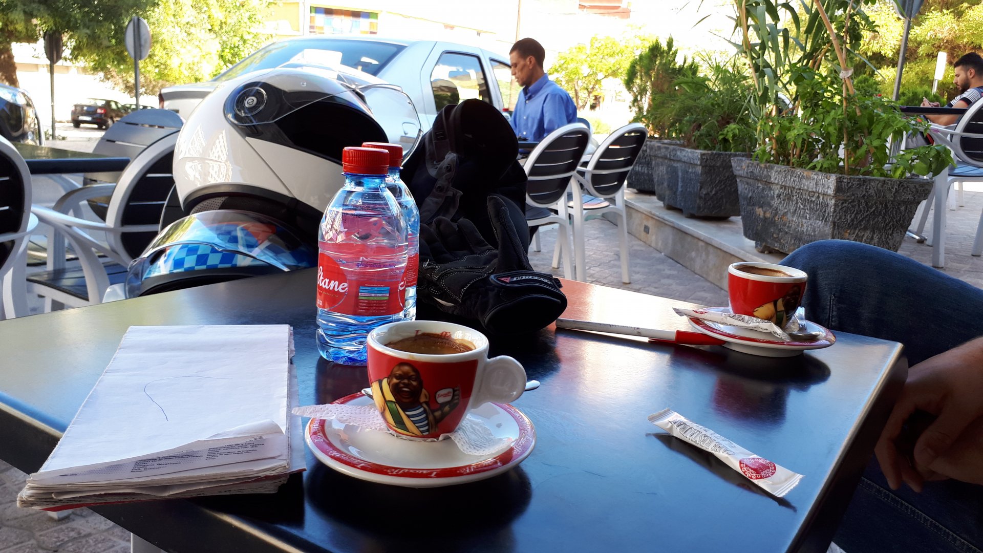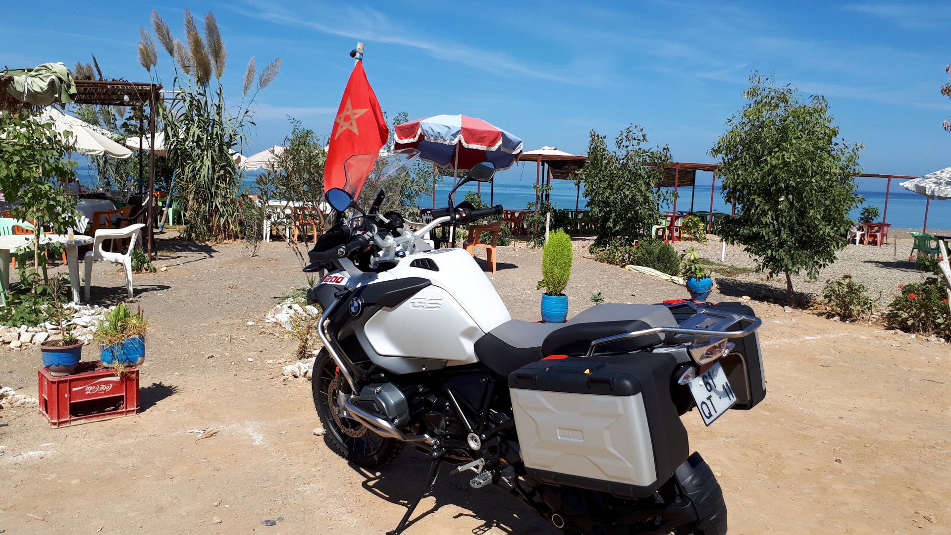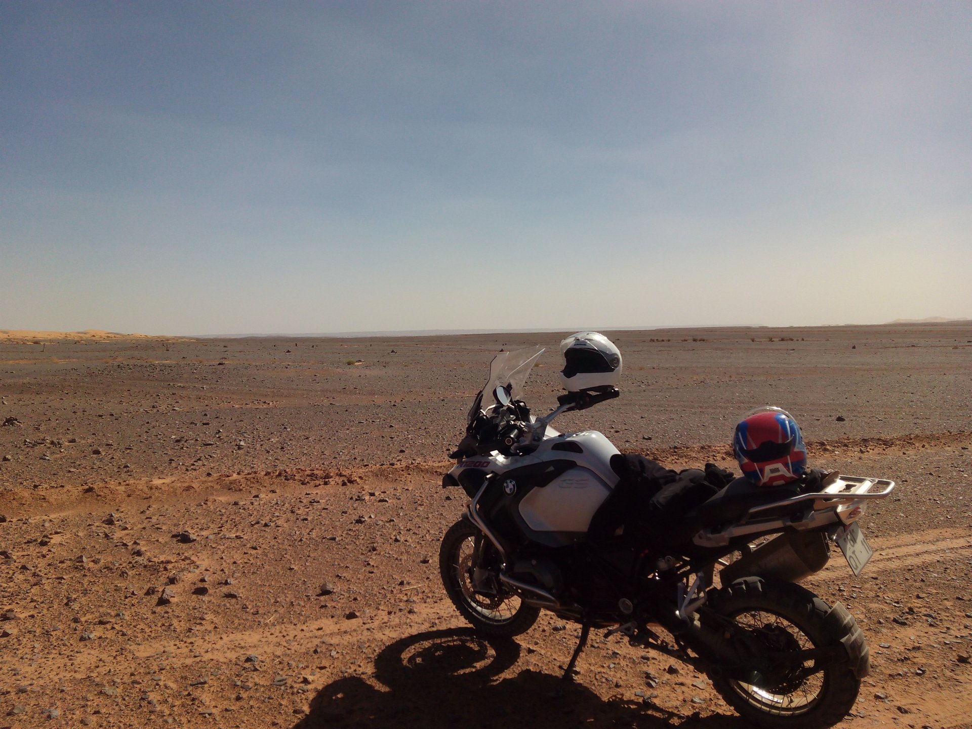 Earlier that year we had spent my birthday in June at the Nurburgring, with @Sofia: On August we took the GS to the Algarve for some sunshine And in the meantime we did plenty of short rides on weekends, life was good even though work was pretty tough. After ending our 2016 on a high, Maria was intent on us taking a two or three year breather from Morocco and trying other kinds of trips, be it on bikes or not, but to other locations. Me? I was keener than ever on going again as soon as possible! We were getting to know the place, and feeling at ease with the people, the food, the traffic, the amazing roads, and now I had a bike I trusted to be a reliable vehicle for us, although we don't do serious offroad on it our trips do search for the smallest roads we can find and as far as roads go they're pretty tough. There is no destination that is so culturally different and makes you feel like on an Adventure, and so close and afordable to get to than Morocco. Part of me wanted to try and go alone, almost exclusively to do that offroad piste between Merzouga and Mhamid, and I knew it would be too much for my skills to do it with a passenger, as well as not fun at all for Maria. But more than that, I wanted us to go again together. I came up with the excuse that we should do it on the new bike before the warranty expired, and she let me think I conned her. I think that by late August, riding the bike through Alentejo, she started to miss it too Our goal for this trip was to revisit some of the places we loved, but also to see some of the mediterranean coast, spend a day on the Merzouga dunes again, to go as far south as Tan Tan, to cross the Atlas on a different route than before, mostly without skipping on swimming pool relaxation moments and most of all go with the flow and enjoy. All of this meant we would probable be on the longest ride we ever did, but considering that on all previous years we had spent a couple of days after returning before going back to work, we were pretty safe. The previous week a set of new Heidenau K60 were put on the bike, on friday I joyfully left my mobile with my brother, and on the 23rd of September 2017, we left Azambuja heading south. There are no pictures of me fueling the bike up that day, in fact there are a lot less pictures this year than on years previous, I guess we were more relaxed and enjoying the trip more instead of worried about the camera, you miss a few pictures but the enjoyment you get at the moment is a lot more. Our plan of getting our move on was foiled as soon as we got to the Algarve, with great September sunshine, and Maria felt like having a grilled fish lunch at her favourite place, obviously this led to some glasses of wine, the beach, going out to dinner and sleeping in Faro. Didn't take much to convince me! The plan had lasted for 3 hours ... fuck the plan!