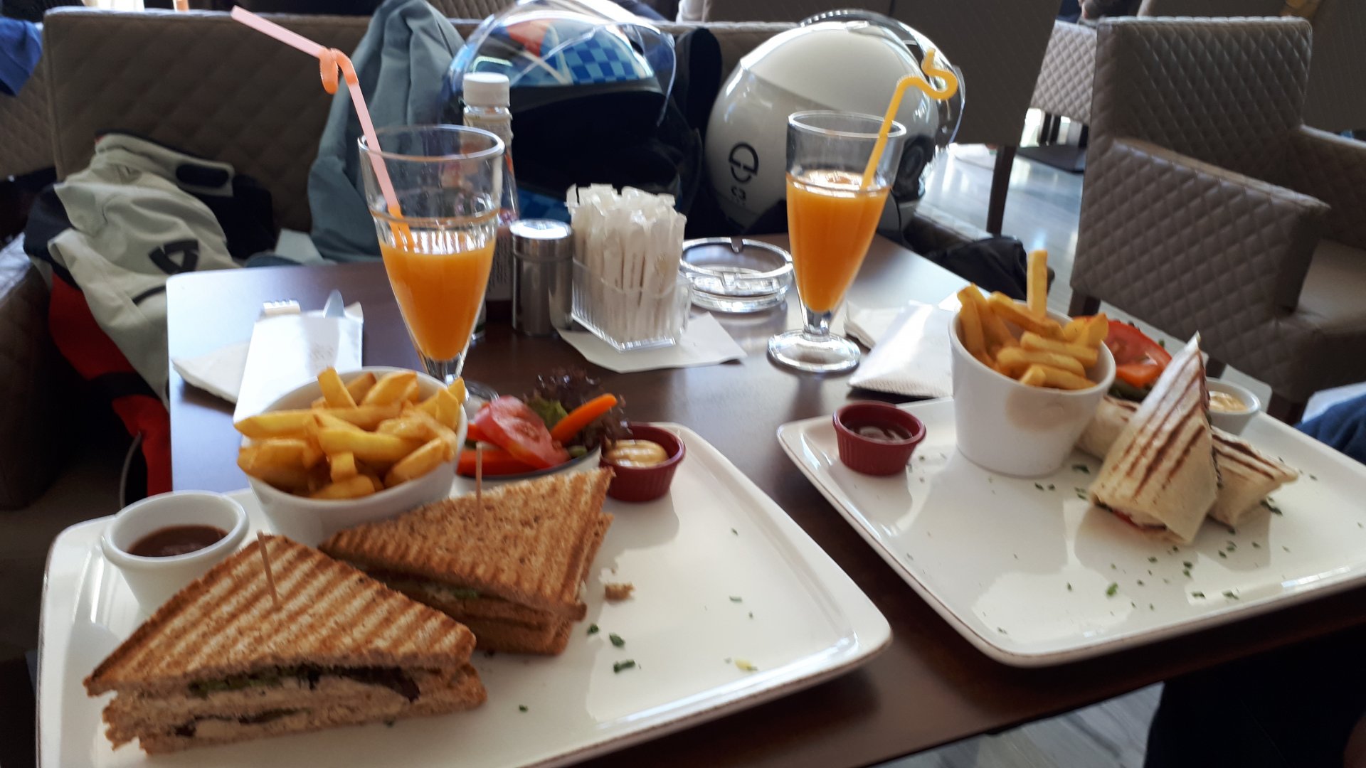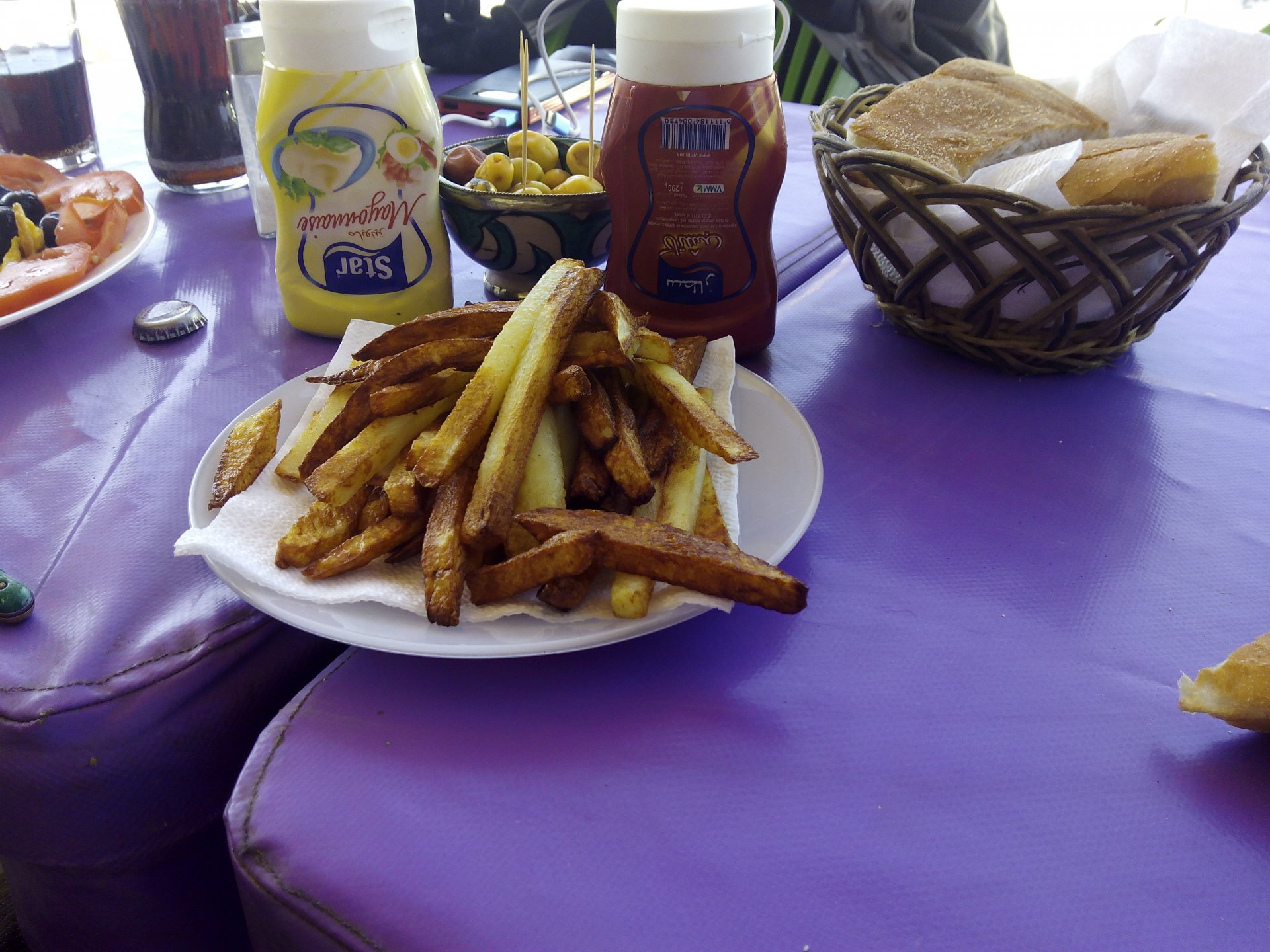 We slept with the bags almost packed, in the morning just had some light breakfast and we were off quite early. It was all fast flowing motorways and nice weather to get to Tarifa. We boarded the ferry early and still went to lunch in Tangier, who says we can't cover ground when we want to? Stopped by Cappuccino and had a couple of tasty sandwiches. Then, living large for the rest of the day Visited the caves next to the hotel, on foot And generally had an amazing day