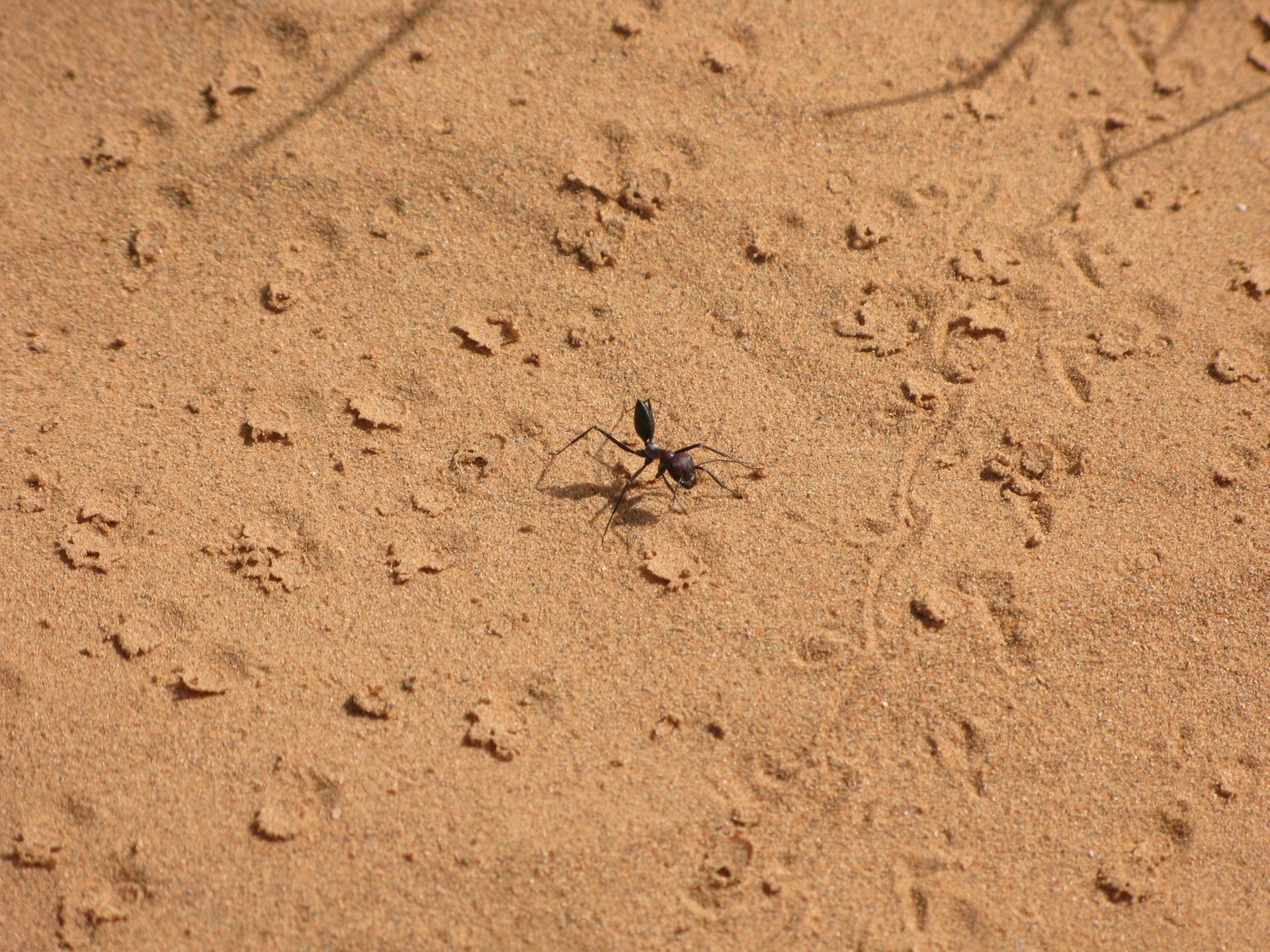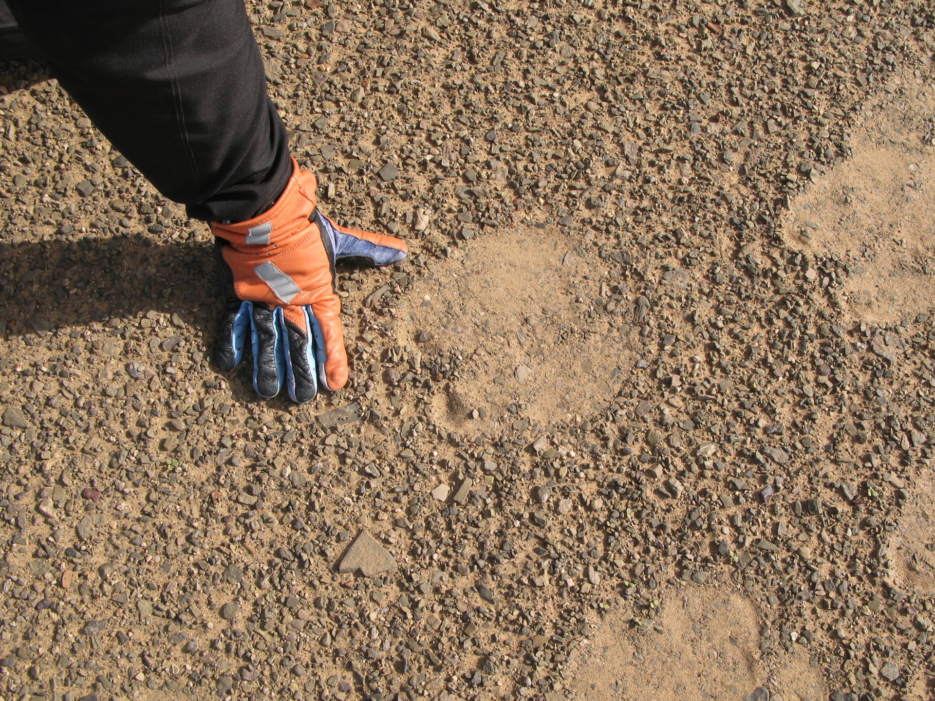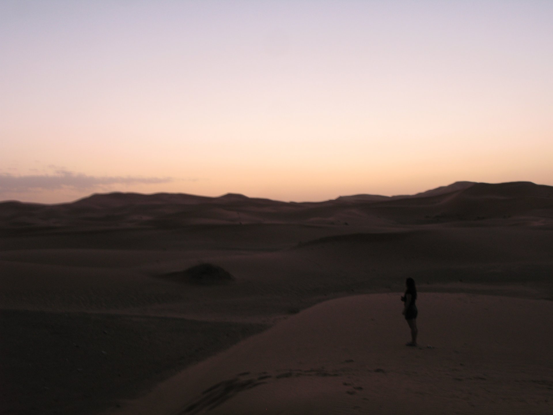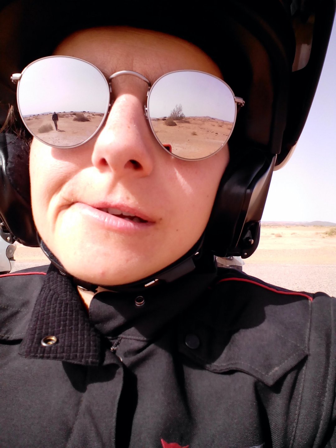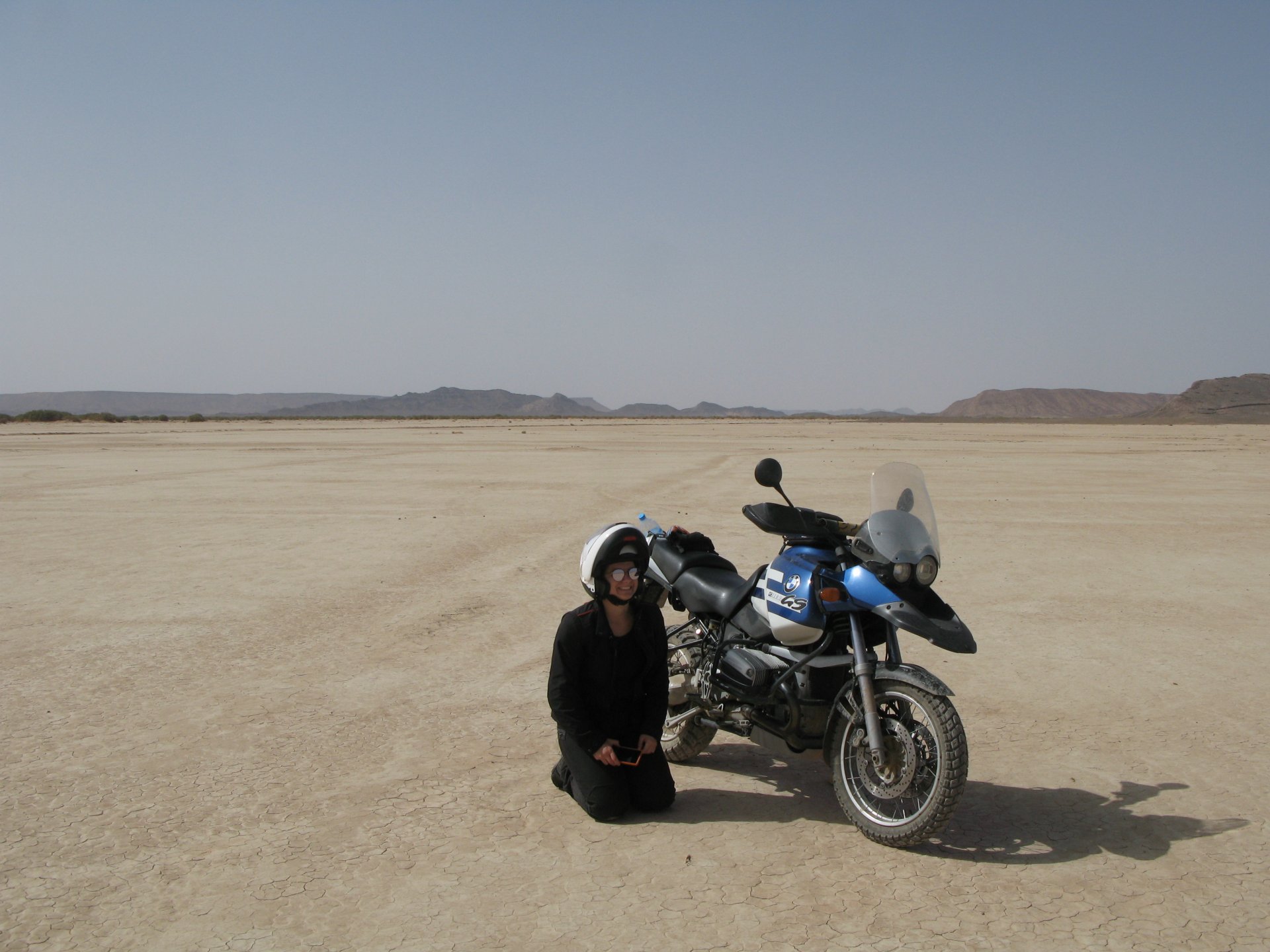 After a hard evening of riding on very dark roads, getting lost with oncoming rally trucks blasting by at very high speeds with full blinding rally lights on, the shower and warm food, and sleep, felt like heaven. Sleeping in a hotel made of mud and powered by the distance hum of a generator, it means that when they turn the generator off you get an amazing night's sleep. In the morning, Maria's plan was to see the desert sunrise so sleep better be good because I wasn't going to sleep in Good news is that the dunes are right on our back door. I discovered desert sand for the first time. Having never been, I was amazed at how fine it is, and at how it doesn't stick to your skin. Instead, it absorbs all moisture out of it and almost cleans it. I've loved this place ever since. Sand was proper cold, and he had our cardio by climbing a couple of dunes, if you're not born doing that is pretty exhausting stuff. With an apetite, I enjoyed some nice msemmen for breakfast. It's a kind of hardish crepe or pancake, not really healthy but very tasty, usually eaten with honey, butter or jam. I have it with honey usually, although it's good when still warm with proper butter. The rest of the day was spent exploring the area around, we needed a rest so took the chance to ride the bike a little with no luggage, get it stuck a little too So during the morning we goofed off in the sand and took "adventuring" pictures I had my first close encounter with camel herds, and again, was surprised at how fast they actually cover distance when appearing to walk calmly. Can't be in the desert without the Clint Eastwood snarl It had rained the previous night, so we found the water droplet marks on the sand, seemed every single drop made it's own impact. On some you could actually see a speck of green starting to appear Desert @Tym showed up, to try and sell some rocks and to show me that my 1150 motorcycle is not the best tool for riding efficiently here. The heat was starting to grow, and we hit the village center for some lunch, in Morocco you can't go wrong with some omelette and olives. Usually, away from cities you'll see the chickens pecking away around the cafes and restaurants, so you know the eggs and chicken meat is great. Maria, going for the cool adventurer look. In the afternoon, we snoozed a little, and just hang out at the hotel drinking water. My hotel room ceiling: That evening we climbed the highest dune close to the hotel to go and see the sunset, but our plans were foiled by a sandstorm, which was an event of it's own. It starts with a refreshing breeze: And you start to see fast moving weather in the distance: And soon enough you're enjoying it from the comfort of a shelter, with your nose and ears full of sand. I grew to love that place, and with time we went back but that is for other reports. On the next day we woke up at dawn and tried to have the bike packed before breakfast while it was still cool. I love having a relaxed breakfast and then just getting my jacket and helmet on and ride off, no faffing about with luggage. Allows you to not be all sweaty and yucky when riding off, and makes for much more of an enjoyable exit. You look cooler as well, for all the adventure amateurs that might be around. This is also one of the reasons we never carried more than our side cases, simplicity is coolness.