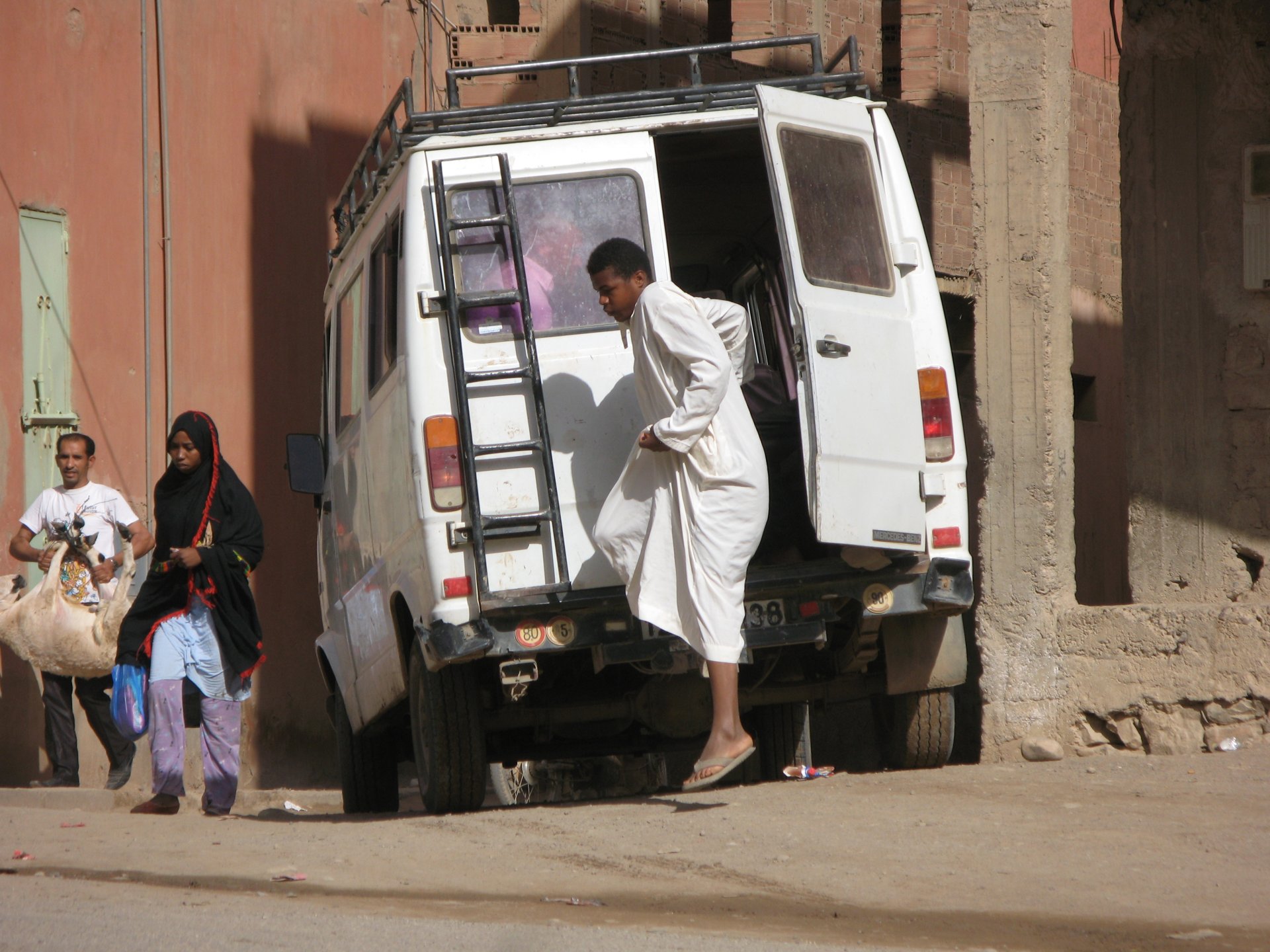 So, after a cold night well slept in a big bed covered by the heaviest bed covers I've ever slept under, I then proceed to delete all pictures in the camera, and we go one to have a little breakfast and get out, making our way to Azrou for some memory cards Proper Moroccan hill scene, with plenty of space and big taxis. Old Mercedes E-class never die, they just regroup in Morocco From Azrou, we made our way to the Cedar forrest, first stopping to visit the monkeys and make some friends: And then on to the cedar forrest proper, first through what must be one of the roughest tarmac roads in Morocco This is sheep herders country, nomad people move their herds up here during the summer to feed, and then lower to escape the snow during the winter. It's a hard place to endure as you can tell by the state of the tarmac. We stop by a half dried lake, where eventually I think we'd make a point of visiting ever since. And onwards: Towards the big cedars: As we cross the cedar forrest heading south we appreciate the harsh environment these people live in These trucks drive at quite the pace considering their size and the gravel switchbacks we usually come accross them: Brief urination stop on an idilic location: Warning: baby donkey extreme cuteness alert!!! Heading south, exiting the forrest with it's grand trees, and heading towards more arid but still mid altitude landscapes: