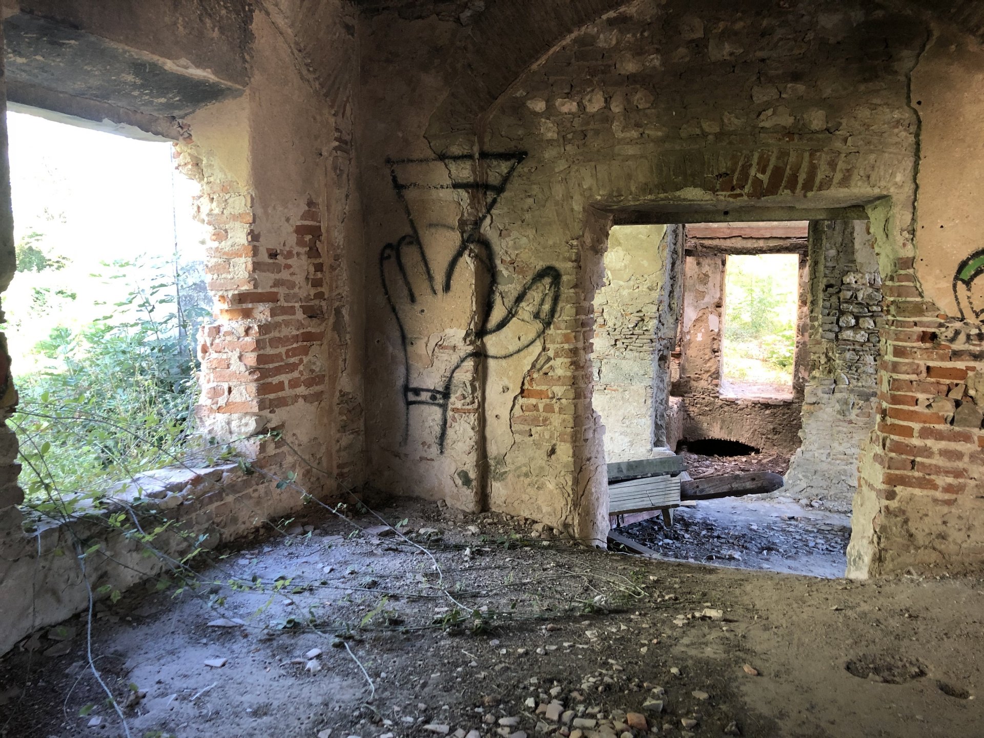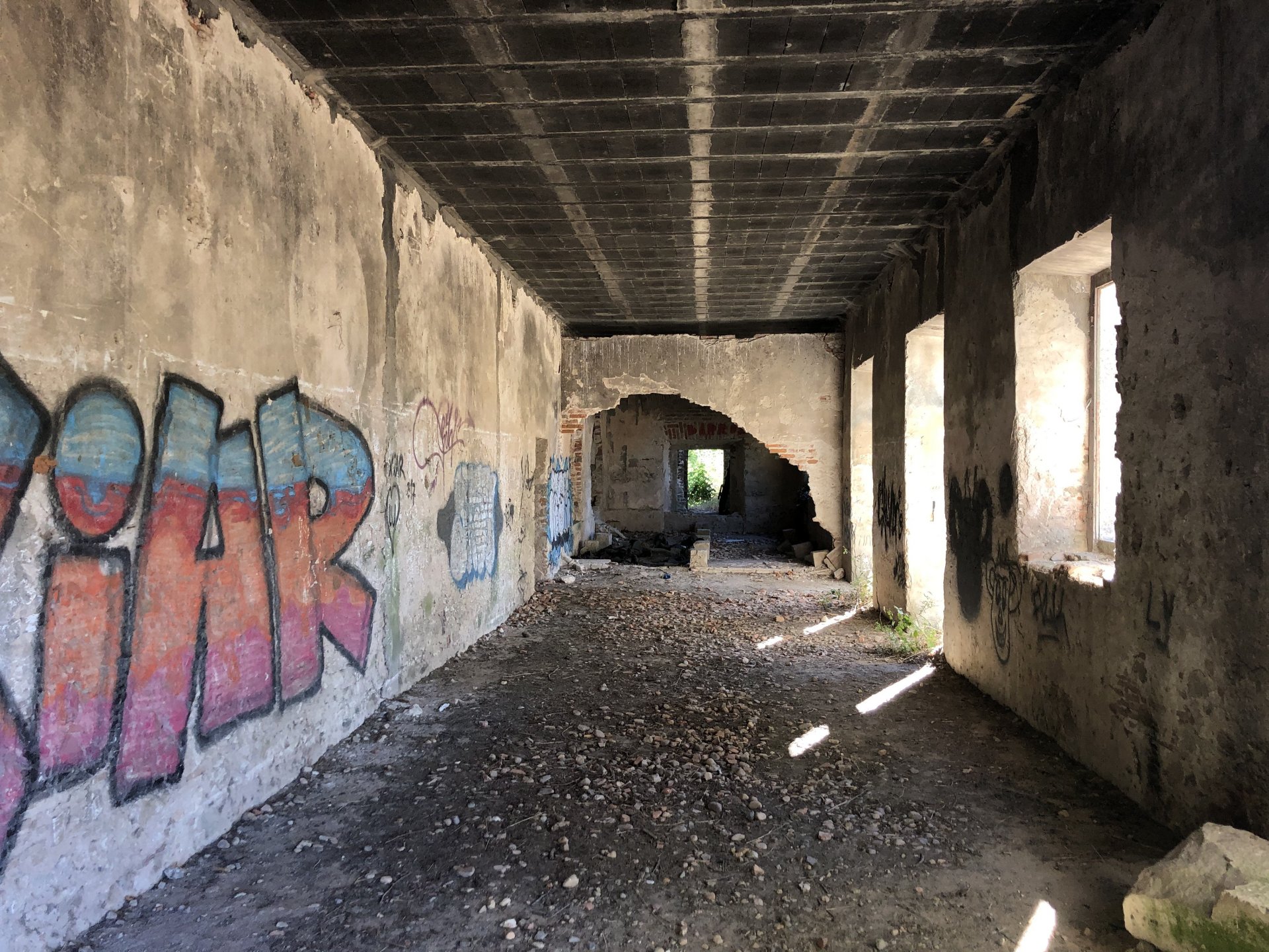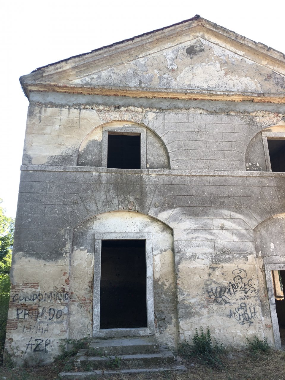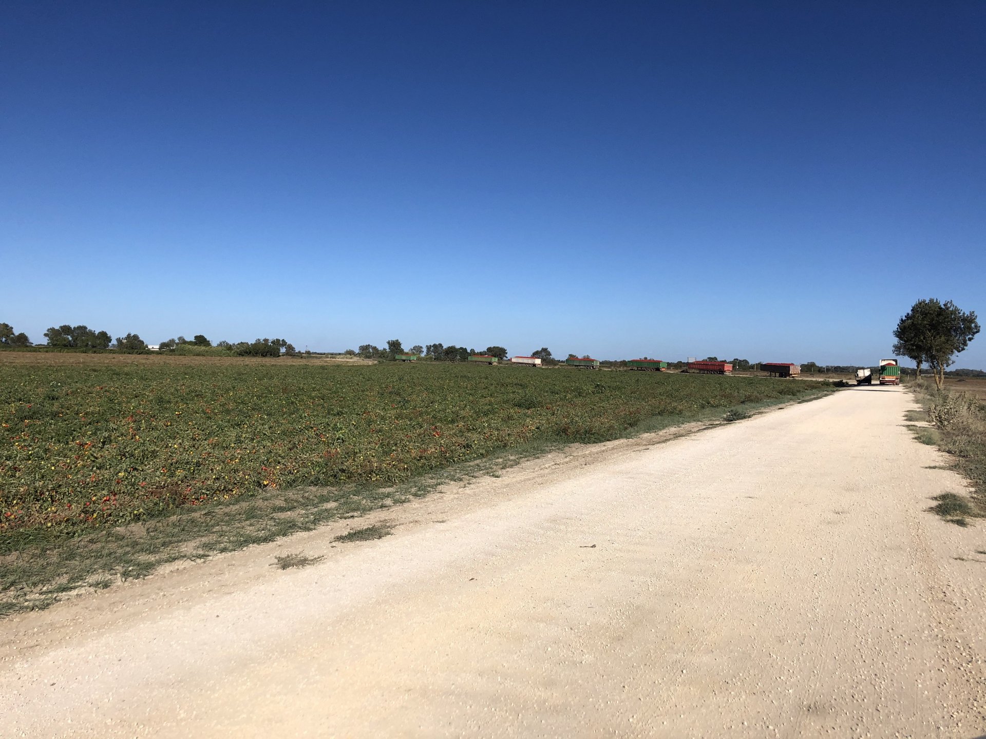 I was being sort of lazy after lunch, a few work e-mails and then started to think of just staying home snoozing instead of going out for my ride. Made an effort thinking it would be the first time I would be riding my familiar roads with the new suspension. At first thought of visiting a friend but didn't really feel like being with anyone and headed for the hills. On the way up, this is maybe my favourite piece of 2km road in this area, bumpy on tight corners with tree roots lifting the tarmac, unfortunately you can't see any of that in this video: Had a good cup of coffee in my favourite cafe up there, regardless of how hot the weather is at my home, up here under these trees it's always nice. A few bikes turn here on sundays, but it's always calm on week days. Heading back down: Someone left a nice couple of circles, I wouldn't be brave enough to do that here. Back in Azambuja I decided to make this a sort of dark motorcycling themed thing as it was a little to early to go home and I felt like taking a little more advantage of the afternoon, ended up with more of a ruin motorcycling than dark. Went to visit the Palacio das Obras Novas (also known as Palacio da Rainha, queen's palace), this building was erected in the end of the eighteenth century and acted as a control point for ship that used to travel in this canal between Lisbon and Vila Nova de Constancia. They had a hotel or an inn of sorts as support for the steam boat traffic, but since the surrounding area was pretty majestic it attracted important guests for long stays, becoming well know for Kind D.Carlos enjoyment of the place. (There you go, culture!) The road leading to it goes through tomato fields, but the last straight used to be lined with a very impressive row of huge palm trees, all gone now from a palm tree beetle infestation a few years ago: Before the bugs ate the palm trees it used to look like this, not my picture: Riding back, past a few trailers full of tomatoes ready to go for the local tomato juice factory, most of the tomato pulp in Portugal is made here. They might be a little overloaded Made it back home pretty dusty.