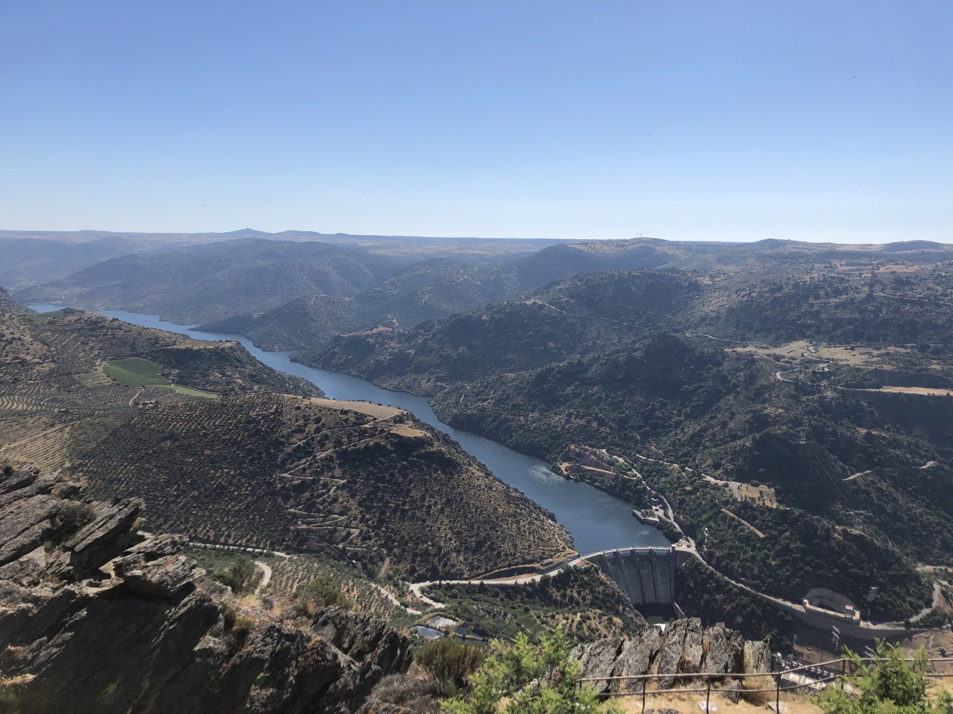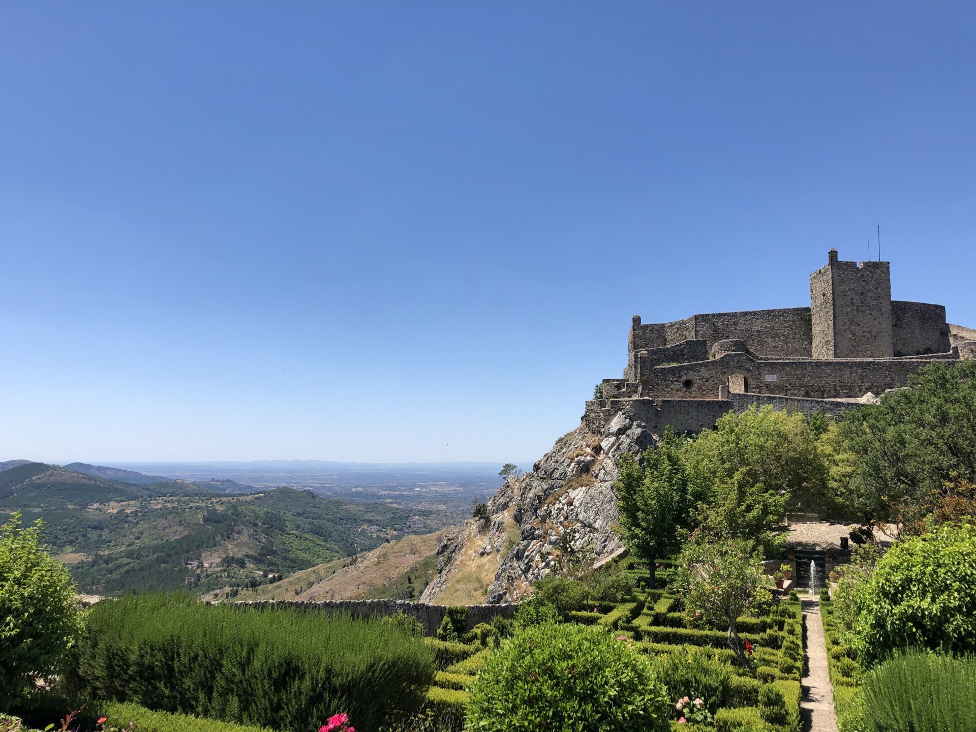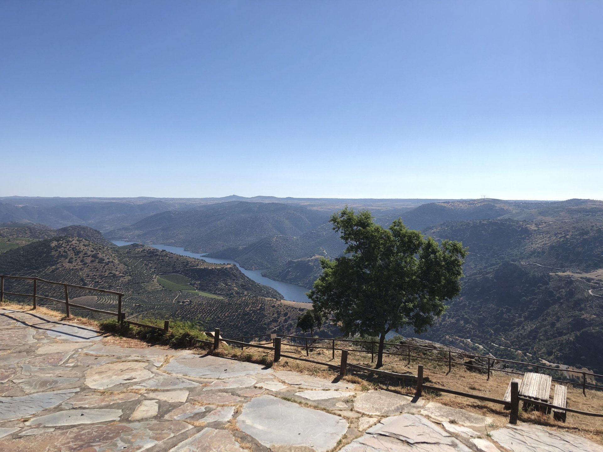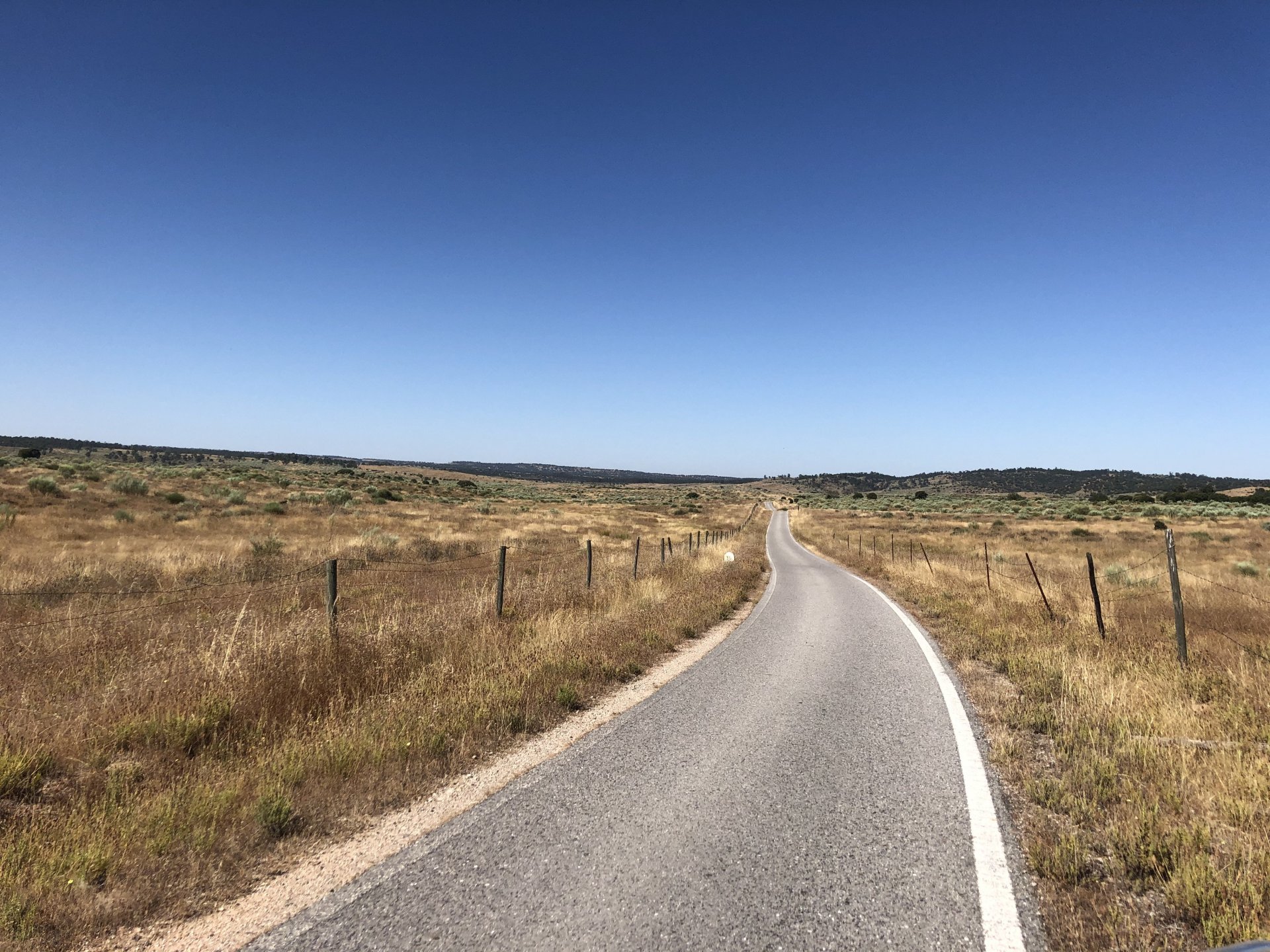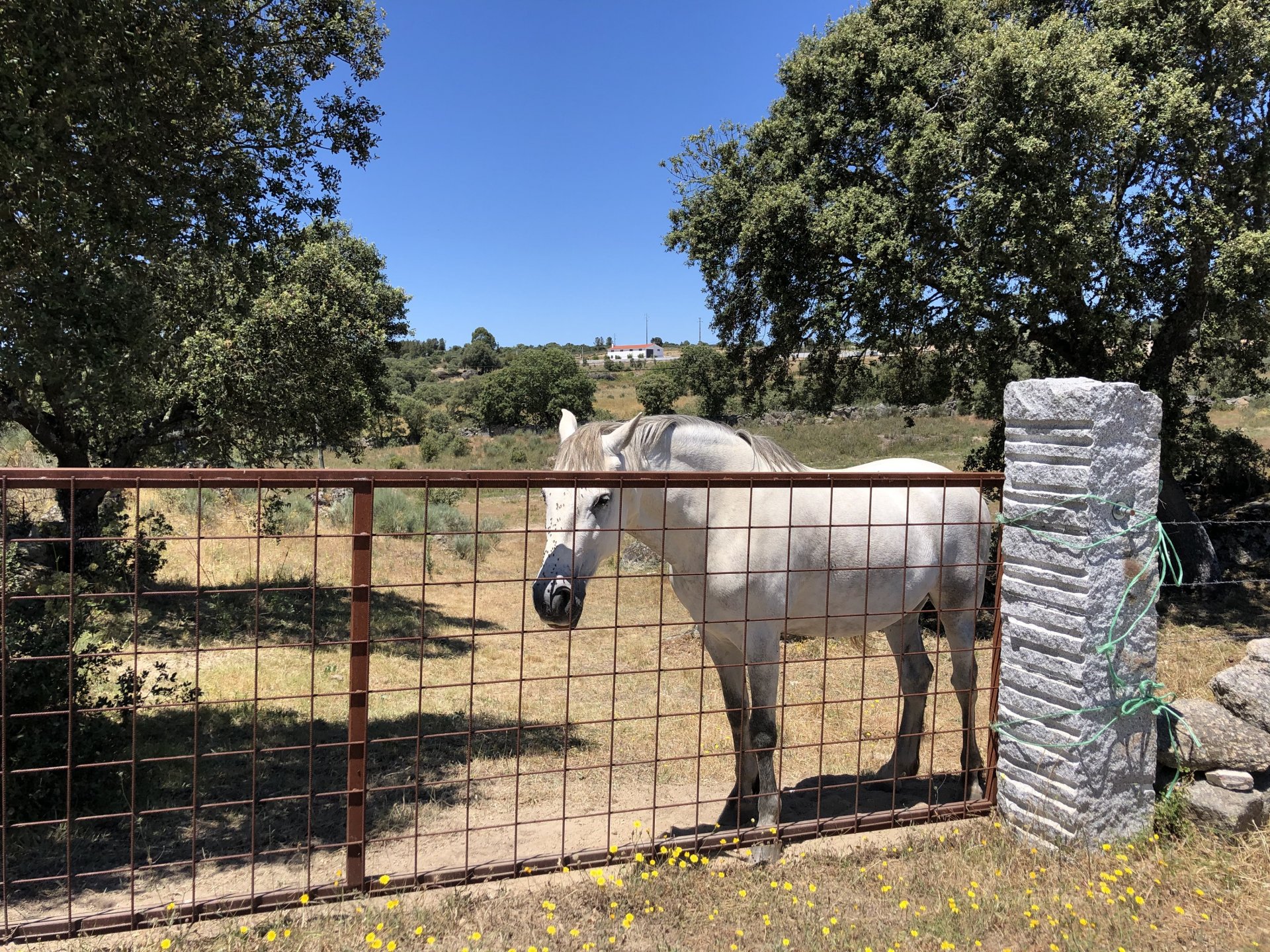 So, yesterday started well, not very warm by the time I left the hotel at around 9am, made my way to find some petrol as the bike was on reserve and in this part of the country you can ride for a while without fuel in rural areas, I mean 40km, not really such a drama. The big GS is quite frugal if you avoid motorways, and by the time I fueled up I had 600km on that tank with 50km range left. Landscape is changing now With a full tank I explore a little, there is no rush in going fast south, but I seem only be able to find dead ends, like this The grass is a little too tall for my liking, it's now getting a little hot and windy so I decide to go back to tarmac roads. A hot catalytic converter and tall dry grass is a great way to start a wildfire, and there has been enough of that over the last years. The road is good, though, I try to stick to small ones: See that on the other side of the river? That's Spain It's steeper than it looks My favourite road so far, as far as fun handling a motorcycle, it's barely wide enough for one van, and rolling and weaving through hills, with patches of dirt thrown in to keep it interesting: It was now getting hot, at around 11:30 it was over 37º, still I couldn't resist this dirt road: It only lasted for a few km, not even 15 I think. By now I am getting hot and hungry, so decide to find a small place for lunch. I stop at the first cafe that has shade outside, sit down and do a few calls and emails while I wait for my ham sandwich. Some water and a cold small beer go down a treat. Old lady in the cafe put some butter on the sandwich, "because I think this is your lunch, and you should have a proper lunch" Street scene, after these two dudes sat together having a drink inside, they proceeded to have a conversation outside while maintaining their social distancing , there's so much rural portugal in this picture ... Old lady over there in the shade with her cane is wearing full black, and it's 37º, she's got the cane ready for when the cat comes to shit on her flowers Back on the road, and a few kms later I stop to check my itinerary and a mini castle. Most common big birds now are storks: Pretty proud of myself taking this picture, and I go and put my thumb in it Half an hour later, the roads are ok but the heat is barely manageable. I stop at a fountain and wash my head to cool down. Last stop before getting to the hotel is Marvão and it's castle. It's very high up and worth it for the views alone. There it is in the distance: Make it to the hotel, and quickly make my way to the pool, to finish the day. I drank almost 1,5 liters of water just sitting there, plus a couple of beers, before starting to feel less thirsty. Sofia joined me for dinner, I had some greats cuttlefish and clams cooked in garlic and olive oil, it was amazing. Too much wine was had.
