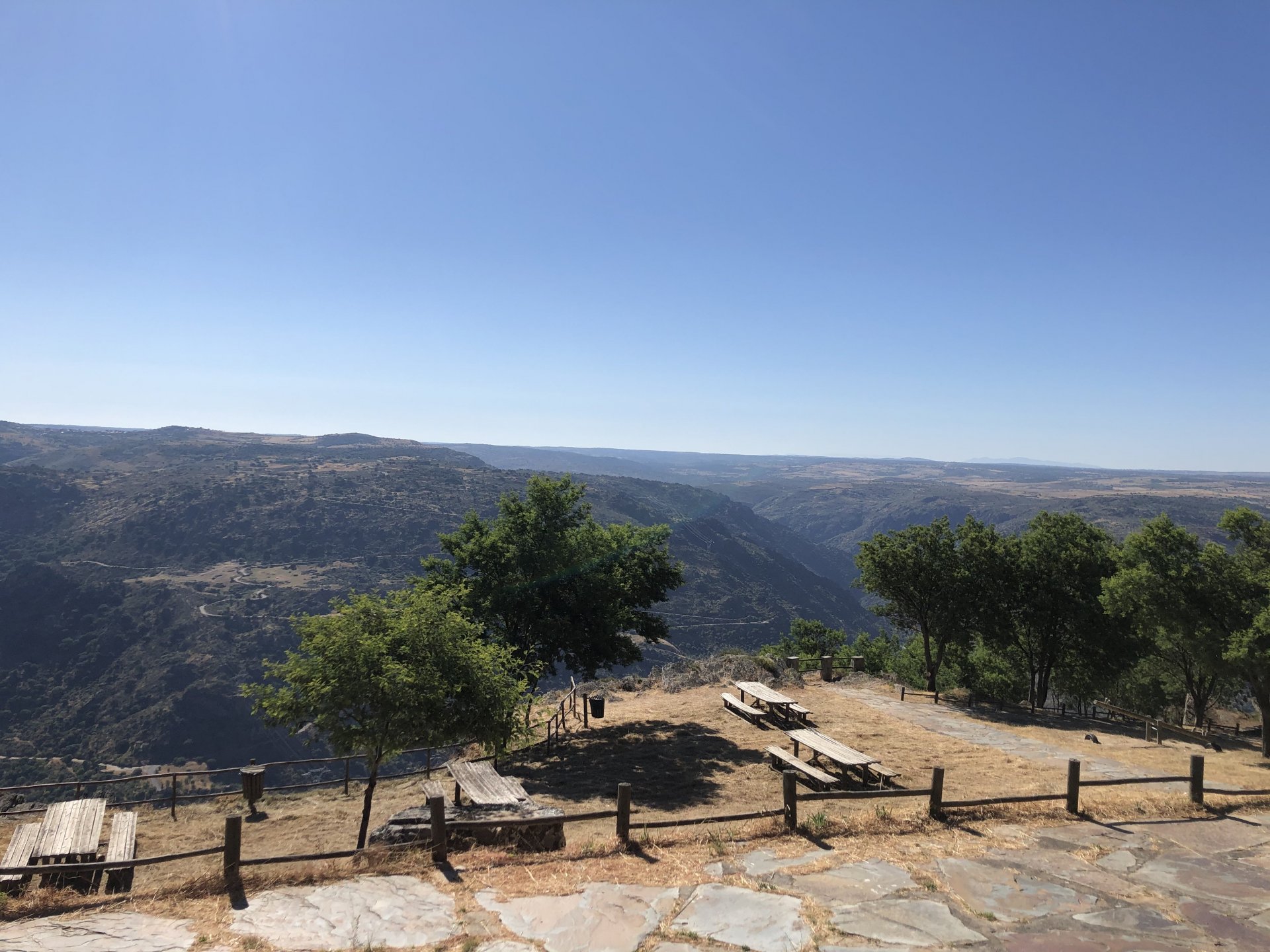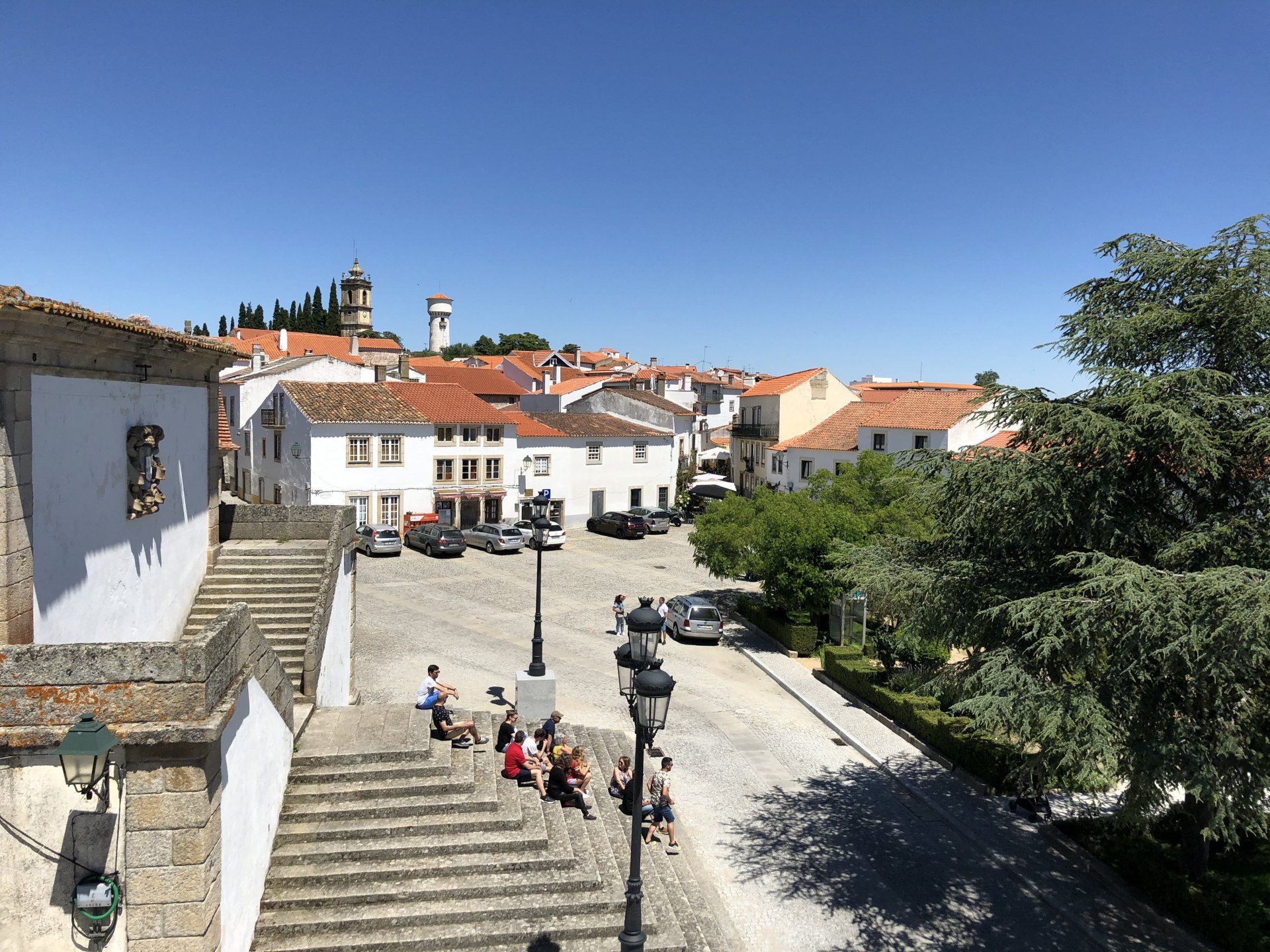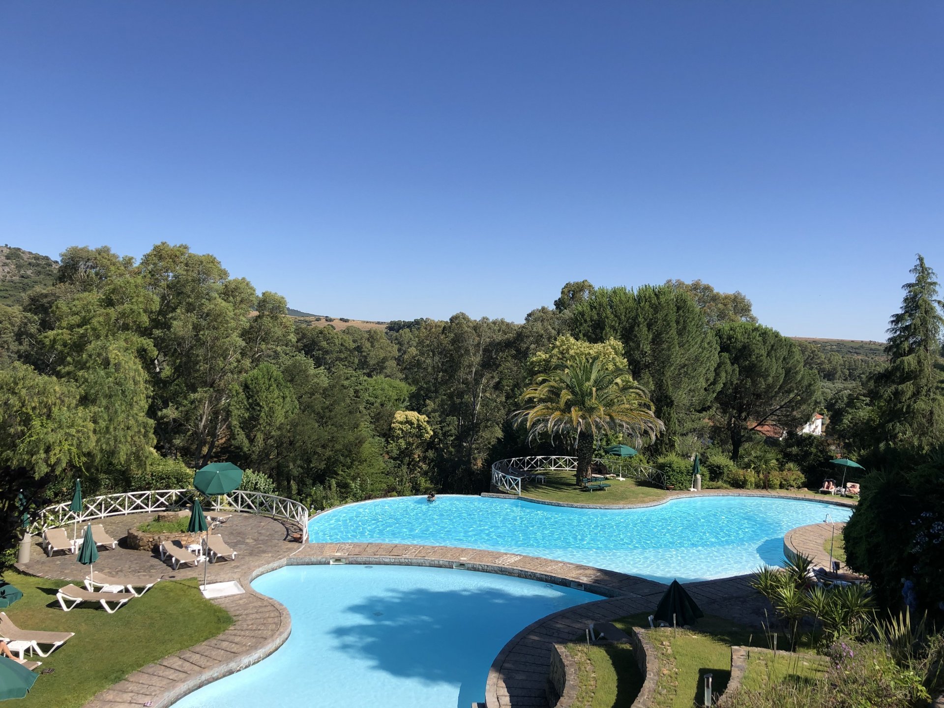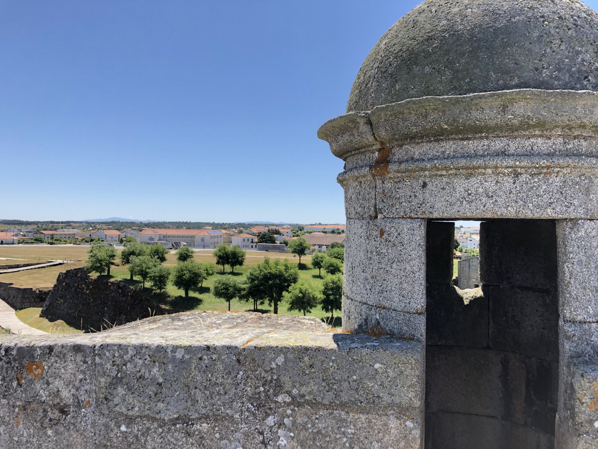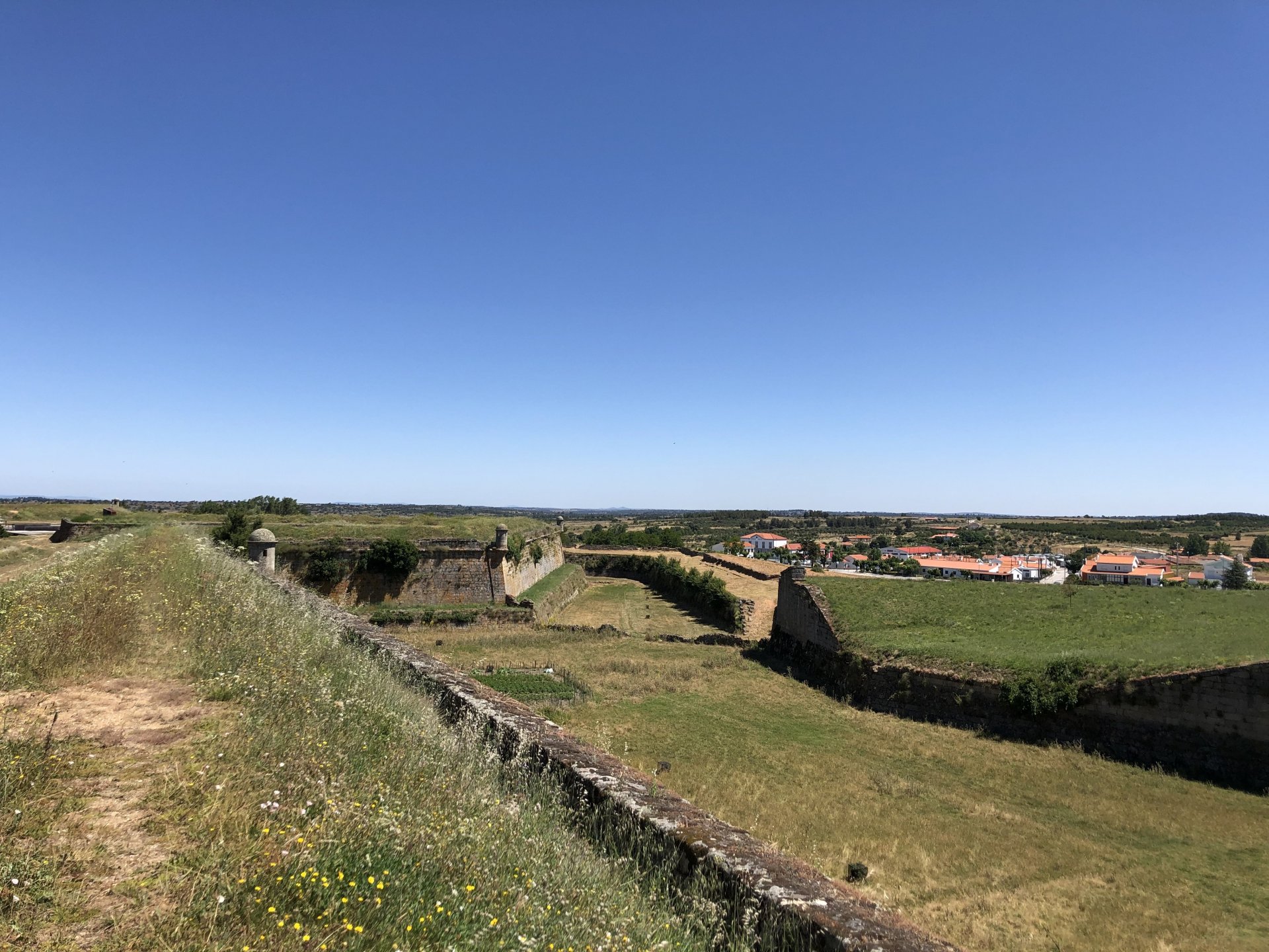 So, yesterday started well, not very warm by the time I left the hotel at around 9am, made my way to find some petrol as the bike was on reserve and in this part of the country you can ride for a while without fuel in rural areas, I mean 40km, not really such a drama. The big GS is quite frugal if you avoid motorways, and by the time I fueled up I had 600km on that tank with 50km range left. Landscape is changing now With a full tank I explore a little, there is no rush in going fast south, but I seem only be able to find dead ends, like this The grass is a little too tall for my liking, it's now getting a little hot and windy so I decide to go back to tarmac roads. A hot catalytic converter and tall dry grass is a great way to start a wildfire, and there has been enough of that over the last years. The road is good, though, I try to stick to small ones: See that on the other side of the river? That's Spain It's steeper than it looks My favourite road so far, as far as fun handling a motorcycle, it's barely wide enough for one van, and rolling and weaving through hills, with patches of dirt thrown in to keep it interesting: It was now getting hot, at around 11:30 it was over 37º, still I couldn't resist this dirt road: It only lasted for a few km, not even 15 I think. By now I am getting hot and hungry, so decide to find a small place for lunch. I stop at the first cafe that has shade outside, sit down and do a few calls and emails while I wait for my ham sandwich. Some water and a cold small beer go down a treat. Old lady in the cafe put some butter on the sandwich, "because I think this is your lunch, and you should have a proper lunch" Street scene, after these two dudes sat together having a drink inside, they proceeded to have a conversation outside while maintaining their social distancing , there's so much rural portugal in this picture ... Old lady over there in the shade with her cane is wearing full black, and it's 37º, she's got the cane ready for when the cat comes to shit on her flowers Back on the road, and a few kms later I stop to check my itinerary and a mini castle. Most common big birds now are storks: Pretty proud of myself taking this picture, and I go and put my thumb in it Half an hour later, the roads are ok but the heat is barely manageable. I stop at a fountain and wash my head to cool down. Last stop before getting to the hotel is Marvão and it's castle. It's very high up and worth it for the views alone. There it is in the distance: Make it to the hotel, and quickly make my way to the pool, to finish the day. I drank almost 1,5 liters of water just sitting there, plus a couple of beers, before starting to feel less thirsty. Sofia joined me for dinner, I had some greats cuttlefish and clams cooked in garlic and olive oil, it was amazing. Too much wine was had.