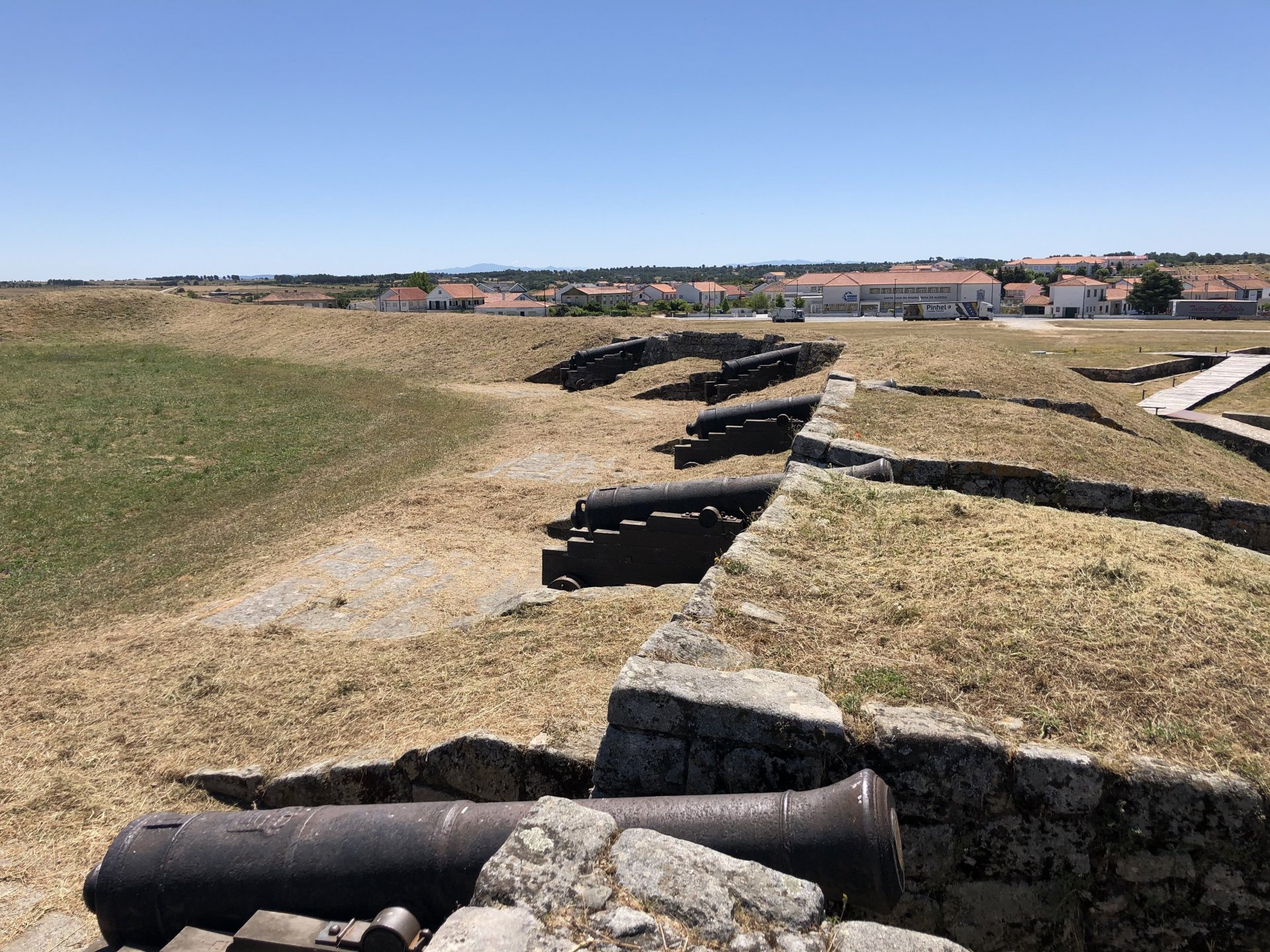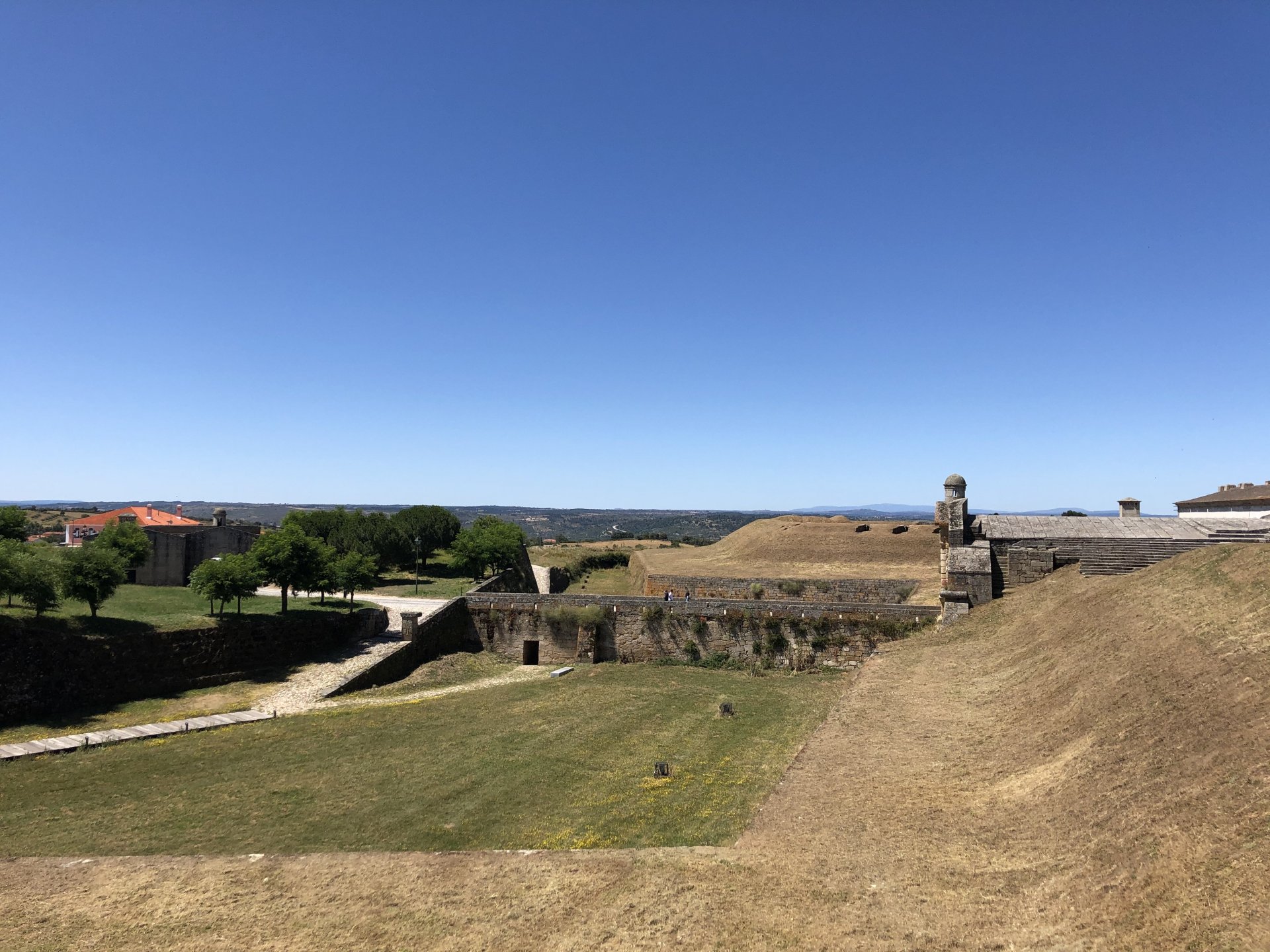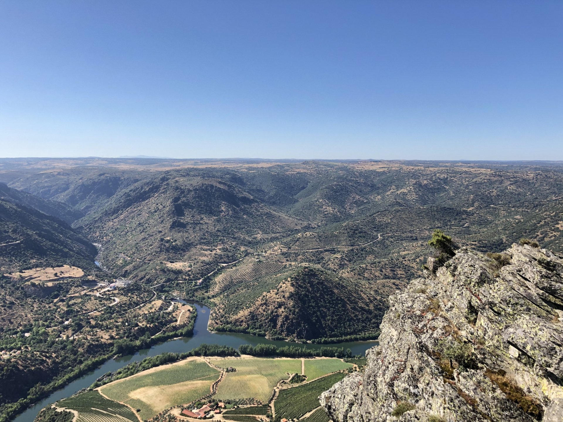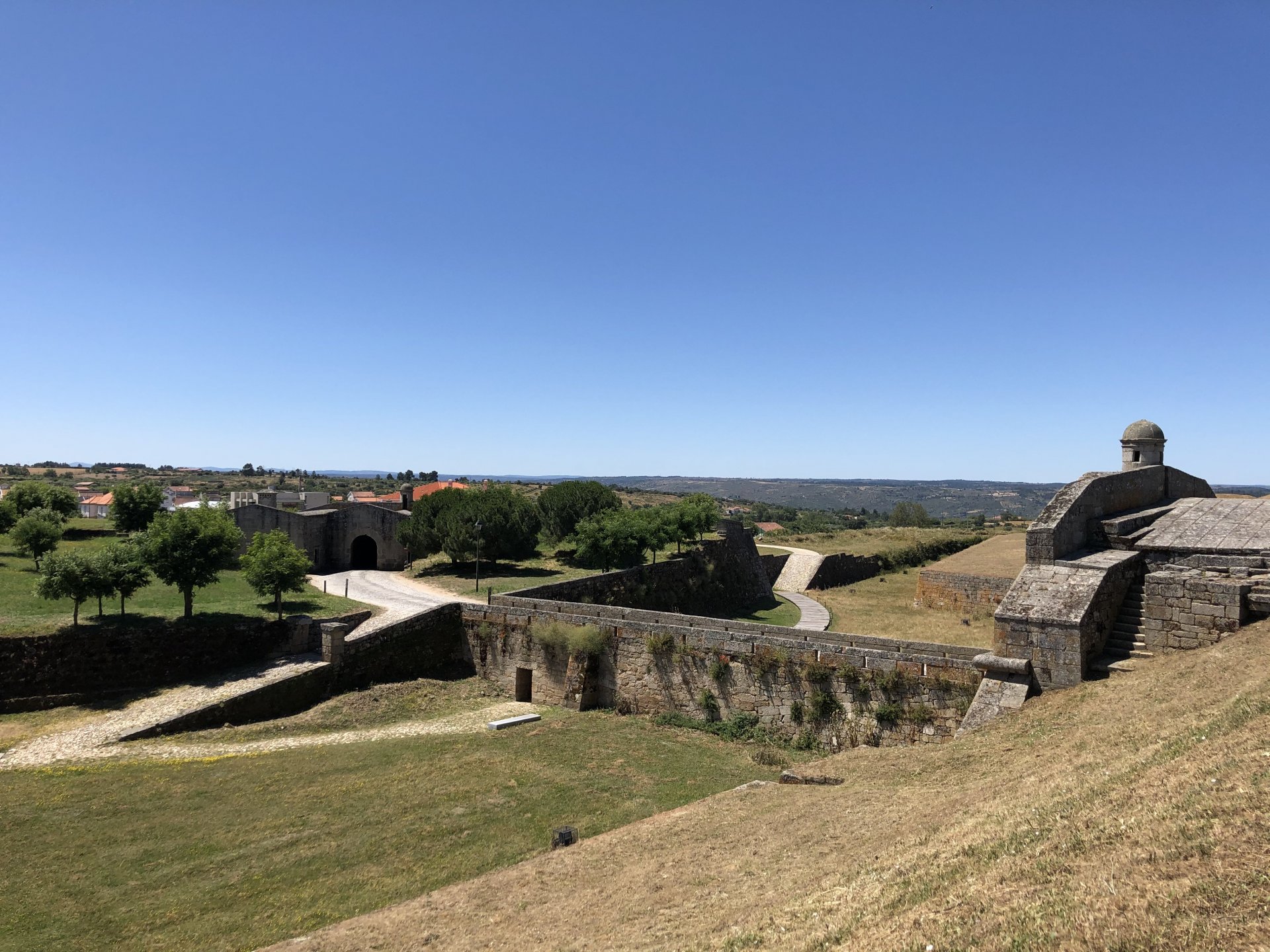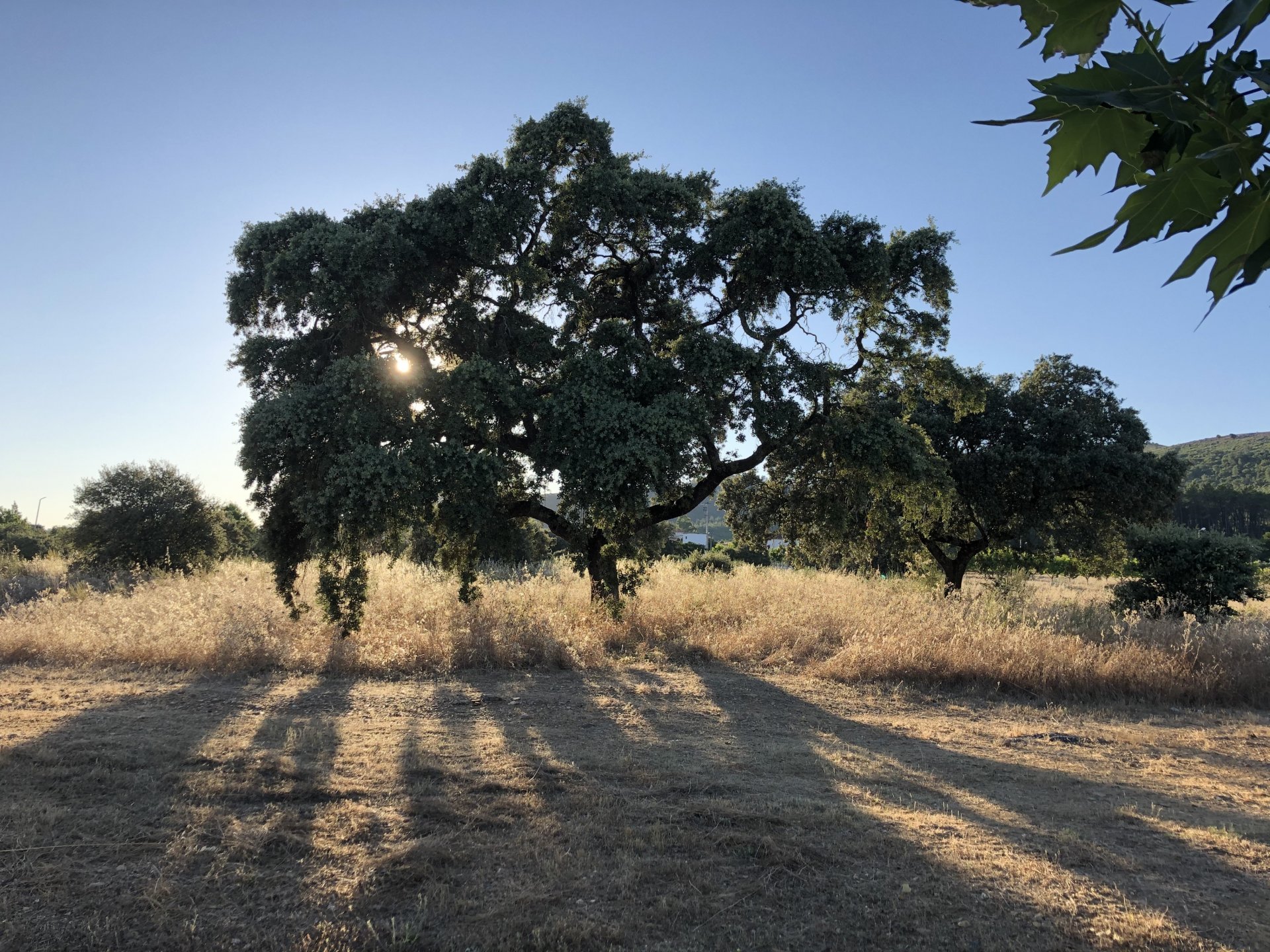 So, yesterday started well, not very warm by the time I left the hotel at around 9am, made my way to find some petrol as the bike was on reserve and in this part of the country you can ride for a while without fuel in rural areas, I mean 40km, not really such a drama. The big GS is quite frugal if you avoid motorways, and by the time I fueled up I had 600km on that tank with 50km range left. Landscape is changing now With a full tank I explore a little, there is no rush in going fast south, but I seem only be able to find dead ends, like this The grass is a little too tall for my liking, it's now getting a little hot and windy so I decide to go back to tarmac roads. A hot catalytic converter and tall dry grass is a great way to start a wildfire, and there has been enough of that over the last years. The road is good, though, I try to stick to small ones: See that on the other side of the river? That's Spain It's steeper than it looks My favourite road so far, as far as fun handling a motorcycle, it's barely wide enough for one van, and rolling and weaving through hills, with patches of dirt thrown in to keep it interesting: It was now getting hot, at around 11:30 it was over 37º, still I couldn't resist this dirt road: It only lasted for a few km, not even 15 I think. By now I am getting hot and hungry, so decide to find a small place for lunch. I stop at the first cafe that has shade outside, sit down and do a few calls and emails while I wait for my ham sandwich. Some water and a cold small beer go down a treat. Old lady in the cafe put some butter on the sandwich, "because I think this is your lunch, and you should have a proper lunch" Street scene, after these two dudes sat together having a drink inside, they proceeded to have a conversation outside while maintaining their social distancing , there's so much rural portugal in this picture ... Old lady over there in the shade with her cane is wearing full black, and it's 37º, she's got the cane ready for when the cat comes to shit on her flowers Back on the road, and a few kms later I stop to check my itinerary and a mini castle. Most common big birds now are storks: Pretty proud of myself taking this picture, and I go and put my thumb in it Half an hour later, the roads are ok but the heat is barely manageable. I stop at a fountain and wash my head to cool down. Last stop before getting to the hotel is Marvão and it's castle. It's very high up and worth it for the views alone. There it is in the distance: Make it to the hotel, and quickly make my way to the pool, to finish the day. I drank almost 1,5 liters of water just sitting there, plus a couple of beers, before starting to feel less thirsty. Sofia joined me for dinner, I had some greats cuttlefish and clams cooked in garlic and olive oil, it was amazing. Too much wine was had.