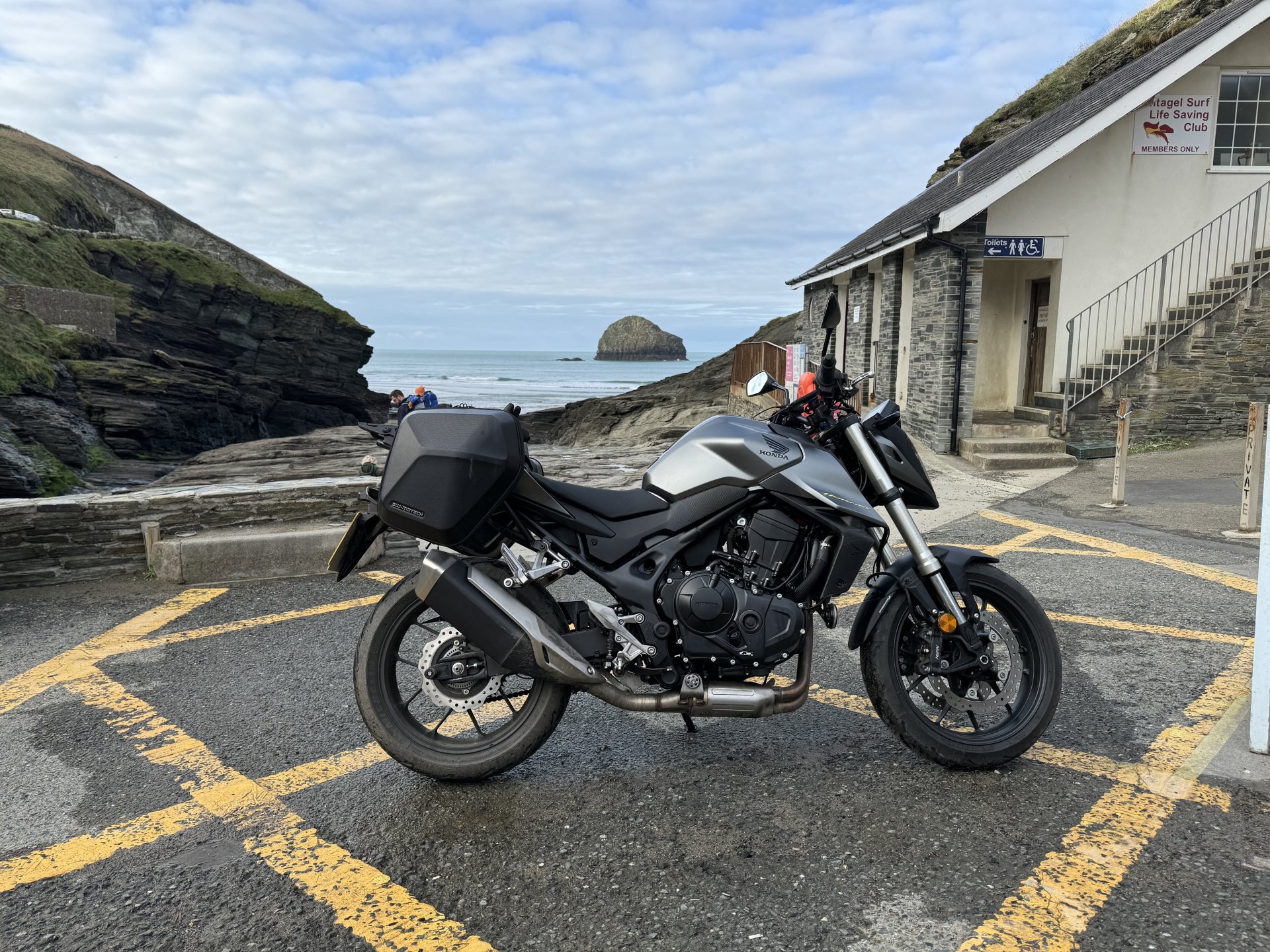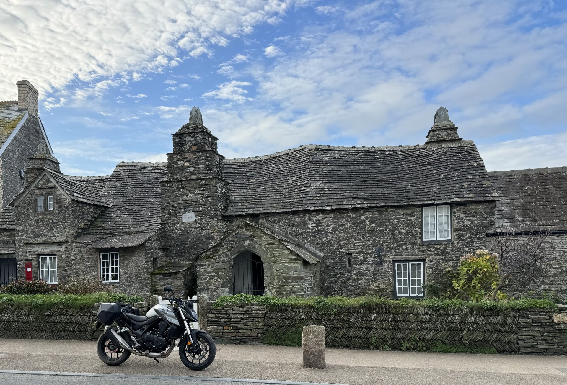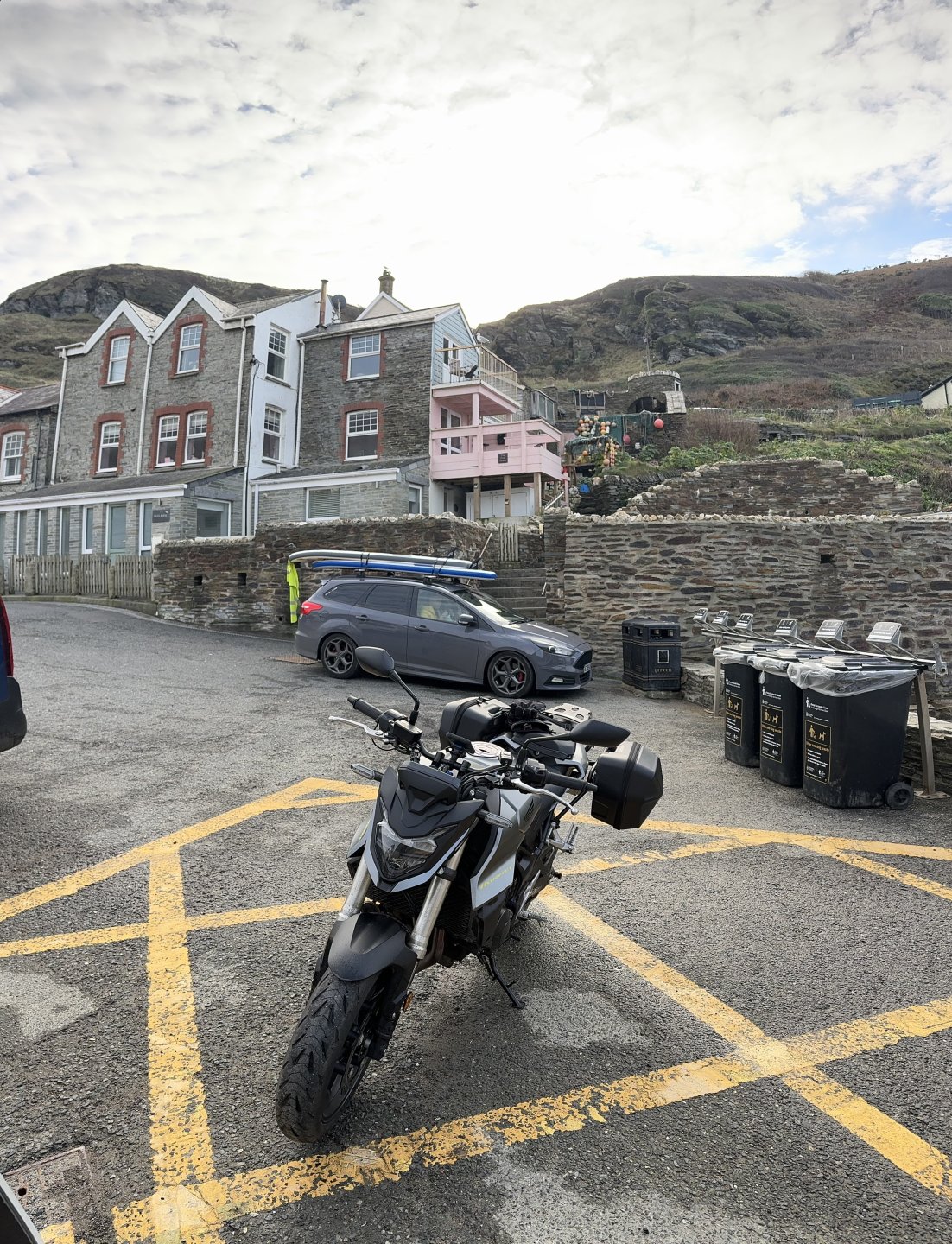 When out for a bimble this morning over to the north coast. Lovely clear dry day but cold ish around 6c. I wanted to take a photo by the Old Post Office at Tintagel. The place where King Arthur’s Castle is supposed to be. Not convinced myself but there is a castle there. Then went on to Trebarwith Strand but bit disappointed with the photos from there bins and road marking spoilt what could be a fantastic view. Fed up with cameras I bimbled off down the coast road past Delabole and Port Issac. To Wadebridge. Then took the Atlantic Highway (stupid name) further west to Newquay then headed home. I must admit I am happiest on the bike bimbling along A and B roads on my own. No twats around me being stupid, there is a lot to be said for that. Took an iron will not to go into a cafe for a fry up, but I was good. Big thumbs up for thermal gear, you wouldn’t think one thin extra layer would make such a difference. Also heated grips, I don’t want to ride without them anymore. Now thawing out at home over a coffee. Chilled right out. Oh and in case I haven’t mentioned it, I fucking love that Hornet.