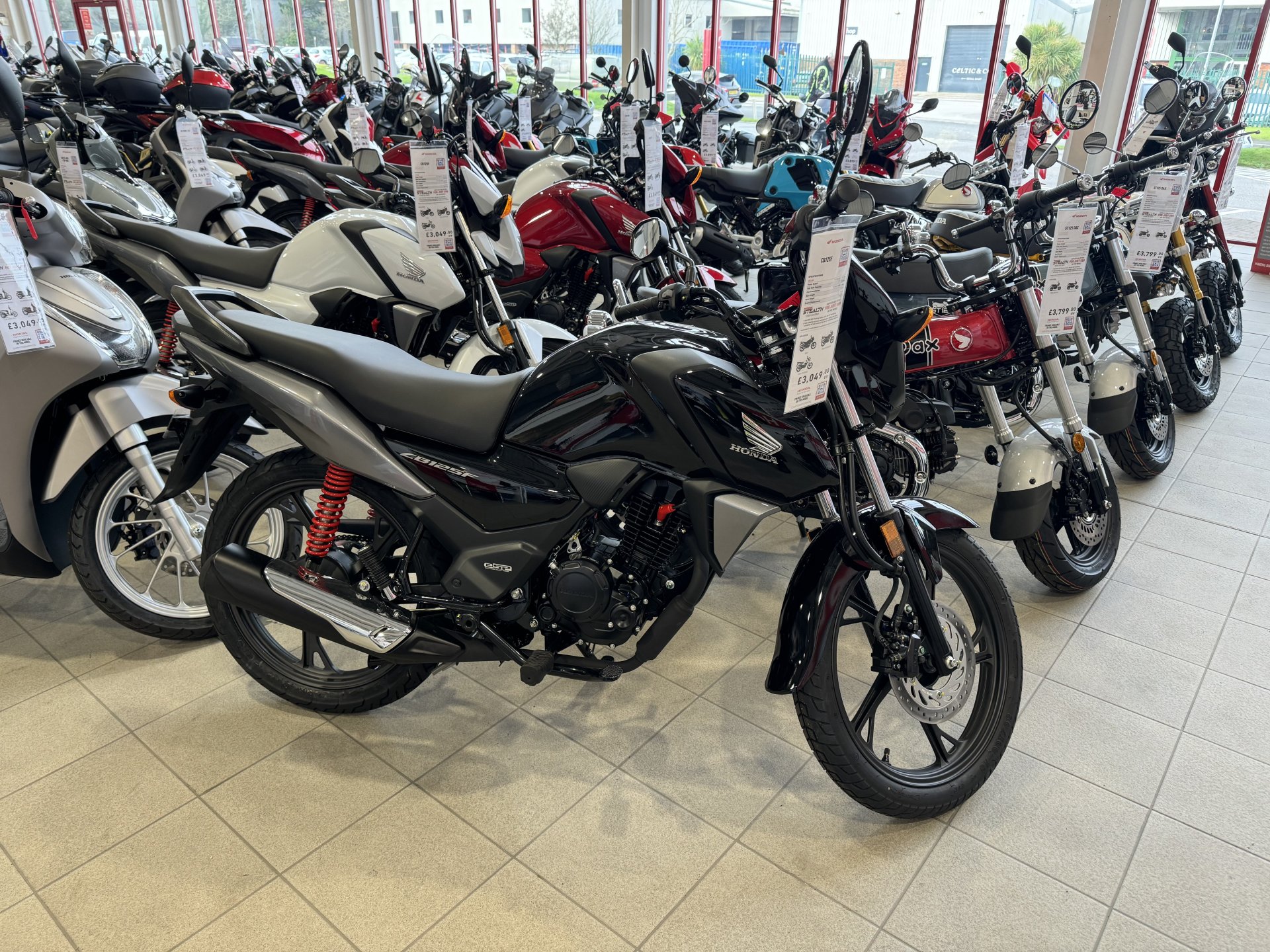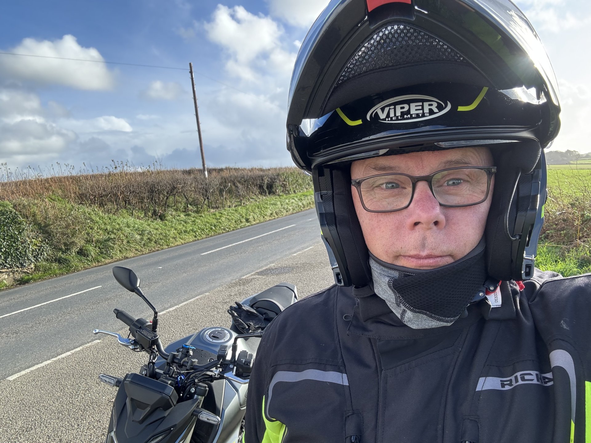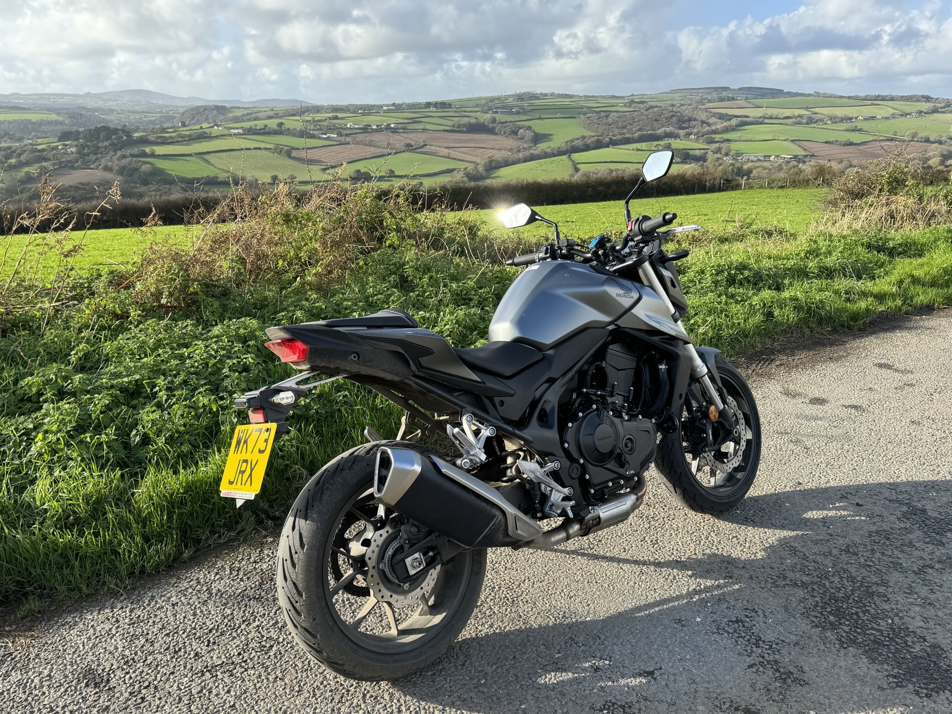 Just popped up to Damerells as the owners handbook was not on the Hornet when I got it home on day one. No issue they got one for me just needed to pick it up, they offered to post it but I didn’t need any encouragement to get out on the Hornet which is now shit high again. I did notice my old CB500 was in the sold line. The salesman did his best to convince me that I should buy a CB125 for my youngest. Who desperately wants a cool black bike like mine, tis a bit of a squint to see the resemblance but it is what she is after. The spanner in the works is that she has only just turned 16 so another 12 months yet. No sale today. I would prefer her to have something second hand but she knows her mind and would use her money so I don’t have a lot of say in it