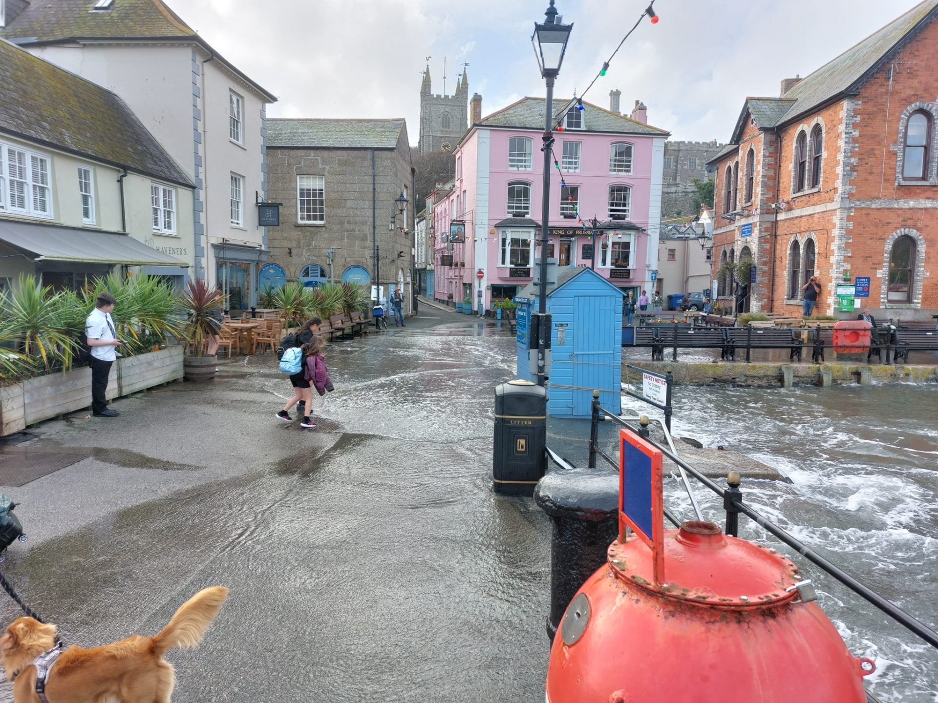 That was high tide so unless the wind takes off that should be it. It is quite common to get water through the street so everywhere can deal with it. Not the drama you might think.