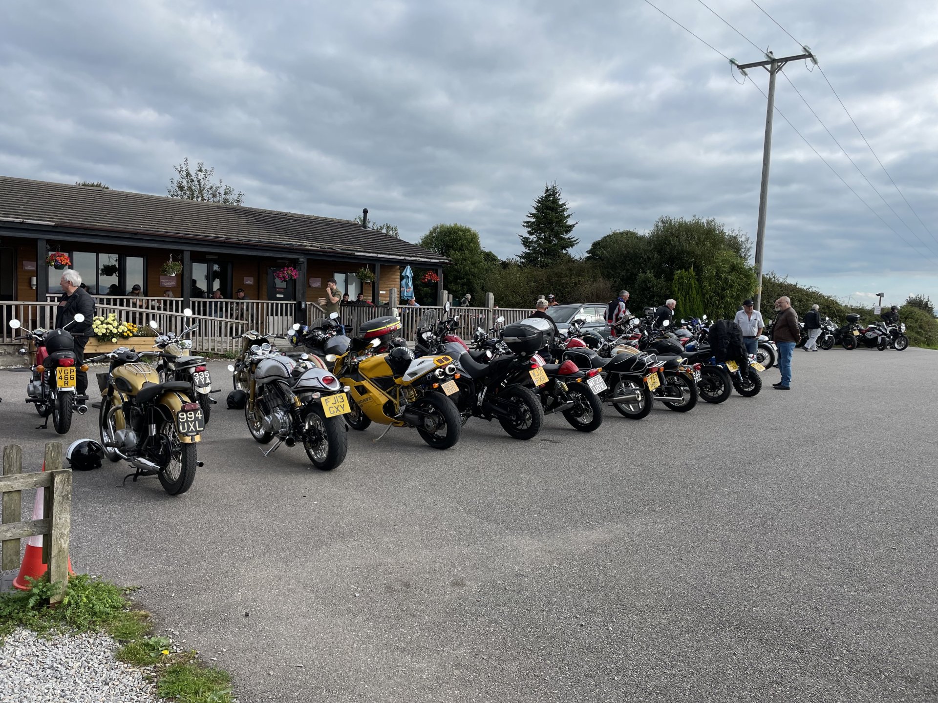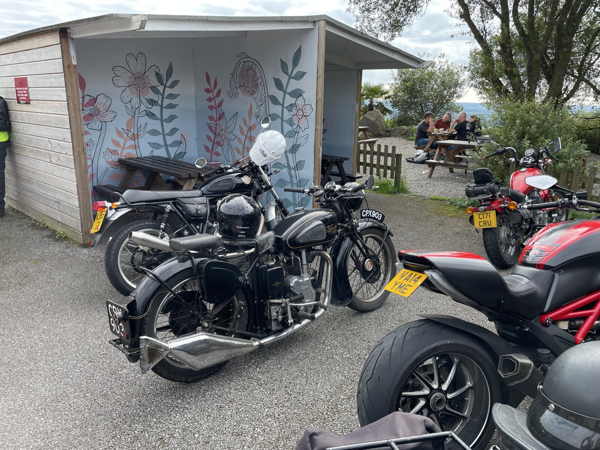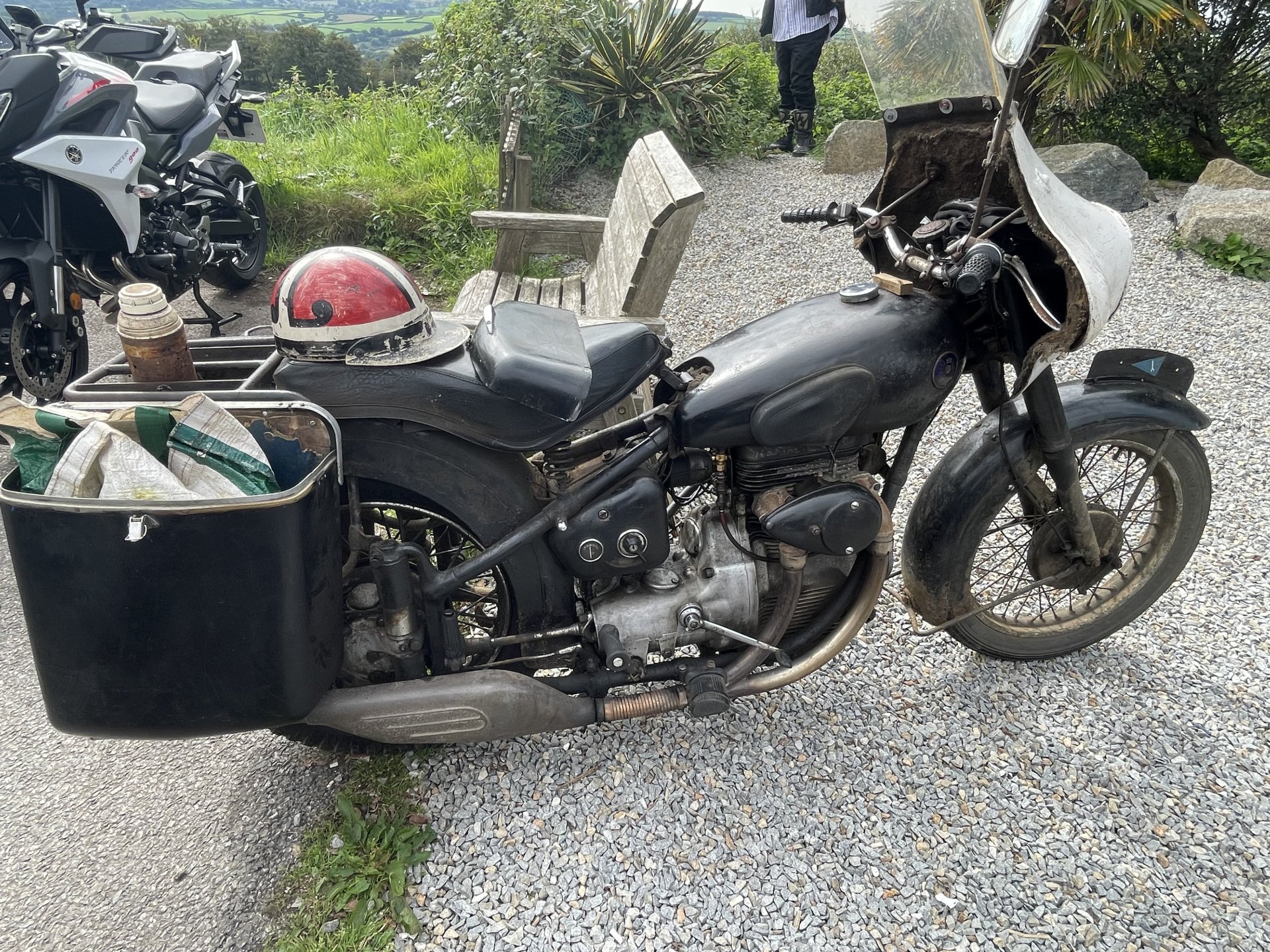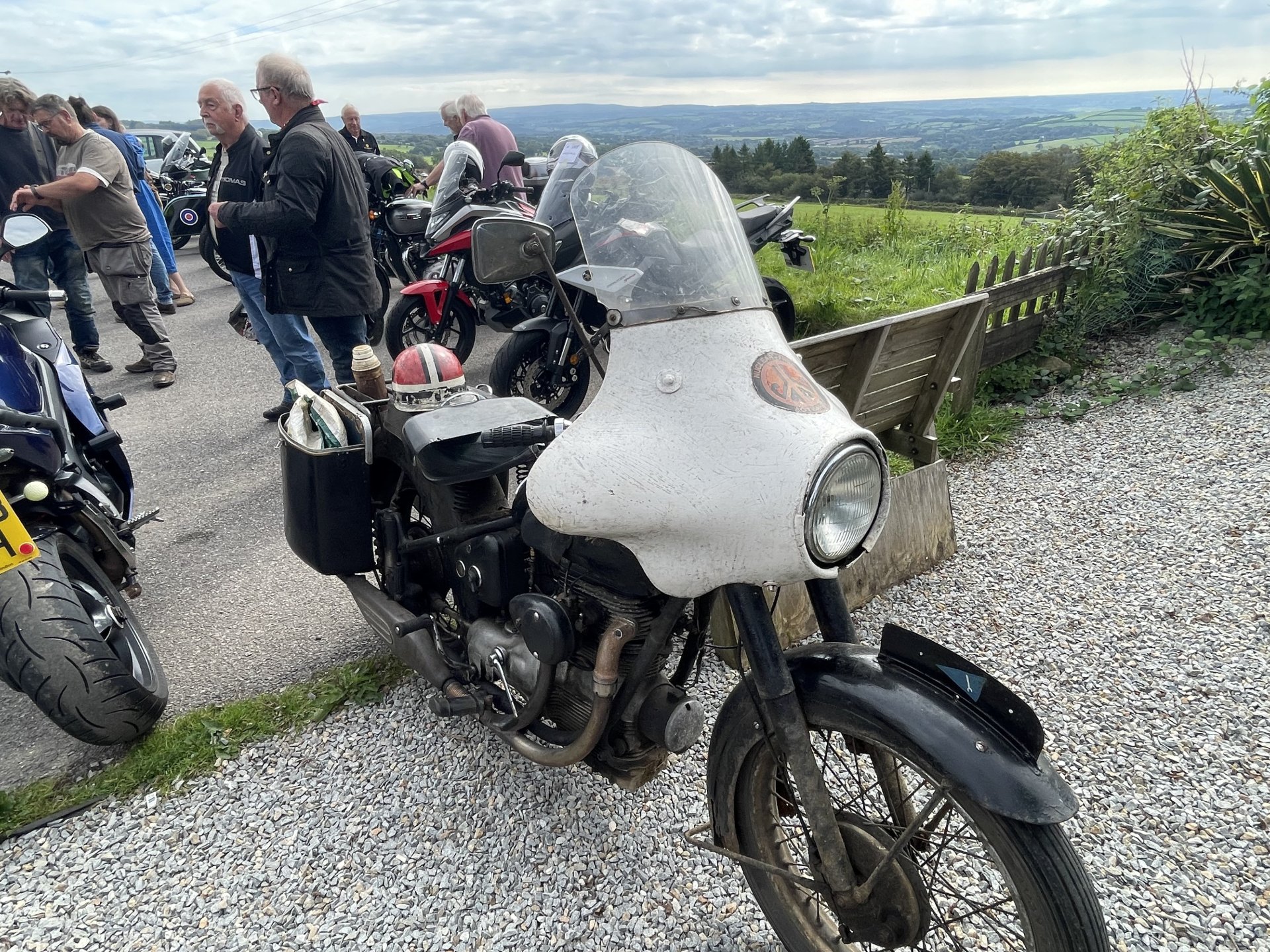 Well all the females in the family were off to some Gymkhana today and I had planned to do next to nothing so I rolled out of bed late at 8:30 and had a look on my phone. There was a message from last night saying if you want to ride up to Kitt Hill for breakfast meet us at 4Turnings garage at 9:00am. Panic stations as Louis at Kitt Hill do a Killer breakfast. Shit, dressed, teeth and I made it with 5 mins to spare. I met up with two mates one on a 1986 BMW R100 and the other with a 1973 Triumph Bonnie. They gave a lovely sound track up to Kitt Hill, 30 miles or so. When we got there it was the start of a Classic Bike meet which was a complete surprise to us. We got our breakfast orders in sharpish then sat and watched the bikes arrive. It soon got much busier I loved the cam gear window on this Duc Can you spot what’s odd about this lovely old R100C ? I loved this old Sunbeam. The guy riding it was just as old and scruffy. Cool dude though. Spot the ignition switch on this Cotton. I am guessing there must have been 100 bikes or much, lots of modern Triumphs, Harleys and Sports Bikes but I only photographed what I was interested in. Afterwards my mate on the R100 had to go home to let the dog out, single guy. My mate with Triumph suggested that we go up to Dartmoor for a ride. It is stunning up there and of course I never thought to photograph any of it. We did stop in Princetown for a coffee overlooking the Prison. Actually, although it sounds grim with the Prison and all, Princetown is a very nice little town. We then headed up across the moor to Chagford turned around and did a sort of X shape across the moor and back. Great day and not planned at all but lots of fun. Couple of moments when my mates Bonnie didn’t want to start but with some swearing and a few kicks it came back to life. Of course I took the piss with my reliable Honda. It’s always the unplanned trips that are the best. Now off to apply more after sun to me head.