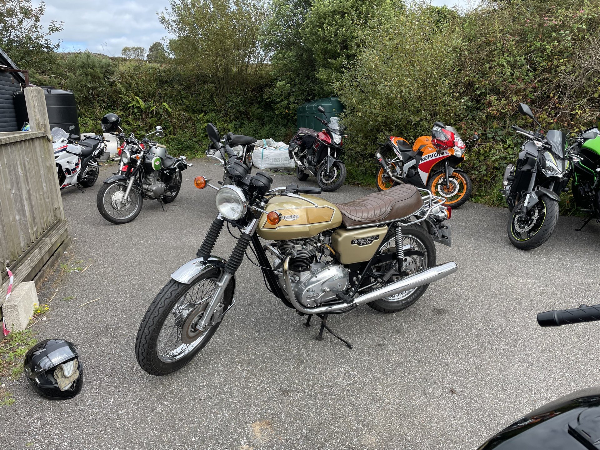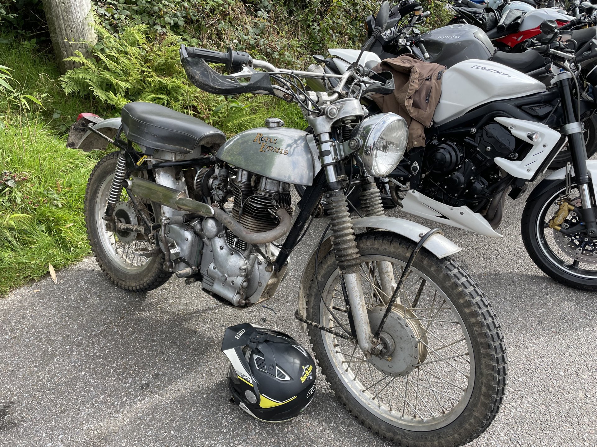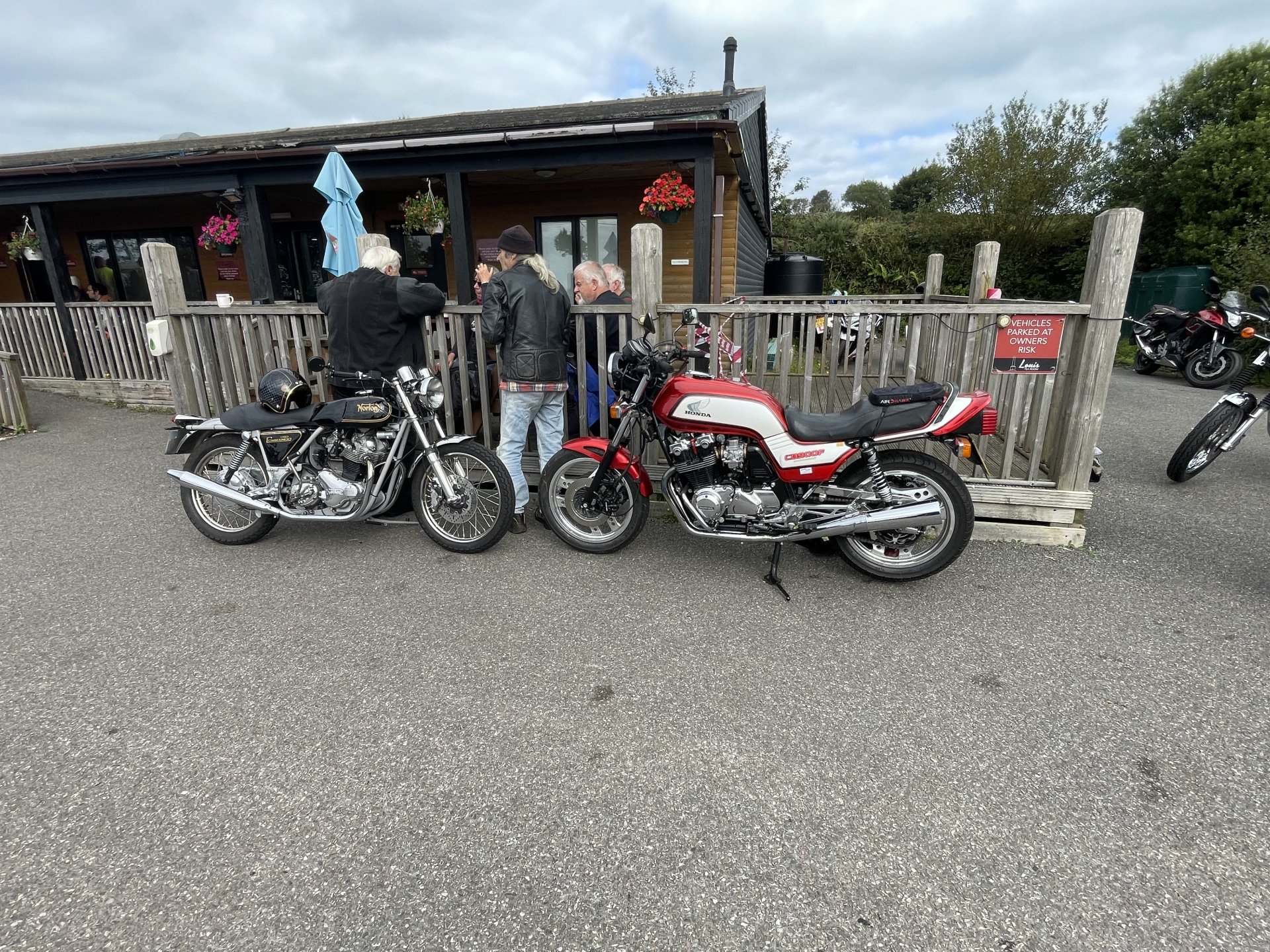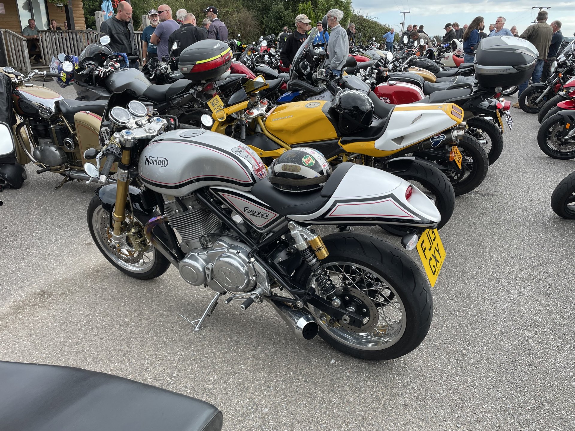 Well all the females in the family were off to some Gymkhana today and I had planned to do next to nothing so I rolled out of bed late at 8:30 and had a look on my phone. There was a message from last night saying if you want to ride up to Kitt Hill for breakfast meet us at 4Turnings garage at 9:00am. Panic stations as Louis at Kitt Hill do a Killer breakfast. Shit, dressed, teeth and I made it with 5 mins to spare. I met up with two mates one on a 1986 BMW R100 and the other with a 1973 Triumph Bonnie. They gave a lovely sound track up to Kitt Hill, 30 miles or so. When we got there it was the start of a Classic Bike meet which was a complete surprise to us. We got our breakfast orders in sharpish then sat and watched the bikes arrive. It soon got much busier I loved the cam gear window on this Duc Can you spot what’s odd about this lovely old R100C ? I loved this old Sunbeam. The guy riding it was just as old and scruffy. Cool dude though. Spot the ignition switch on this Cotton. I am guessing there must have been 100 bikes or much, lots of modern Triumphs, Harleys and Sports Bikes but I only photographed what I was interested in. Afterwards my mate on the R100 had to go home to let the dog out, single guy. My mate with Triumph suggested that we go up to Dartmoor for a ride. It is stunning up there and of course I never thought to photograph any of it. We did stop in Princetown for a coffee overlooking the Prison. Actually, although it sounds grim with the Prison and all, Princetown is a very nice little town. We then headed up across the moor to Chagford turned around and did a sort of X shape across the moor and back. Great day and not planned at all but lots of fun. Couple of moments when my mates Bonnie didn’t want to start but with some swearing and a few kicks it came back to life. Of course I took the piss with my reliable Honda. It’s always the unplanned trips that are the best. Now off to apply more after sun to me head.