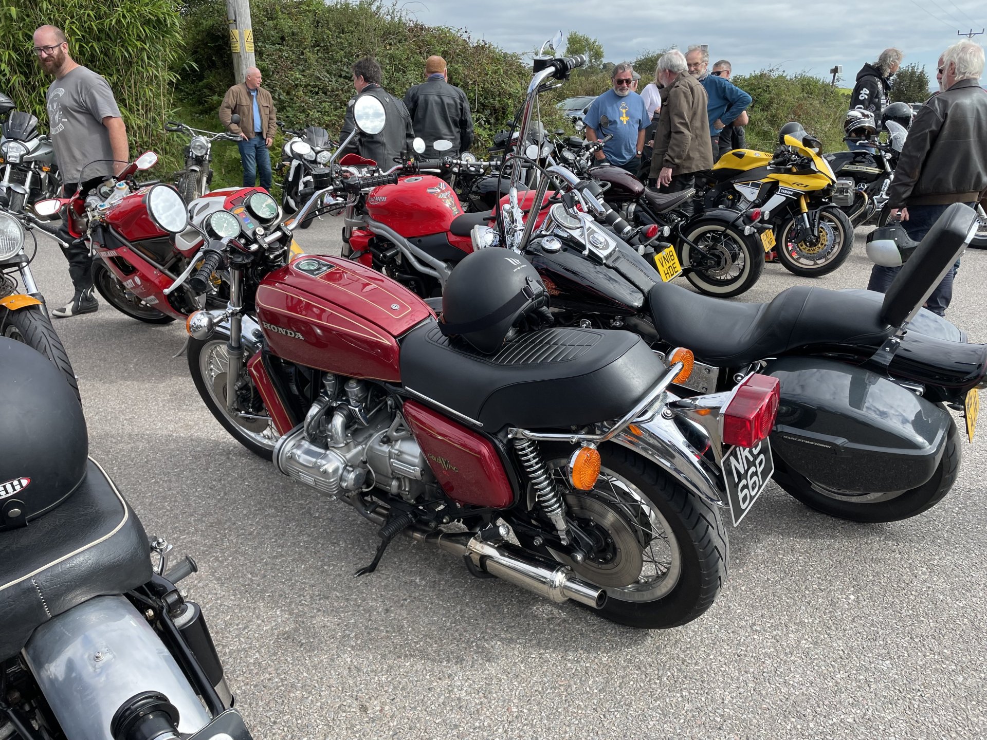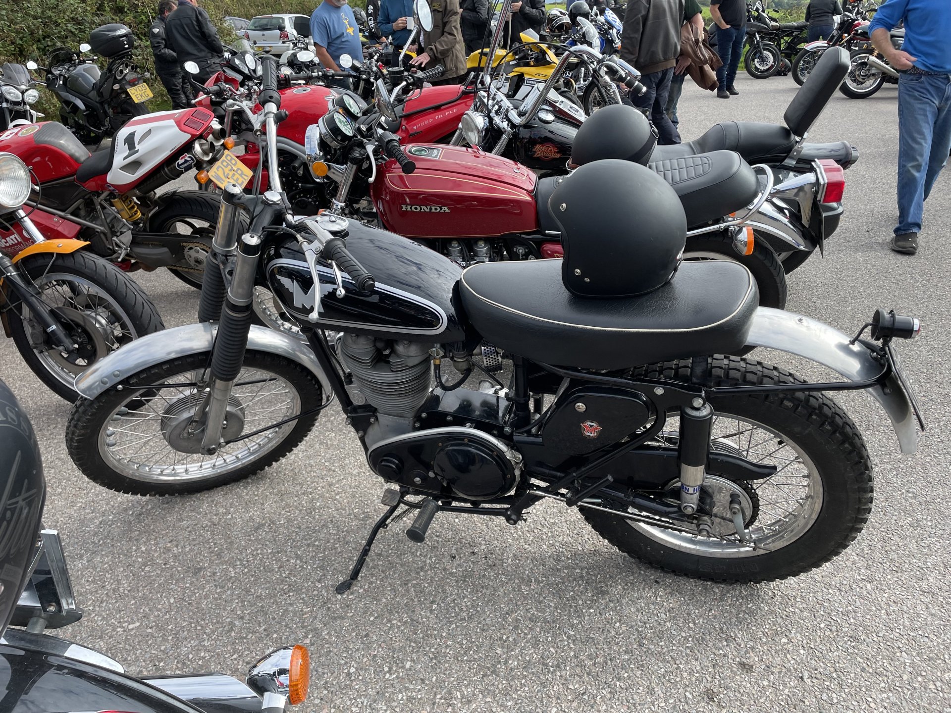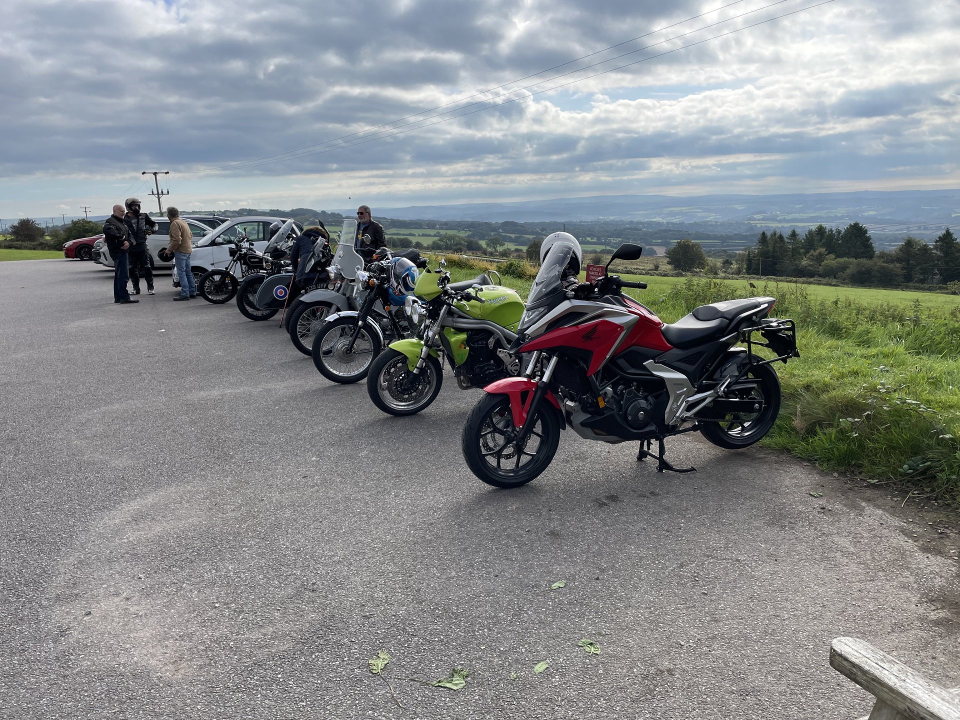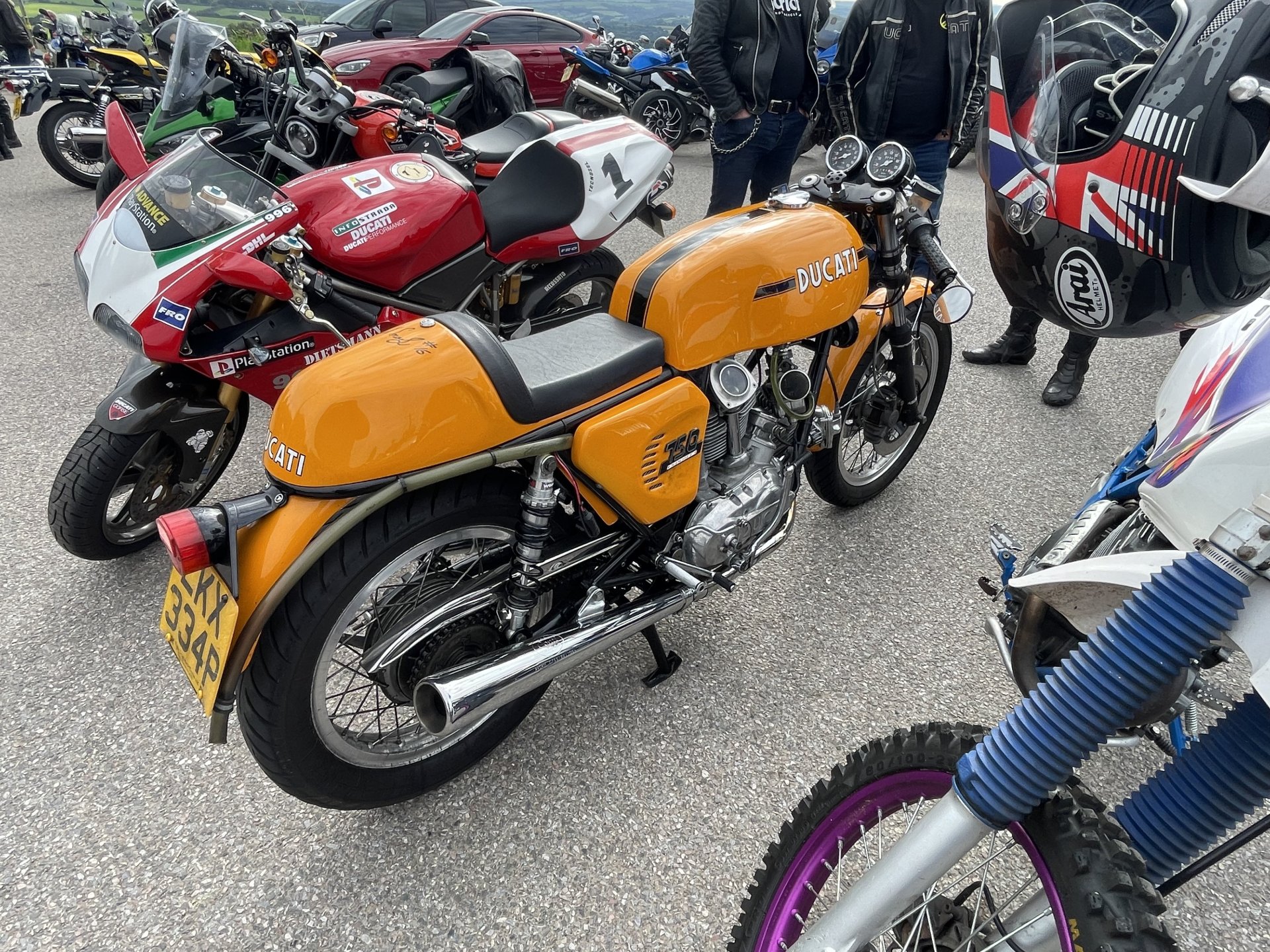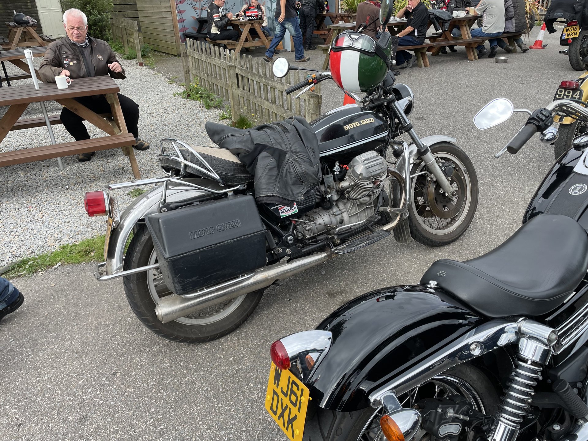 Well all the females in the family were off to some Gymkhana today and I had planned to do next to nothing so I rolled out of bed late at 8:30 and had a look on my phone. There was a message from last night saying if you want to ride up to Kitt Hill for breakfast meet us at 4Turnings garage at 9:00am. Panic stations as Louis at Kitt Hill do a Killer breakfast. Shit, dressed, teeth and I made it with 5 mins to spare. I met up with two mates one on a 1986 BMW R100 and the other with a 1973 Triumph Bonnie. They gave a lovely sound track up to Kitt Hill, 30 miles or so. When we got there it was the start of a Classic Bike meet which was a complete surprise to us. We got our breakfast orders in sharpish then sat and watched the bikes arrive. It soon got much busier I loved the cam gear window on this Duc Can you spot what’s odd about this lovely old R100C ? I loved this old Sunbeam. The guy riding it was just as old and scruffy. Cool dude though. Spot the ignition switch on this Cotton. I am guessing there must have been 100 bikes or much, lots of modern Triumphs, Harleys and Sports Bikes but I only photographed what I was interested in. Afterwards my mate on the R100 had to go home to let the dog out, single guy. My mate with Triumph suggested that we go up to Dartmoor for a ride. It is stunning up there and of course I never thought to photograph any of it. We did stop in Princetown for a coffee overlooking the Prison. Actually, although it sounds grim with the Prison and all, Princetown is a very nice little town. We then headed up across the moor to Chagford turned around and did a sort of X shape across the moor and back. Great day and not planned at all but lots of fun. Couple of moments when my mates Bonnie didn’t want to start but with some swearing and a few kicks it came back to life. Of course I took the piss with my reliable Honda. It’s always the unplanned trips that are the best. Now off to apply more after sun to me head.