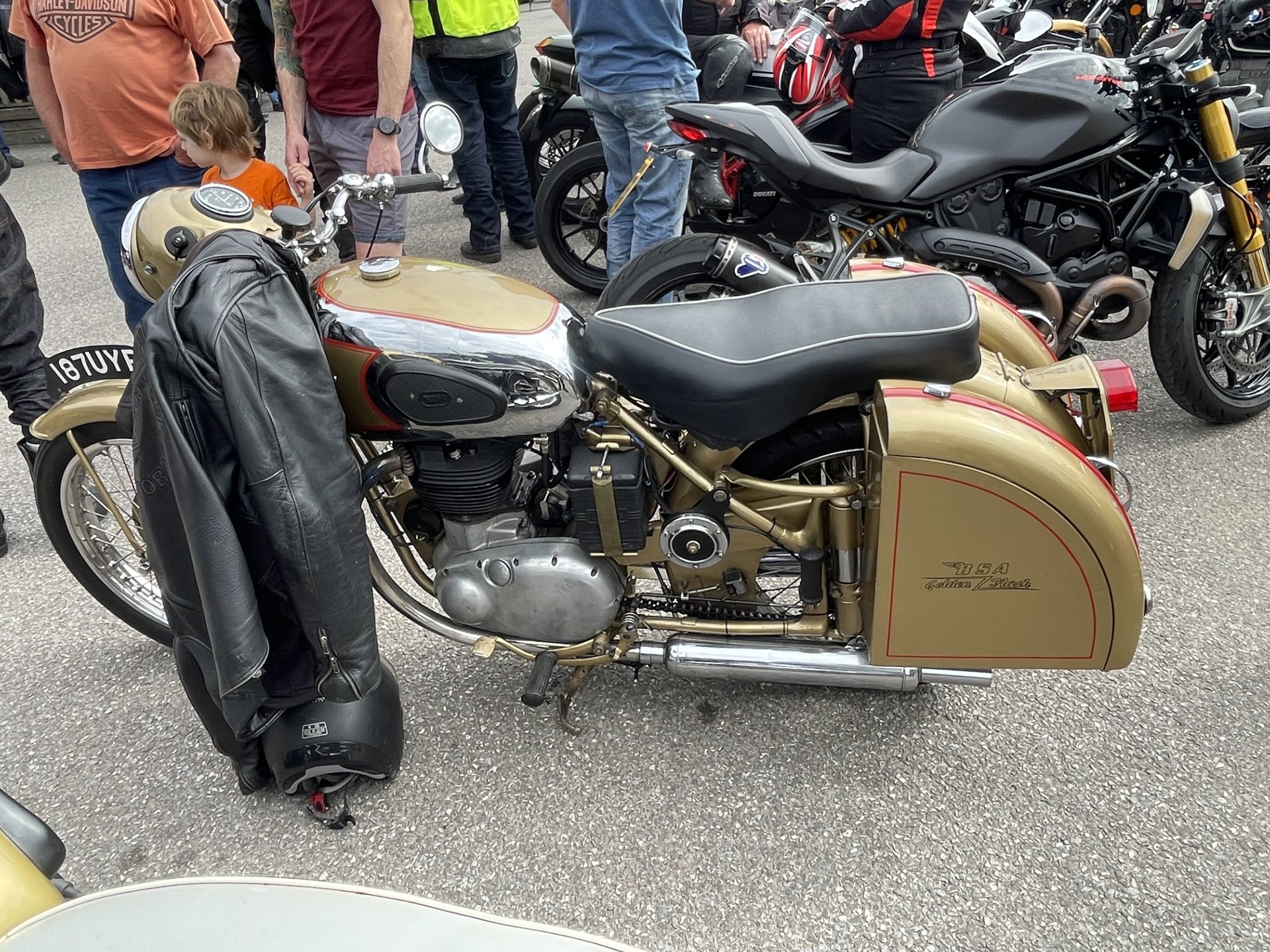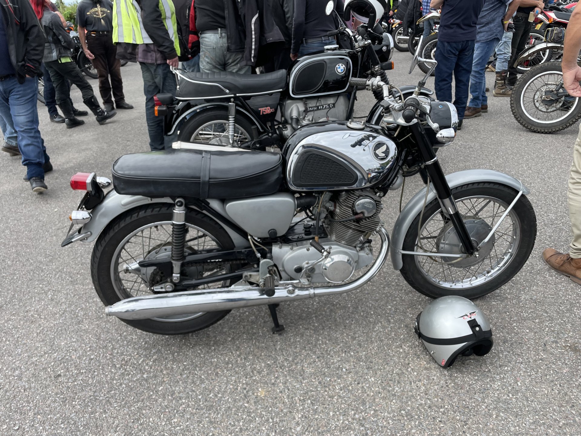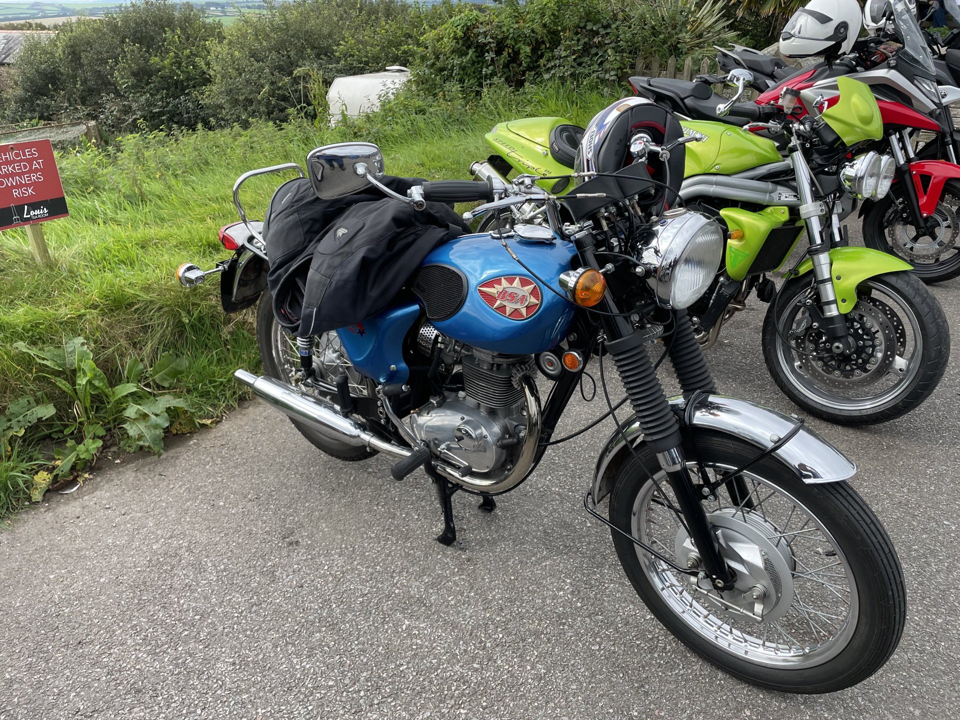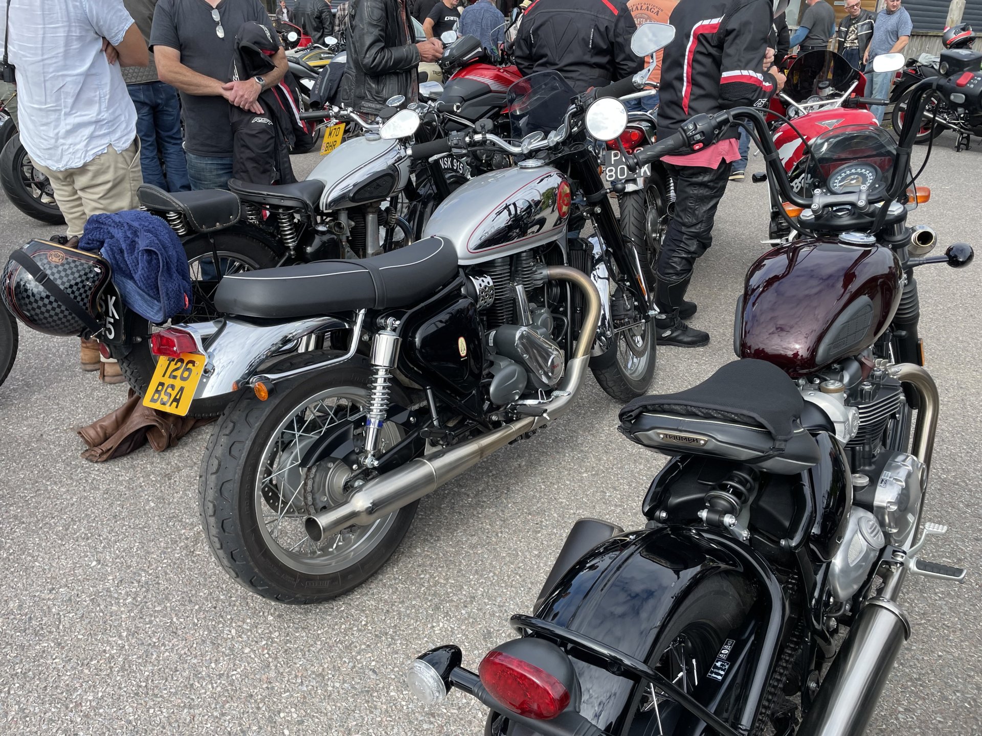 Well all the females in the family were off to some Gymkhana today and I had planned to do next to nothing so I rolled out of bed late at 8:30 and had a look on my phone. There was a message from last night saying if you want to ride up to Kitt Hill for breakfast meet us at 4Turnings garage at 9:00am. Panic stations as Louis at Kitt Hill do a Killer breakfast. Shit, dressed, teeth and I made it with 5 mins to spare. I met up with two mates one on a 1986 BMW R100 and the other with a 1973 Triumph Bonnie. They gave a lovely sound track up to Kitt Hill, 30 miles or so. When we got there it was the start of a Classic Bike meet which was a complete surprise to us. We got our breakfast orders in sharpish then sat and watched the bikes arrive. It soon got much busier I loved the cam gear window on this Duc Can you spot what’s odd about this lovely old R100C ? I loved this old Sunbeam. The guy riding it was just as old and scruffy. Cool dude though. Spot the ignition switch on this Cotton. I am guessing there must have been 100 bikes or much, lots of modern Triumphs, Harleys and Sports Bikes but I only photographed what I was interested in. Afterwards my mate on the R100 had to go home to let the dog out, single guy. My mate with Triumph suggested that we go up to Dartmoor for a ride. It is stunning up there and of course I never thought to photograph any of it. We did stop in Princetown for a coffee overlooking the Prison. Actually, although it sounds grim with the Prison and all, Princetown is a very nice little town. We then headed up across the moor to Chagford turned around and did a sort of X shape across the moor and back. Great day and not planned at all but lots of fun. Couple of moments when my mates Bonnie didn’t want to start but with some swearing and a few kicks it came back to life. Of course I took the piss with my reliable Honda. It’s always the unplanned trips that are the best. Now off to apply more after sun to me head.