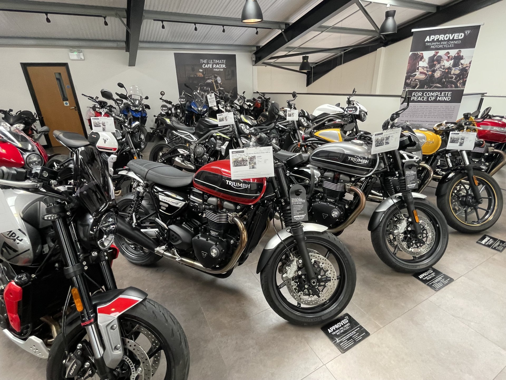 Finally managed to get out today so thought I would pop up to the Triumph dealership in Plymouth, my nearest one. I have a rough idea where it was but it was the perfect opportunity to try out my Nav set up with Google maps on my phone with directions going through Bluetooth to my helmet. Worked really well, also let me listen to a podcast on the way to Anyway worked out to be around 38 miles so just a short hop really. They had some lovely stuff in the showroom and pretty friendly staff who were chatty but didn’t put any pressure tactics into play. I liked the place. Funnily enough I went to look at some Bonnevilles but the the 660 Tiger took my eye. Not that I was seriously looking just interested wanting to waste some time with a destination.