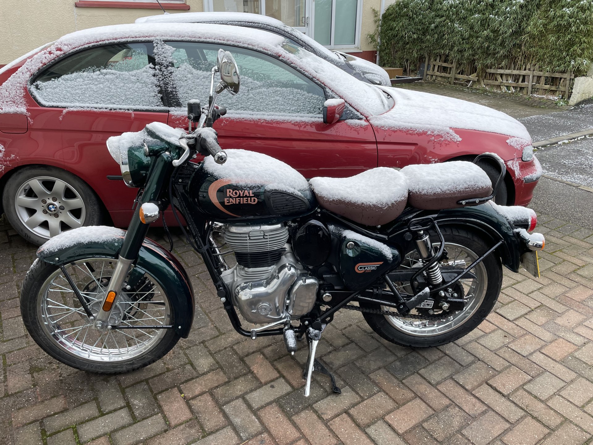 To be completely honest I had to pick my bike up from the dealership plus return the loaner I had. I rode up there on the RE Classic 350 they lent me on full clench, nice little bike though it was, slippery stuff on someone’s else’s bike is a worry. Much more relaxed when I got my Himalayan back. Obviously I was taking easy but the Himalayan felt pretty secure despite the conditions. I was a lot more confident on that than the Classic 350.