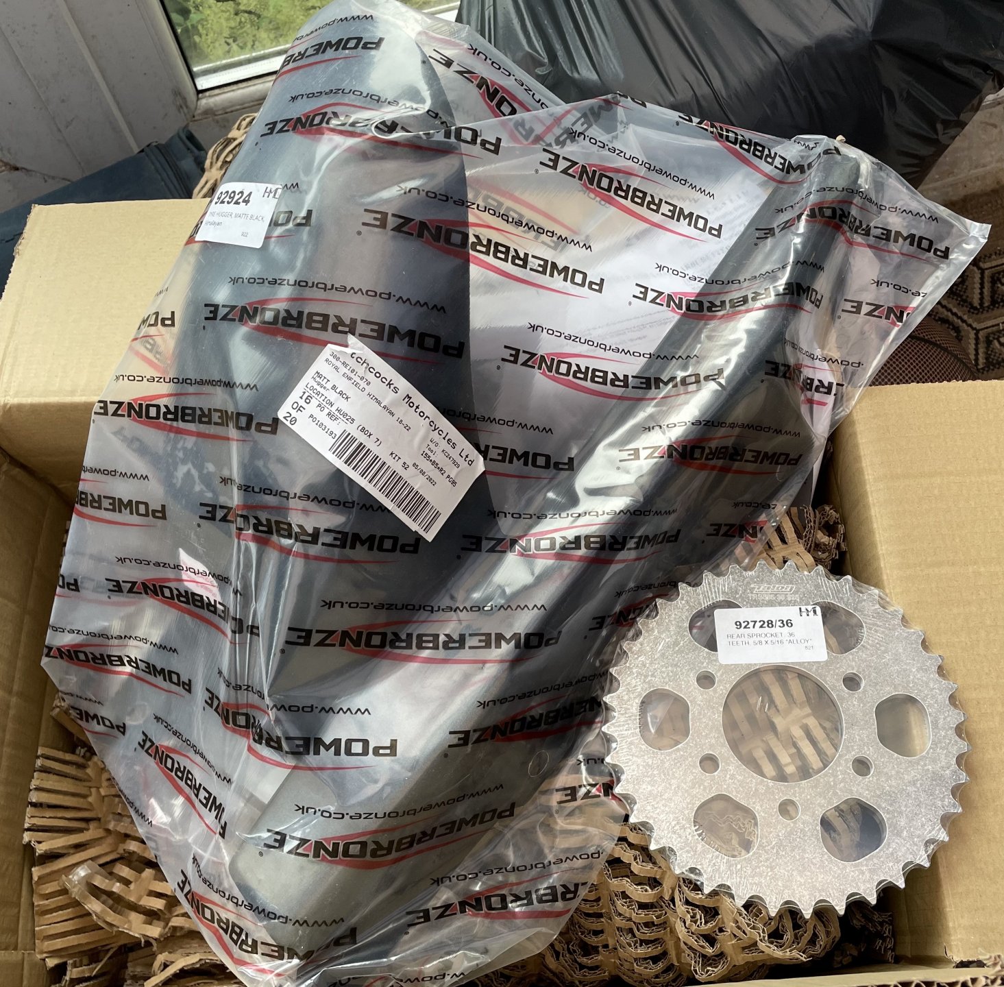 Well I gave it some thought and after cleaning a load of crap off the rear shock for the 3rd or 4th time I have decided to go Hugger before the salt arrives. A nice man from Parcel force brought me a box of goodies.