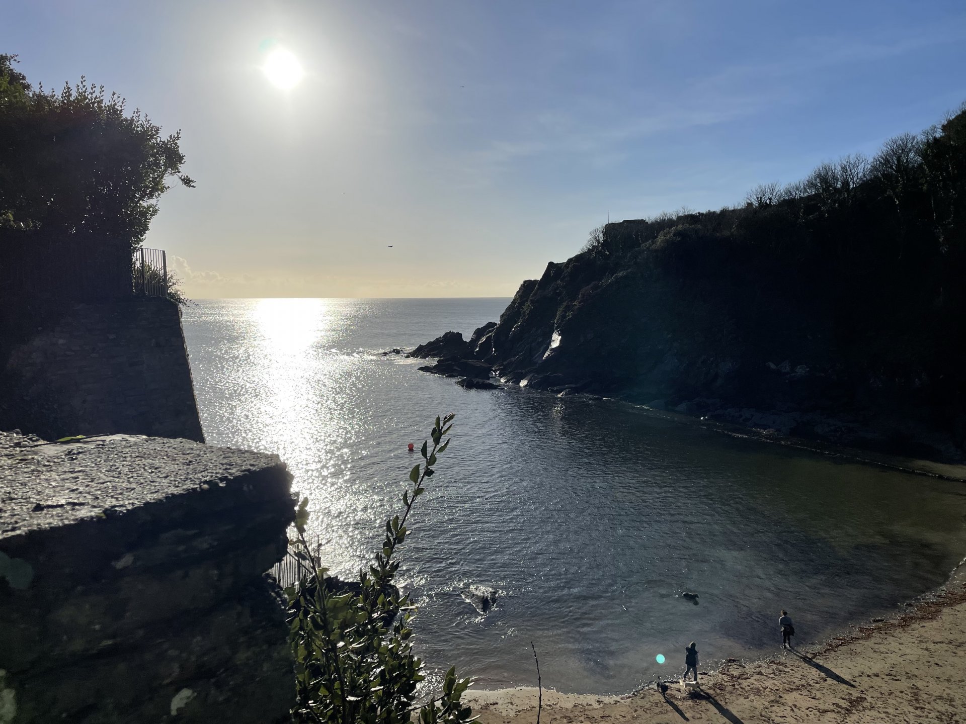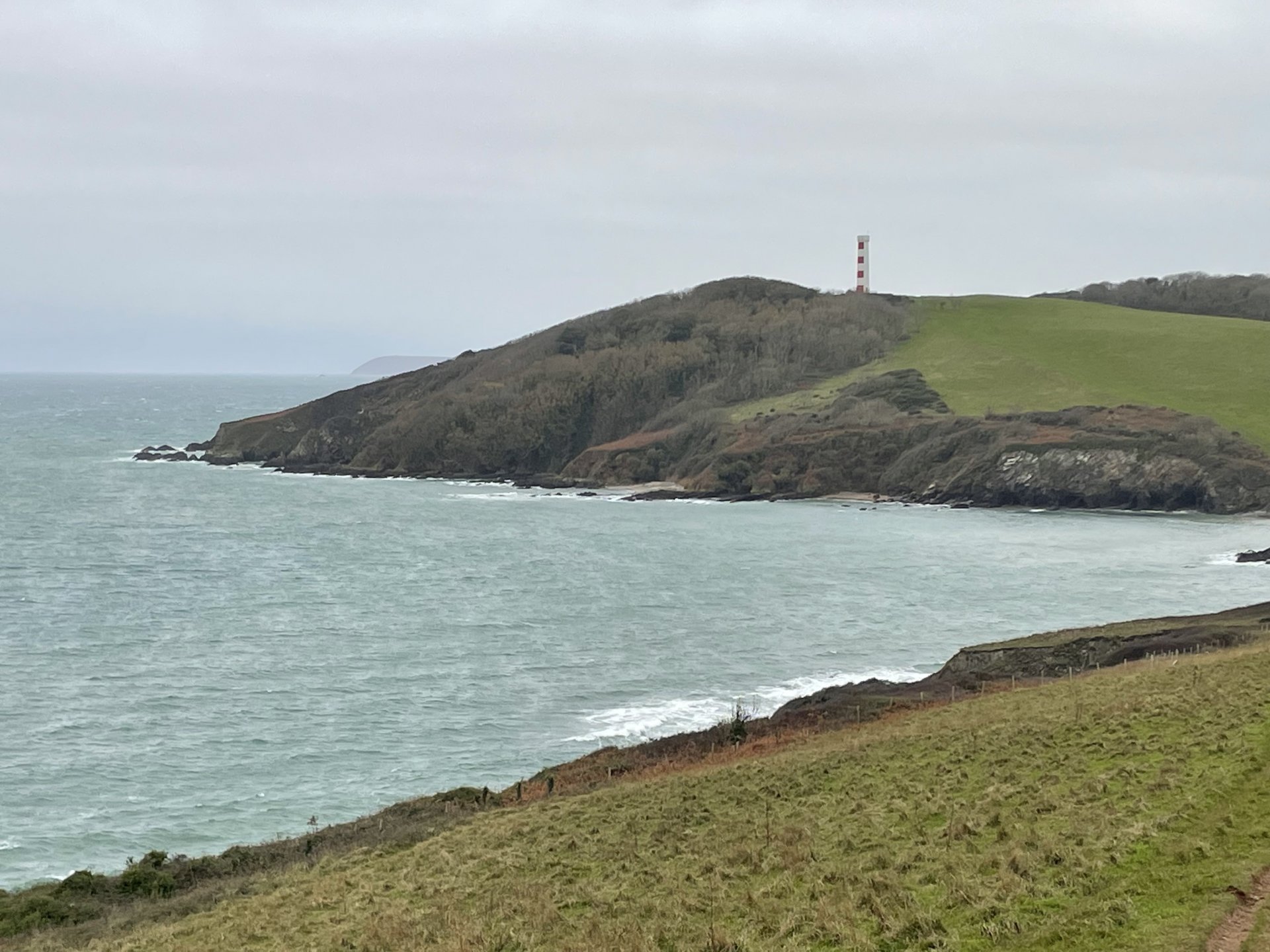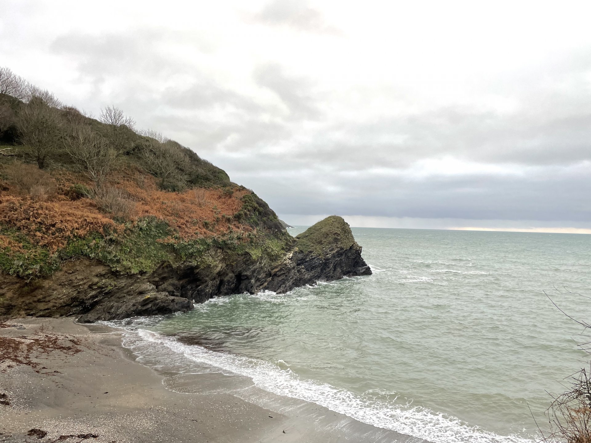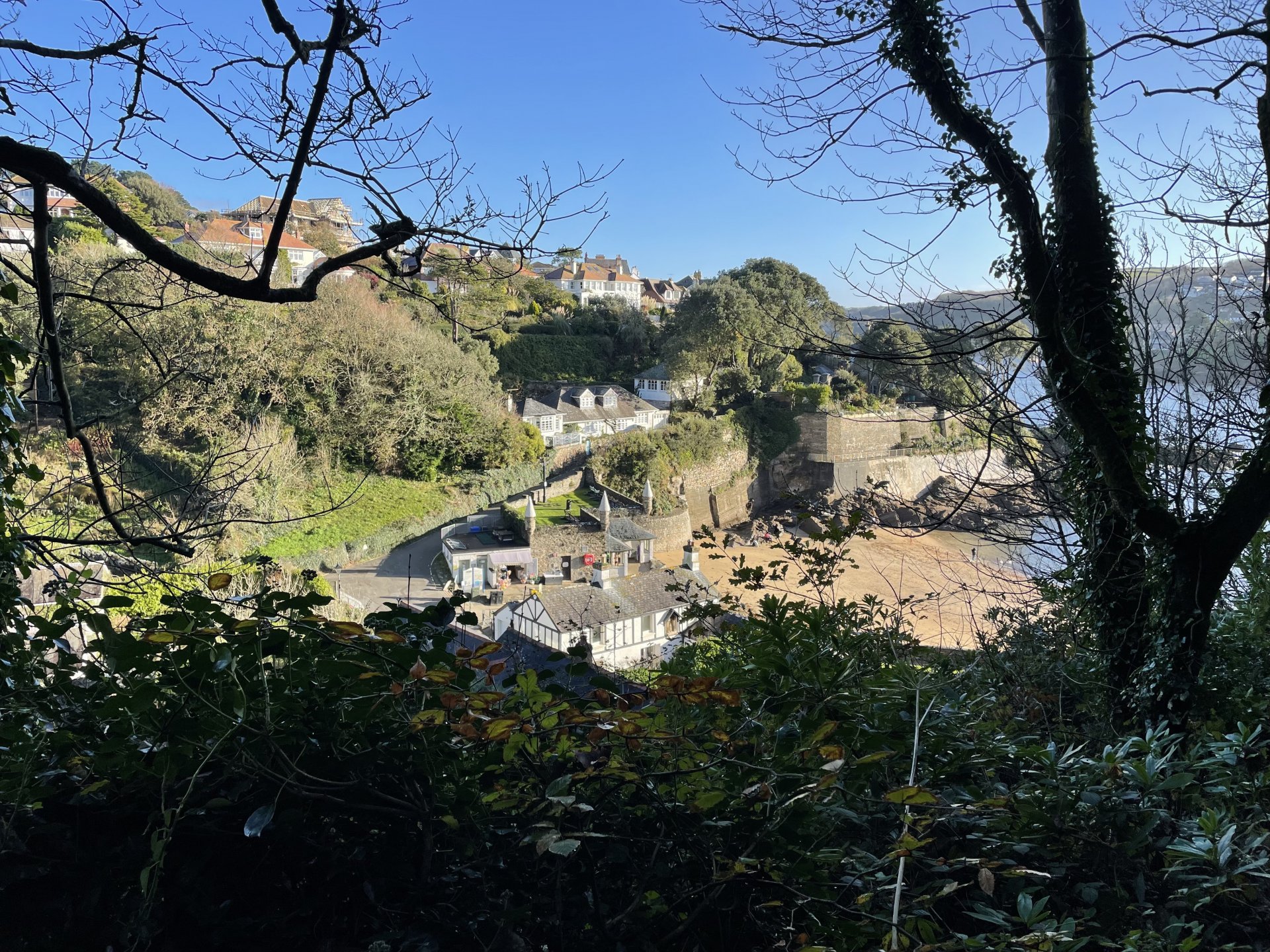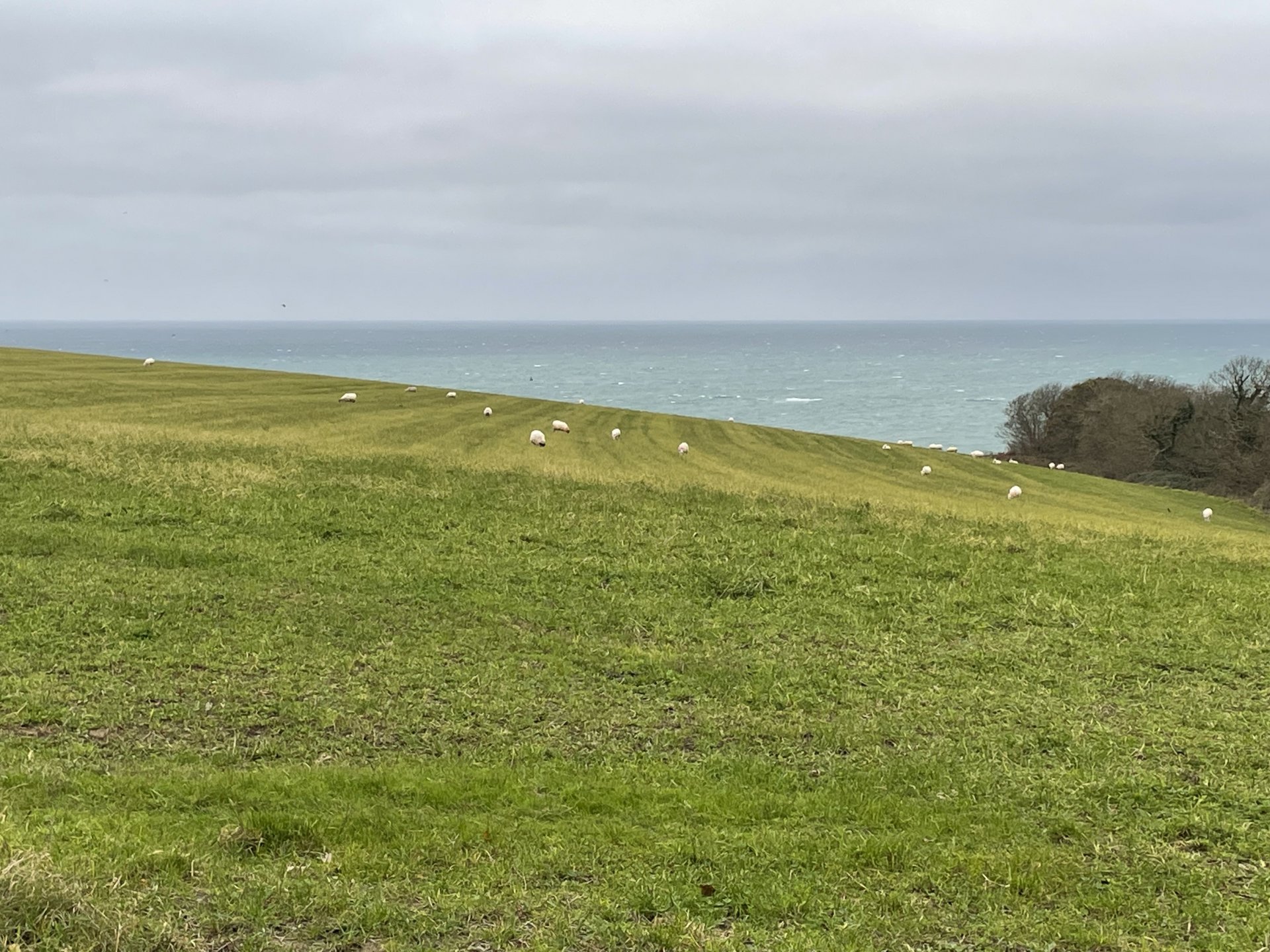 Out and about with the Dear Boy today, Did a loop around the cliffs and home, I misspoke before it was 7.7k not 7.5. Just checked my watch thing. Noticed a lone fishing boat out in the bay. On Thursday you normally see a warship out in the Bay as we aren't that far away from Plymouth. I haven't seen one for weeks now which makes me think they are elsewhere. For some strange reason Odie, the short ginger fella, loves a bit of rock hopping. He once saw a crab and has been looking for Mr Pinchy ever since. Walking up out of the beach I saw some green and pleasant land that I thought Pete would like the look of