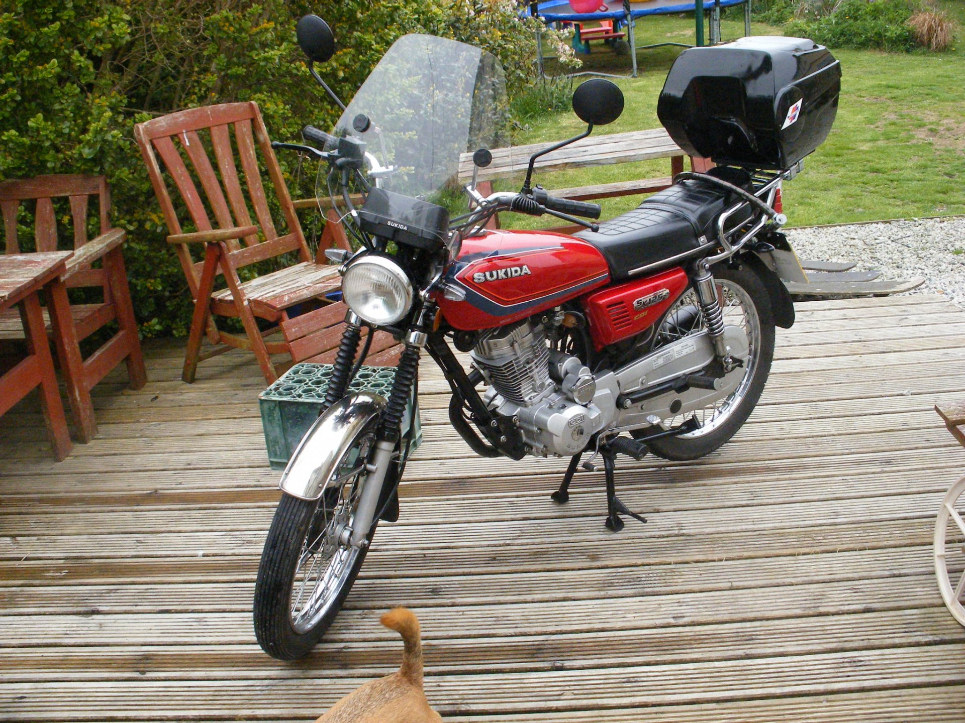 Well there is a bit of background to that for me. Before I had that little Sukida I had three BMW 1000cc. but we had recently got our first 2 kids and money was tight so the BMW's had to go. Of course I still had my riding gear when I bought the Sukida to commute on, thats why I had all the gear and puny wheels. I still have that suit but the trousers are a bit on the tight side now. The Jacket still fits and the boots are up the shed somewhere.