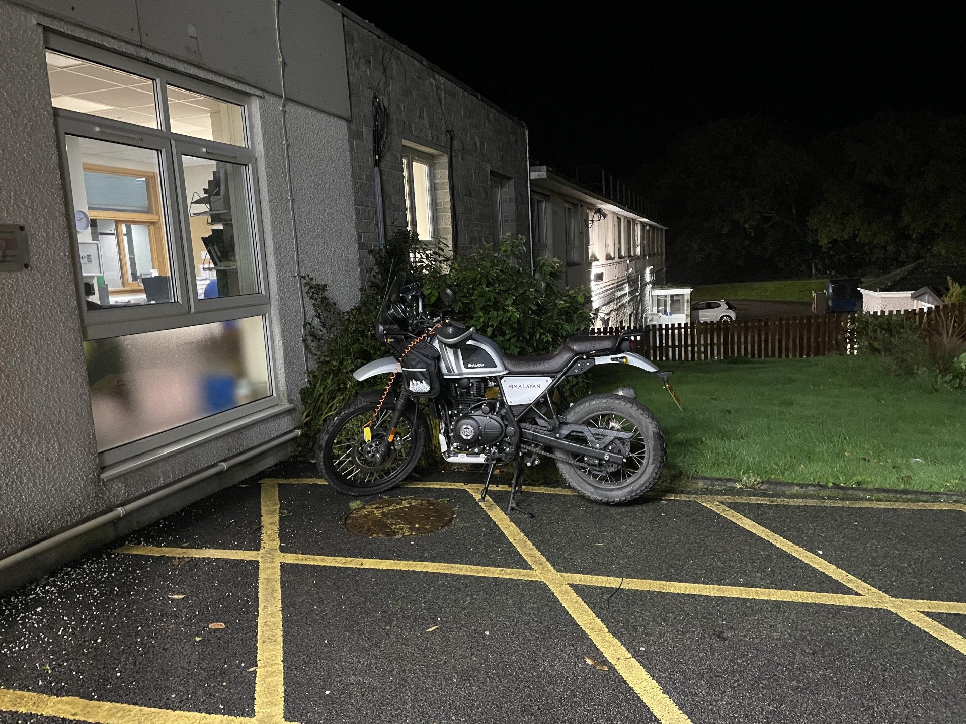 Bleddy cold wet and dark. Gonna have to get some warmer riding gear. Mind you I couldn't have parked the bike any closer to my office.