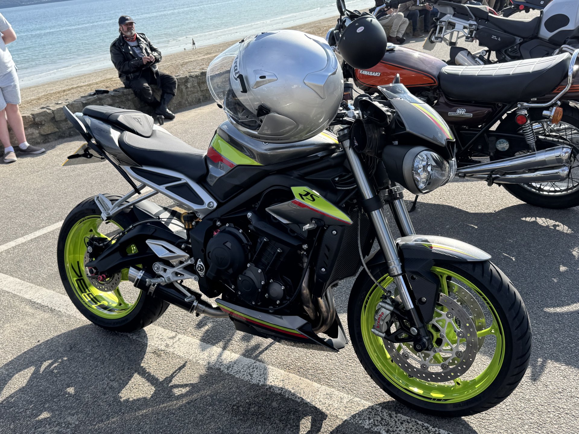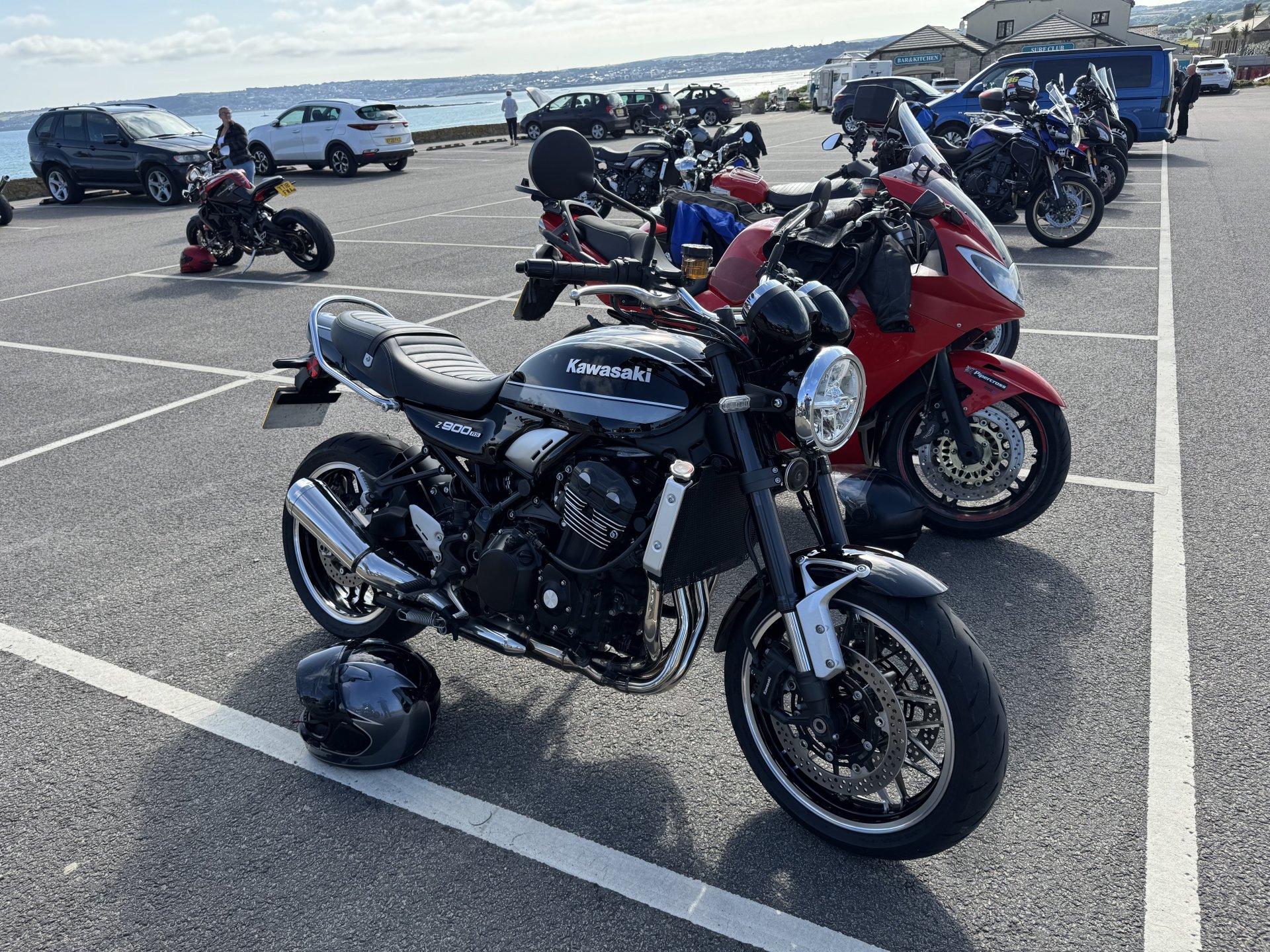 Headed down west again to Marazion bike night with my mate Martyn on his new out of the box Z900RS. Very nice bike I took it easy on the way down as the Z900 had less that 100 miles on it, plus rush hour. Some lovely bikes there tonight, I seem to have mainly focused on Z900’s. Not sure why. I liked the Gold Wing but the MV wasn’t bad either. I did get chatting to a Harley Sportster owner telling me it was the ultimate bike and apparently a fanny magnet He said it was good carrying a pillion too as he had picked up a 17st woman in Camborne last Saturday. I wished him well and moved on, the conversation was getting a bit weird for my liking Lovely backdrop It was good to steched my Hornets legs a bit on the way home as Martyn was happy to push the Z900 a bit more. Also we met another mate down there on his Indian Scout and he rode back with us although I got the feeling he was struggling to keep up. A good change as none of the guys with their old British nails came tonight. Trip stats.