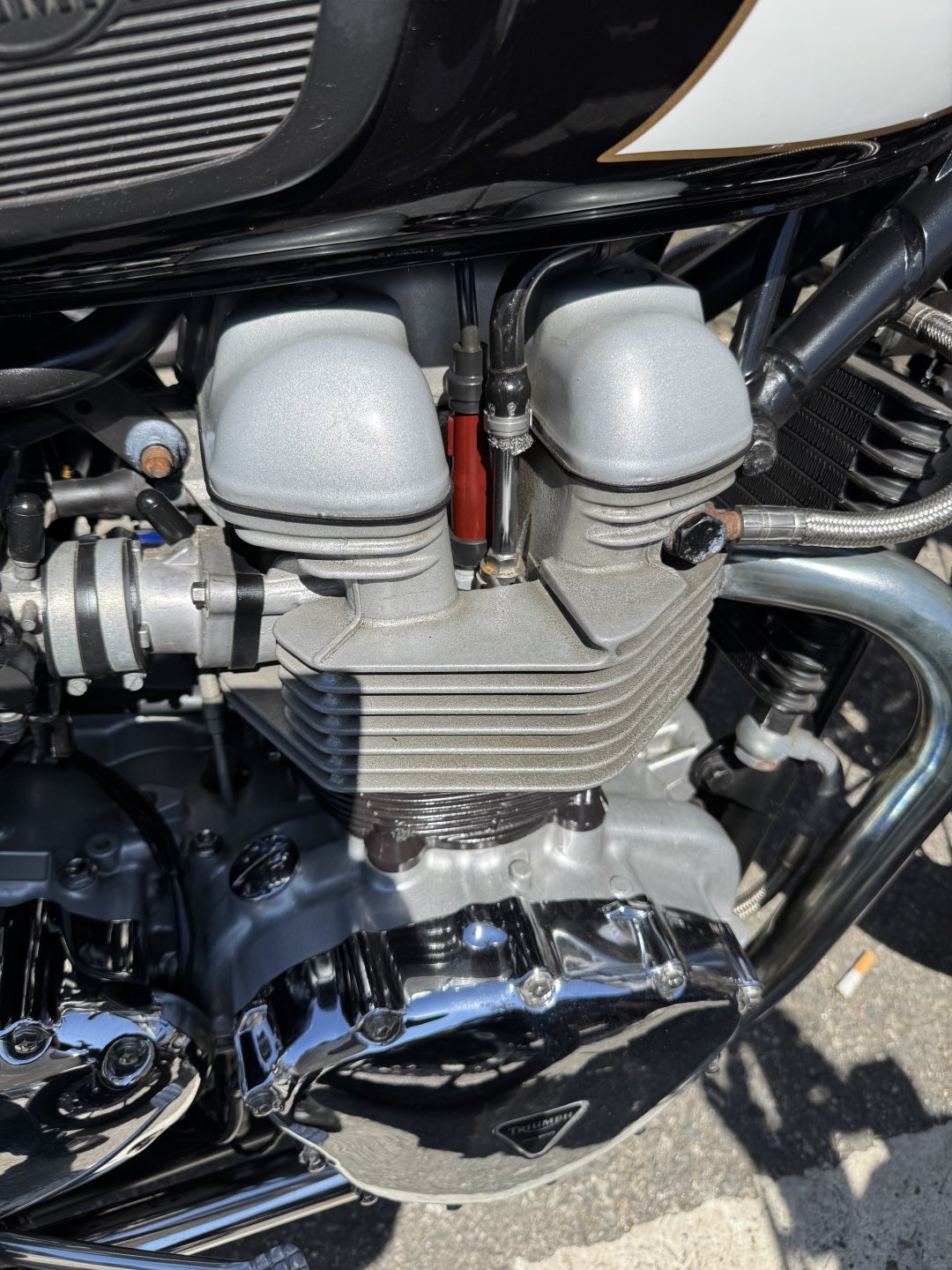 Here’s one for the brains trust. I saw this 05 Bonnie today. What’s going on with the head? There seems to be something bolted in next to the spark plug, anyone know what it’s for? I looked at a different Bonnie of the same vintage and that didn’t have it.