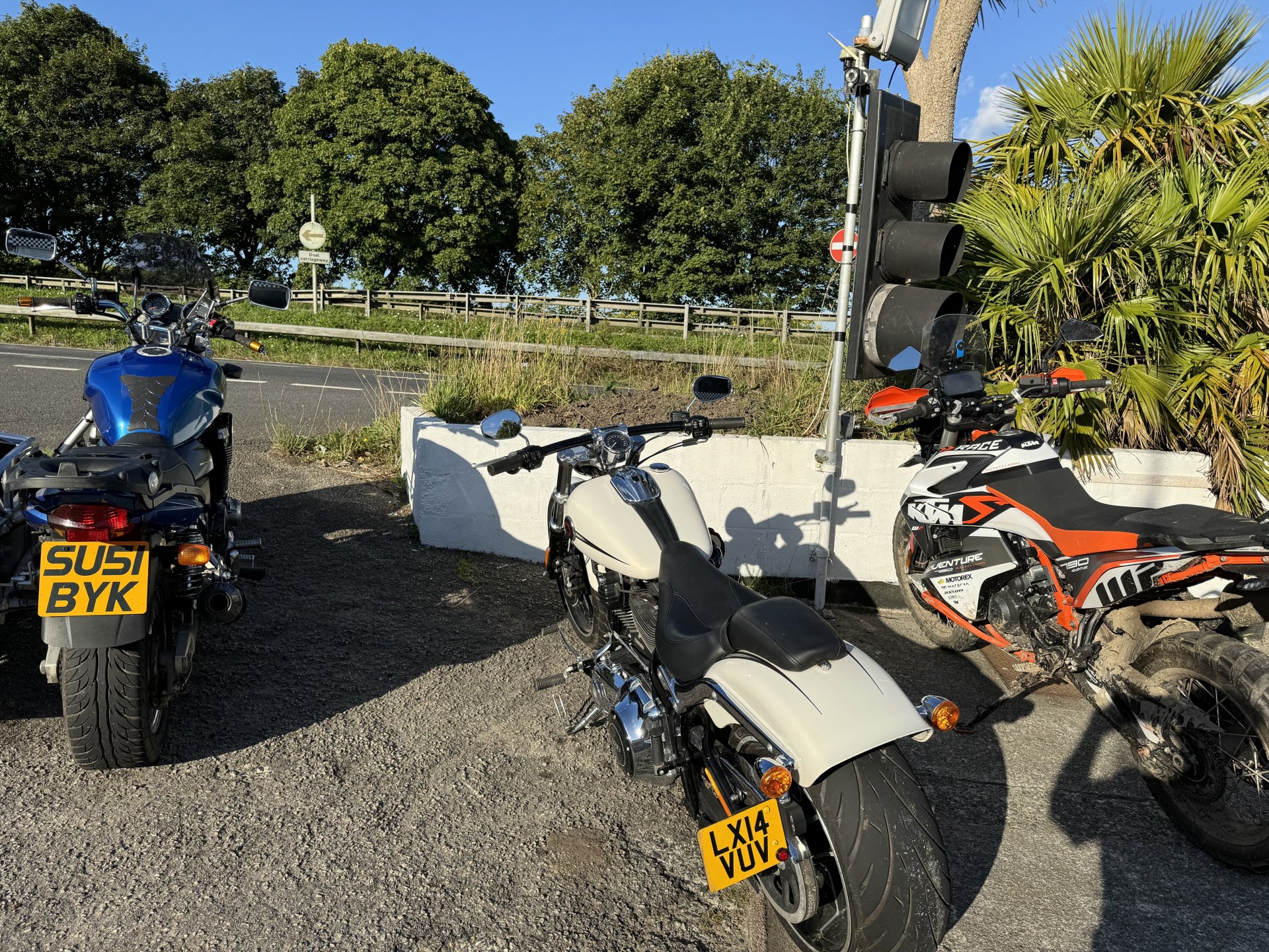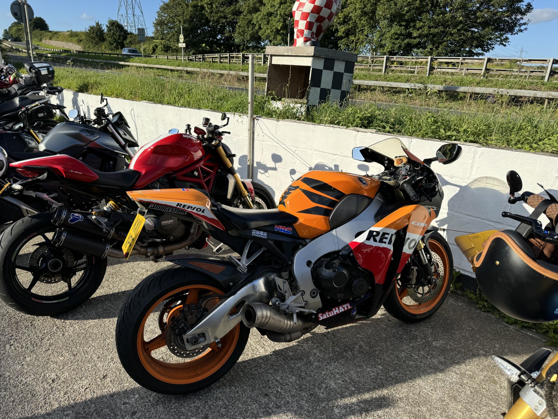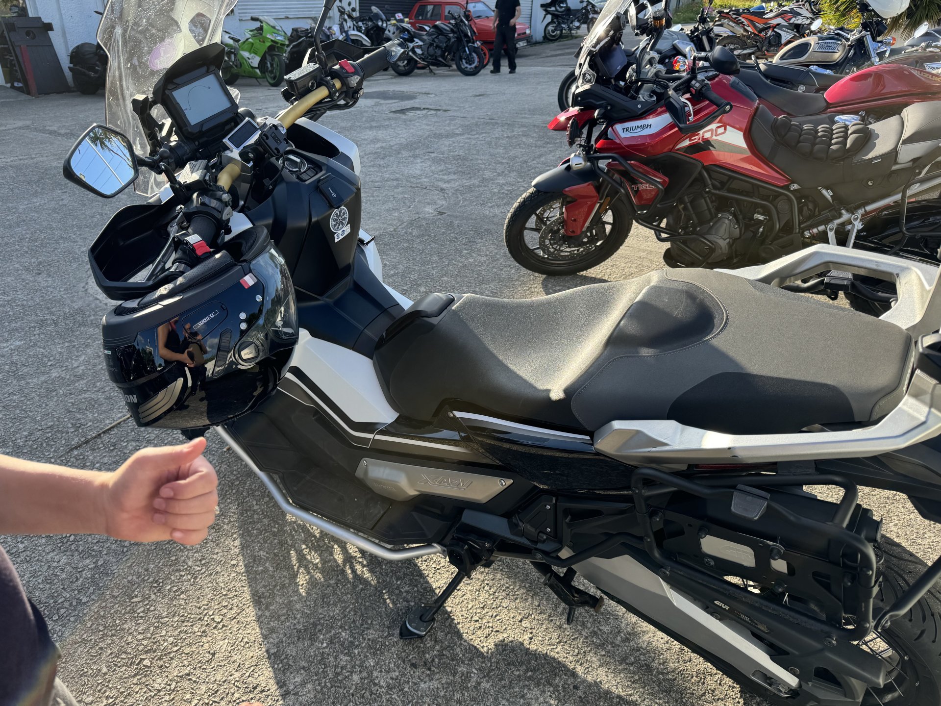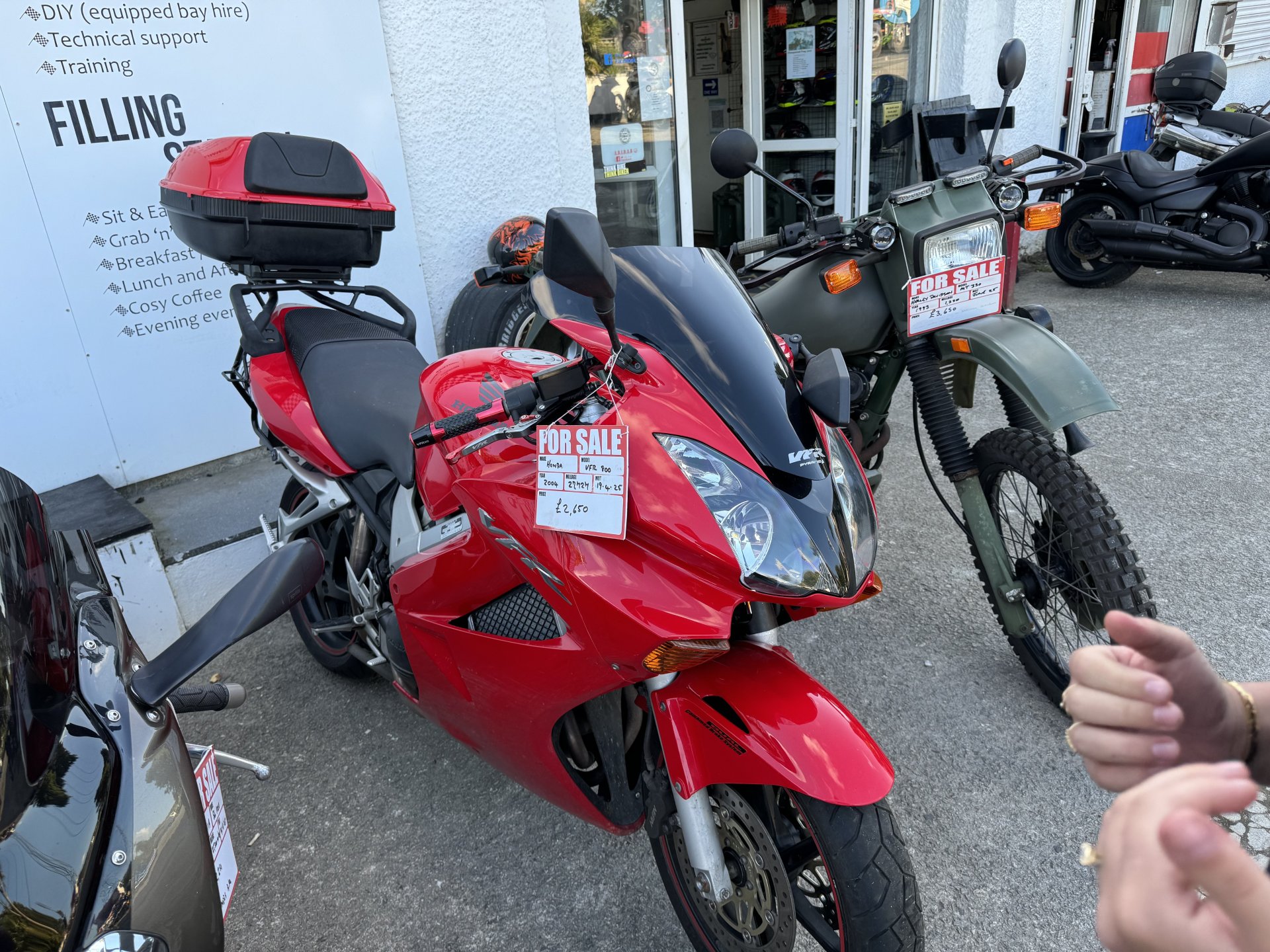 Popped up to Liskeard for chequered flag bike night. Only stayed long enough for a coffee and a quick. Chat only about 15 bikes when we were there but more were pulling in as we left. Couple of Vicars turned up with big white crucifixes on their backs. Load of women from Plymouth behaving like arseholes all drama and fuss. Few normal guys but don’t know if I will bother again. Of course no show without punch performing Nice Panzer, I like that, especially that it is single seated Cool blade, but had to explain to Shadow it was a Honda not a Repsol. Fantic 700 Vicars ADV750 scoot CBR 650, I could see one of those in Shadow’s future I didn’t mind the red VFR. The hands are Shadows, she was sticking with me and dancing, her ADHD was kicking in because of the noise. When the biker chicks turned up with their pantomime I took Shadow home as their carry on spiked her anxiety and she got really stressed. Not used to adults behaving like that.