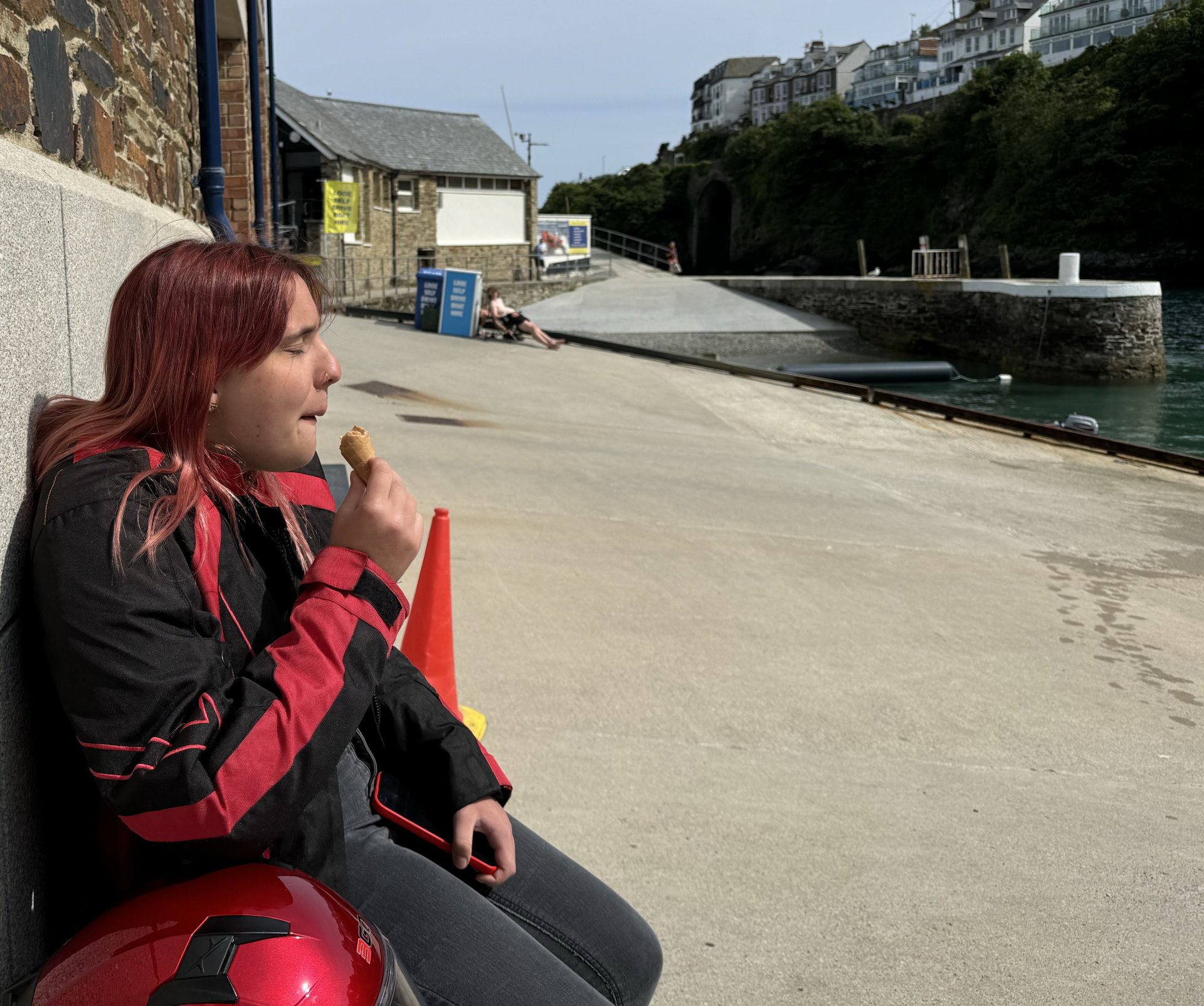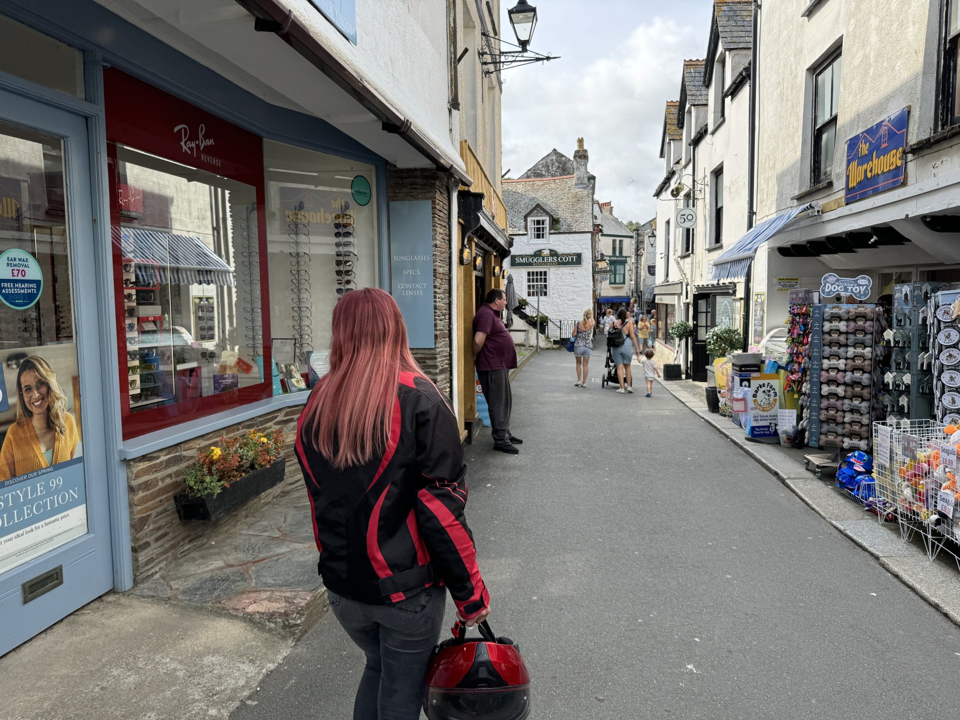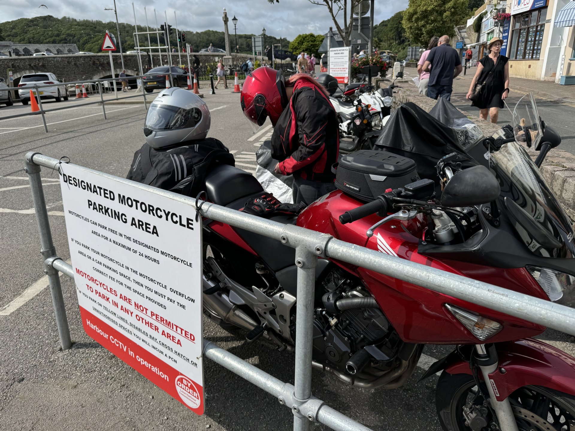 My youngest was completely bent out of shape today because I gave her sister a driving lesson. So I took the green eyed monster out for a ride to placate her. Plus it was an excuse to go for an ice cream. I rode out to Fowey across to join the A390 then Down to Lostwithiel then on through West Taphouse then took the Looe turning just before Middle Taphouse. The followed 10 miles of quick B roads to Plynt, bloody glorious. From Plynt on to Polperro Cross and down into Looe. Free parking for bikes was packed but we squeezed in. We walked on down through the fish quays to the Lifeboat House and stopped for my Shadow to eat her ice cream. Lots of lobster people around. Walking back through Looe Main Street Shadow made some new friends We came back via the A30 the A389. Had a minor tussle with Fire Blade but that was only going one way much to Shadows disgust. Twas a good couple of hours though and cracked the first 1000 miles on the CBF.