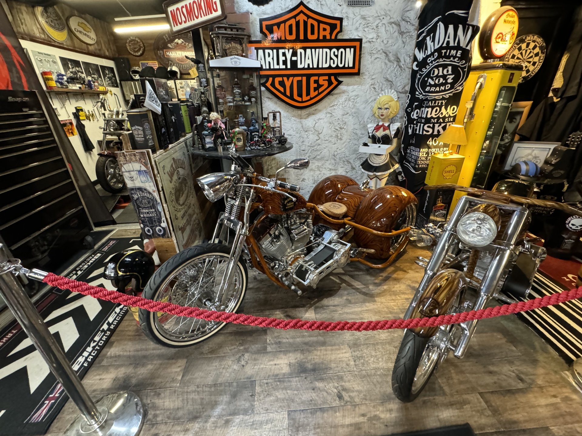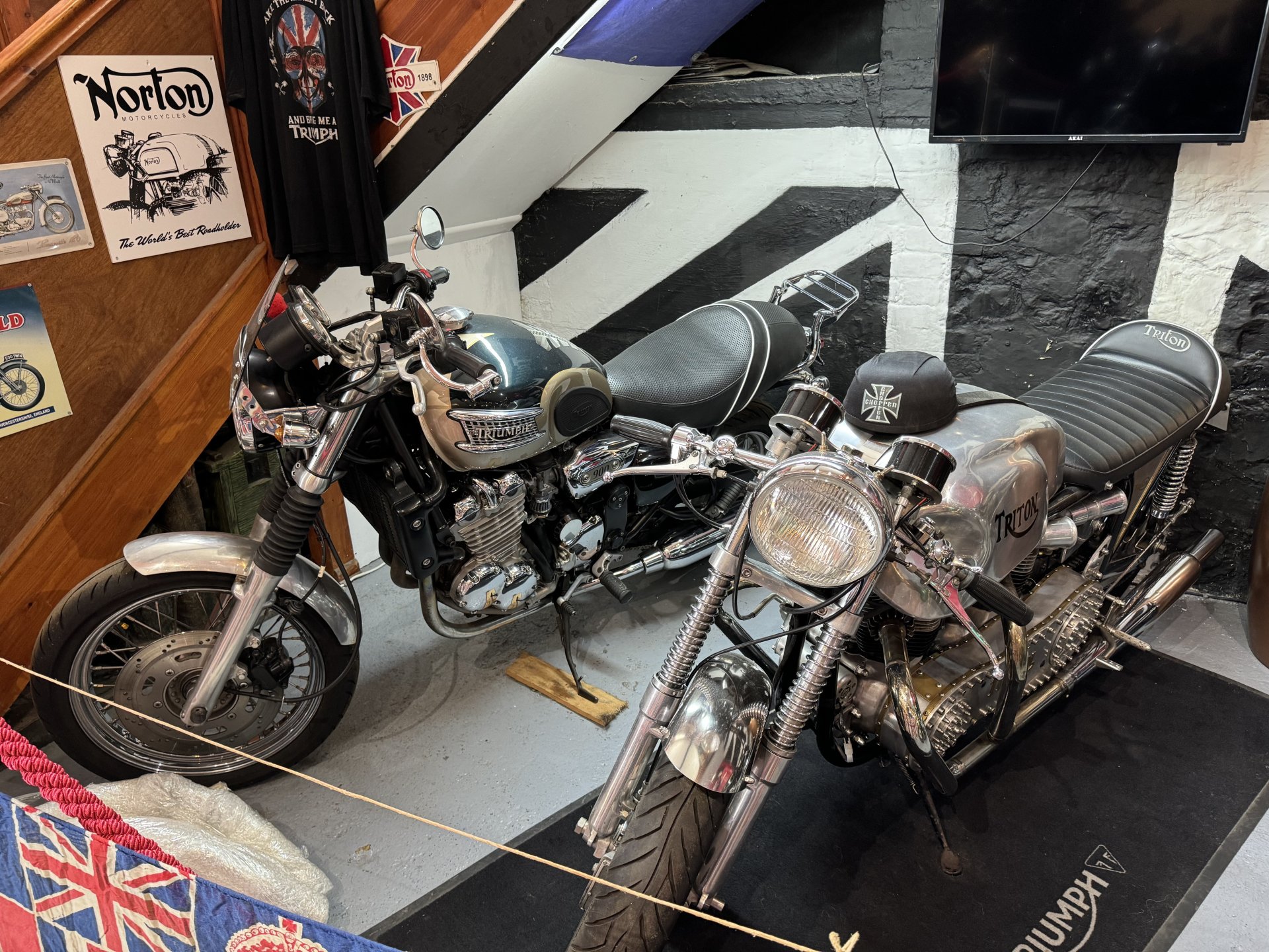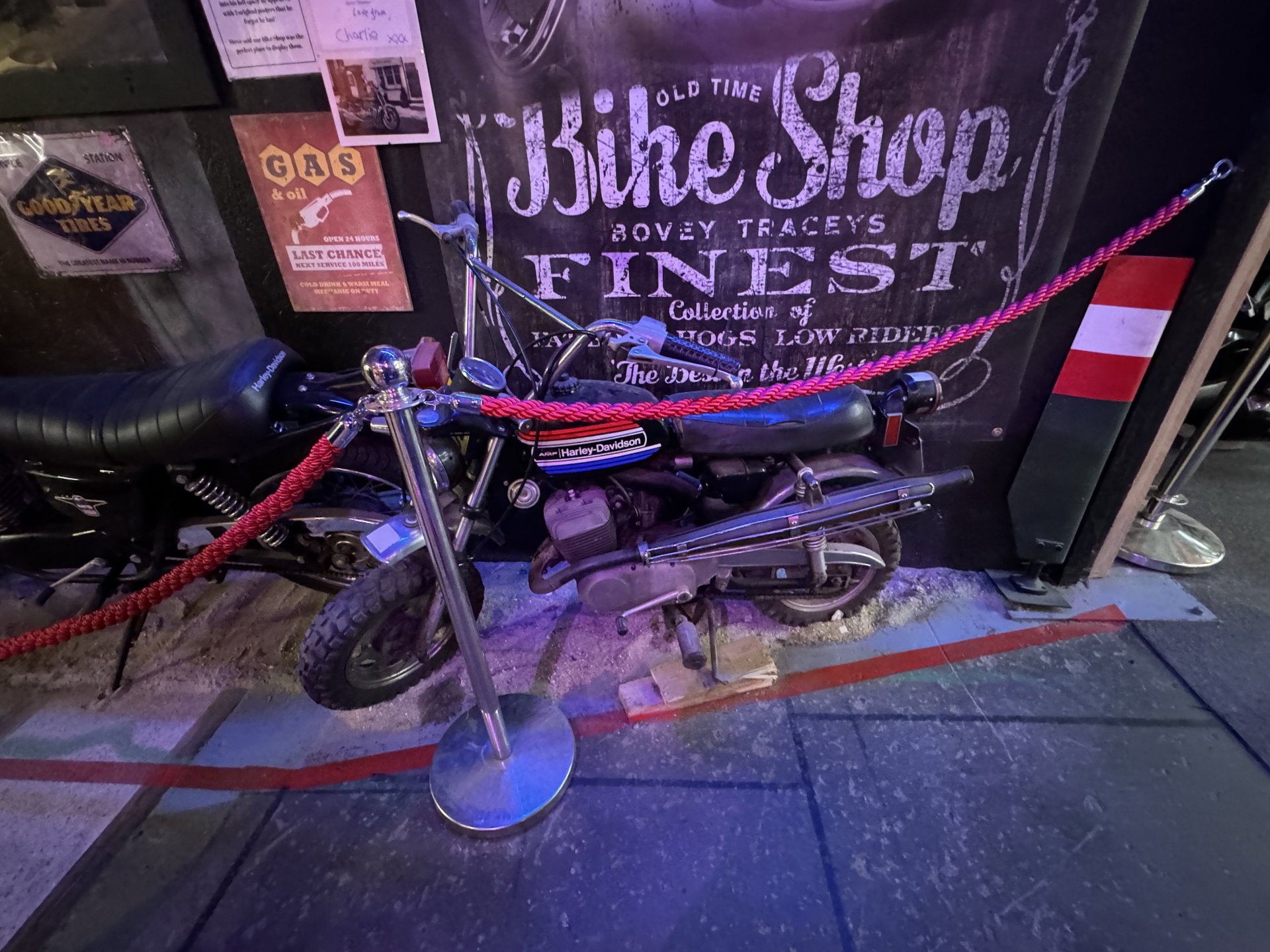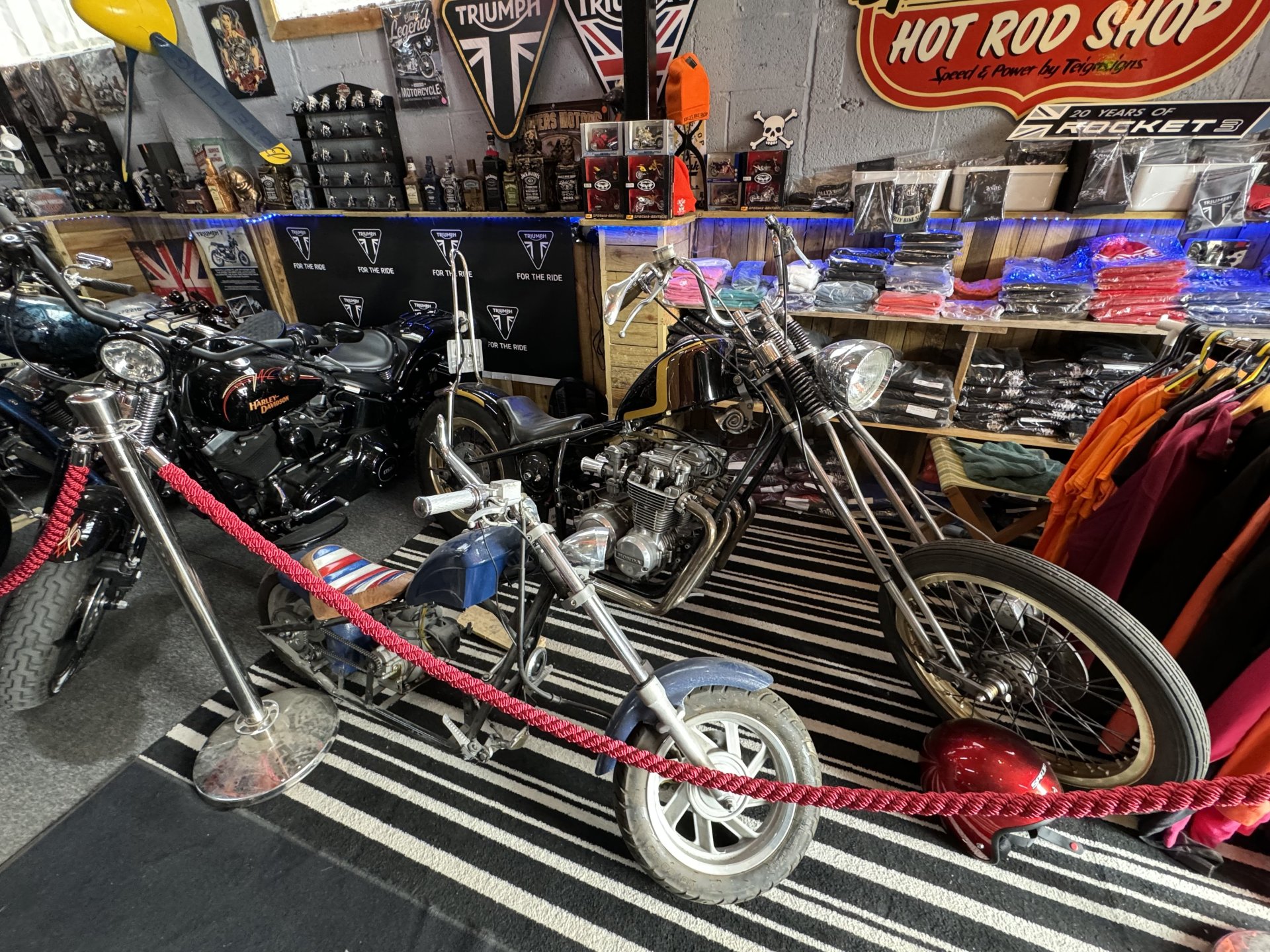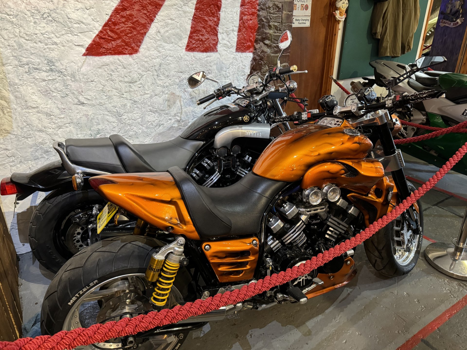 I wanted to head off early to go to Jollys Bike Shop in Bovey Tracey this morning. But of course life is never that easy. By the time I walked the dog took number one daughter to the stables and got Shadow out of her pit we didn’t get away until 11:00. Nothing much on the way out over to Bodmin to pick up the A30 to Sourton. Cruised at 80 mph most of the way apart from a couple of jams for breakdowns, but we filtered and never actually had to stop. I am surprised how accommodating all the drivers were making room for us to filter through. Unexpected. Anyway once we got to Sourton it was time for fuel. Of course by the time I had paid she had taken residence moaning how much more comfortable my seat was. Anyway with a full tank and 25 miles to go I used Google maps for voice directions through my headset. Now let me tell you now Google was not on form today, what should have been 25 miles turned into 30 with a couple of farm tracks with foot high grass in the middle thrown in. In fact at one point it looked really dodgy. Anyway eventually we made it to Jolly’s. We had lunch there and it was lovely and actually pretty reasonable. £12 to feed both of us. I think Jolly’s main business is as a prop shop, but they have a stunning collection of bikes to. Even got a Gandalf. And a spooky ghost encounter which freaked Shadow out Much darker than the photo and she actually wanted to hold my hand, first time in years Some bikes Stunning custom’s, real quality workmanship if a bit gay according to Shadow Yet more Harleys. A Honda After we did Jolly’s which we both really liked, I headed over Dartmoor which was absolutely stunning. Never fails to impress. Next stop was Princeton with its Prison. Still a stunning town despite the HMP. Big centre for walkers , some good pubs. Been there singing a few times. After Princeton on to Tavistock, Gunnislake, Callington, Liskeard, Lostwithiel and home. Trip stats, 6.5 hours and 145 miles We did stop on Dartmoor for an ice cream and I did laugh at Shadow. She went up to order her ice cream and lost the ability to speak to the rather handsome young man serving. I had to step in as she went to pieces Of course she denied it when I told her mother when we got home.
