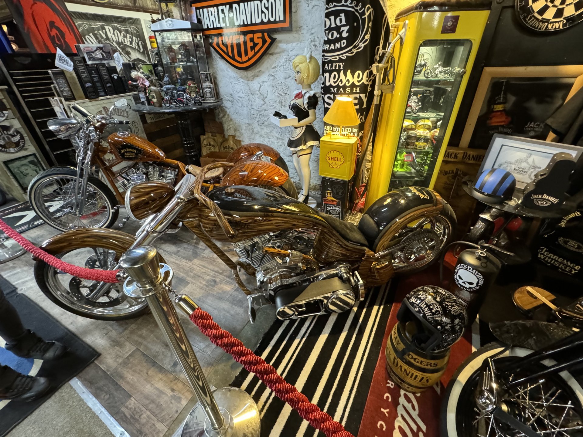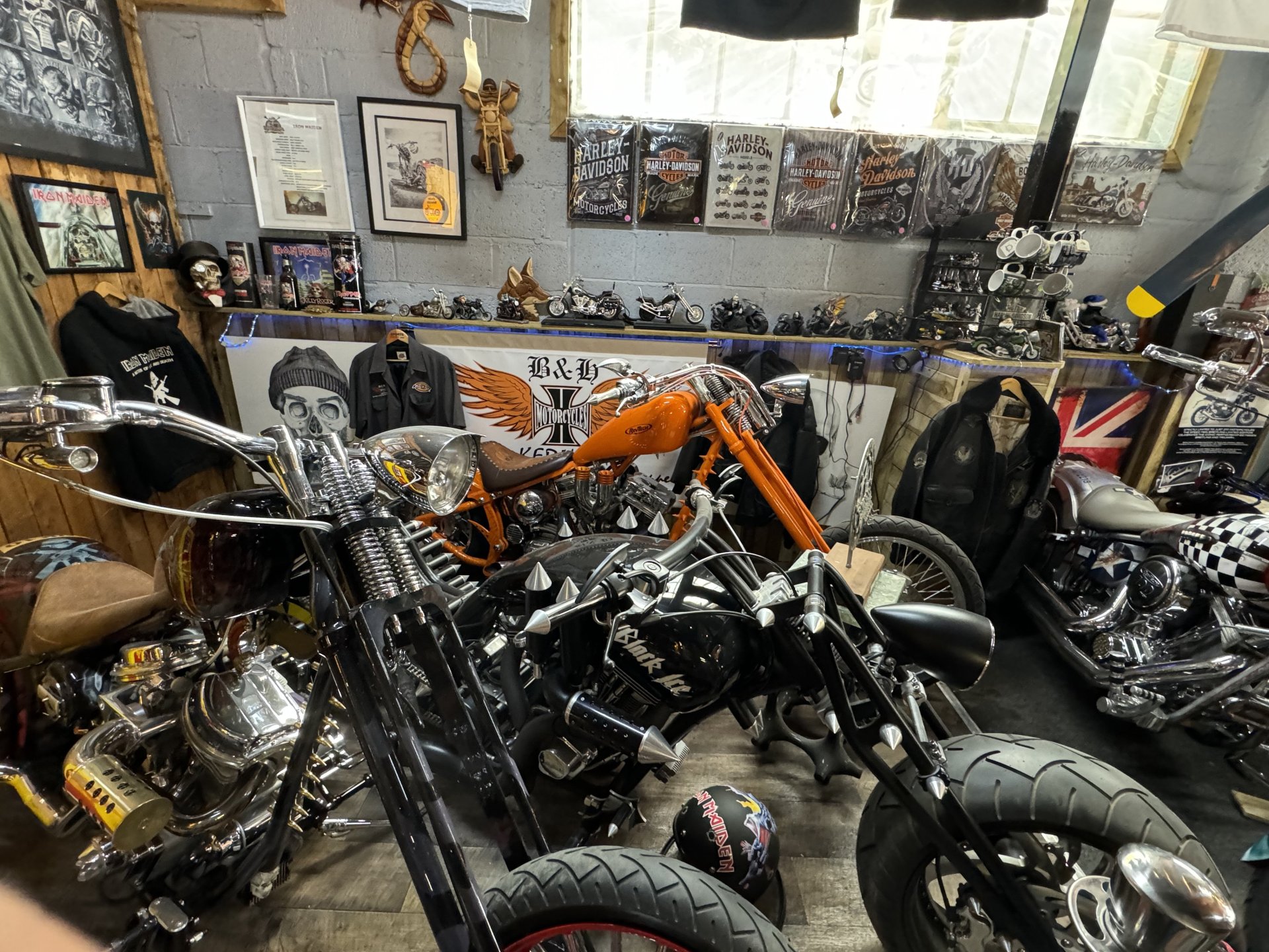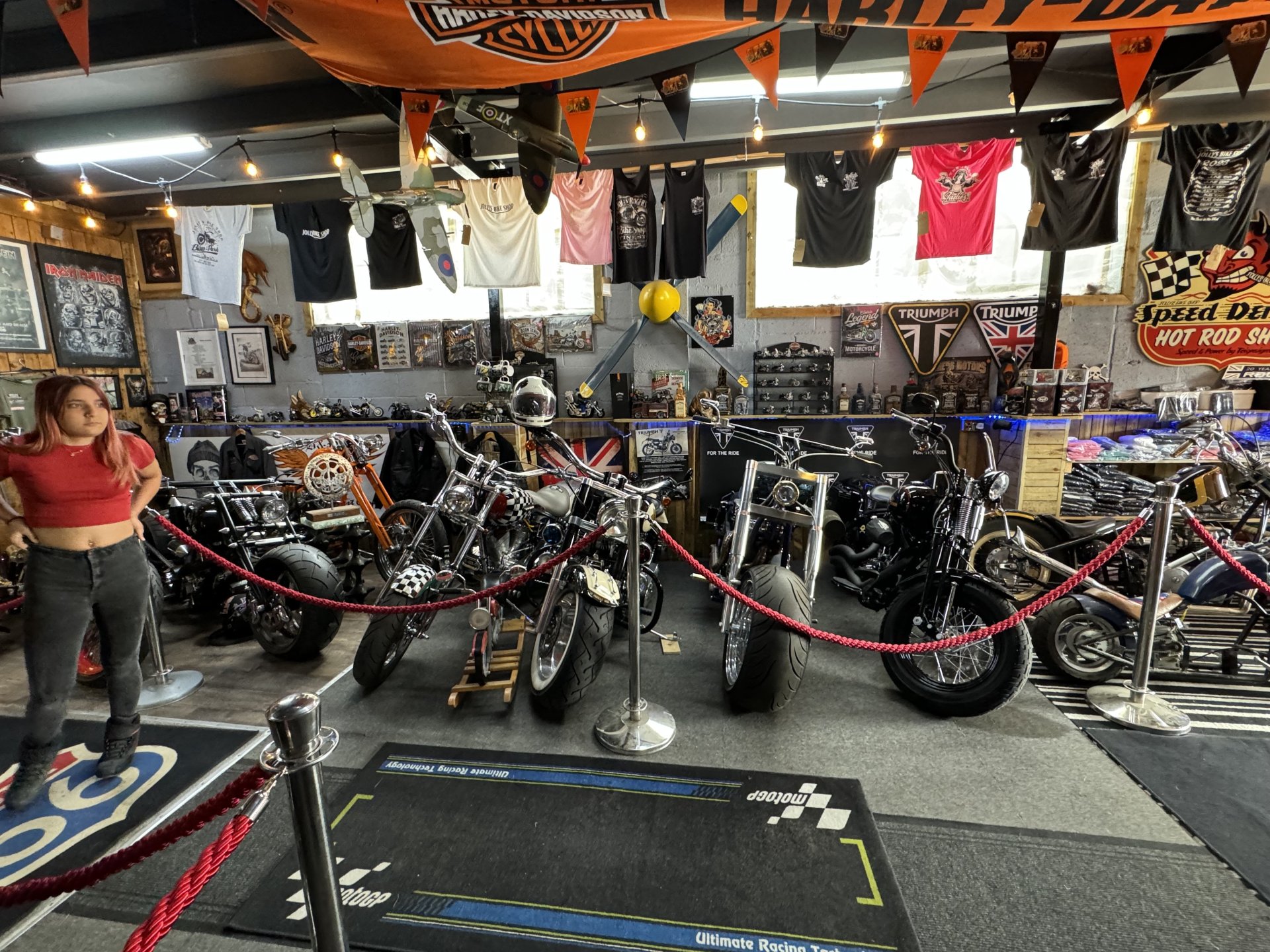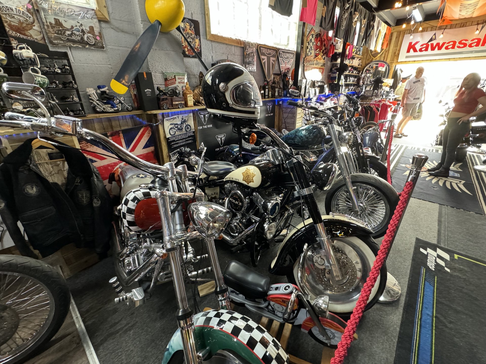 I wanted to head off early to go to Jollys Bike Shop in Bovey Tracey this morning. But of course life is never that easy. By the time I walked the dog took number one daughter to the stables and got Shadow out of her pit we didn’t get away until 11:00. Nothing much on the way out over to Bodmin to pick up the A30 to Sourton. Cruised at 80 mph most of the way apart from a couple of jams for breakdowns, but we filtered and never actually had to stop. I am surprised how accommodating all the drivers were making room for us to filter through. Unexpected. Anyway once we got to Sourton it was time for fuel. Of course by the time I had paid she had taken residence moaning how much more comfortable my seat was. Anyway with a full tank and 25 miles to go I used Google maps for voice directions through my headset. Now let me tell you now Google was not on form today, what should have been 25 miles turned into 30 with a couple of farm tracks with foot high grass in the middle thrown in. In fact at one point it looked really dodgy. Anyway eventually we made it to Jolly’s. We had lunch there and it was lovely and actually pretty reasonable. £12 to feed both of us. I think Jolly’s main business is as a prop shop, but they have a stunning collection of bikes to. Even got a Gandalf. And a spooky ghost encounter which freaked Shadow out Much darker than the photo and she actually wanted to hold my hand, first time in years Some bikes Stunning custom’s, real quality workmanship if a bit gay according to Shadow Yet more Harleys. A Honda After we did Jolly’s which we both really liked, I headed over Dartmoor which was absolutely stunning. Never fails to impress. Next stop was Princeton with its Prison. Still a stunning town despite the HMP. Big centre for walkers , some good pubs. Been there singing a few times. After Princeton on to Tavistock, Gunnislake, Callington, Liskeard, Lostwithiel and home. Trip stats, 6.5 hours and 145 miles We did stop on Dartmoor for an ice cream and I did laugh at Shadow. She went up to order her ice cream and lost the ability to speak to the rather handsome young man serving. I had to step in as she went to pieces Of course she denied it when I told her mother when we got home.