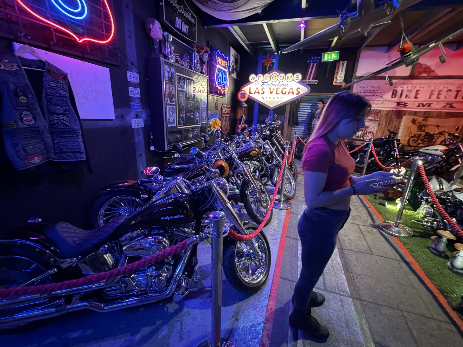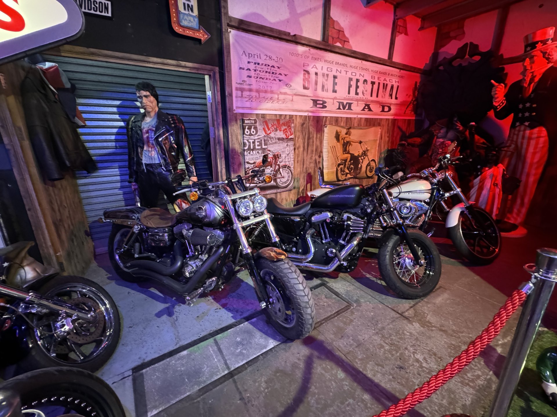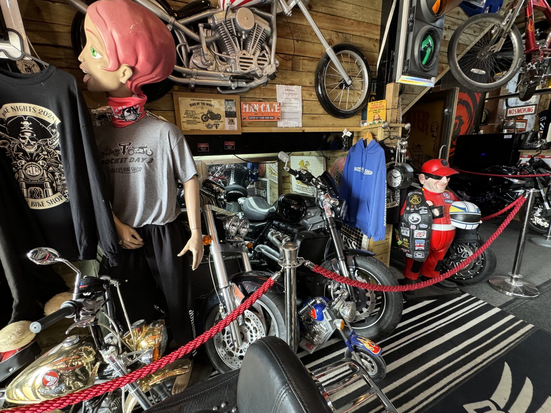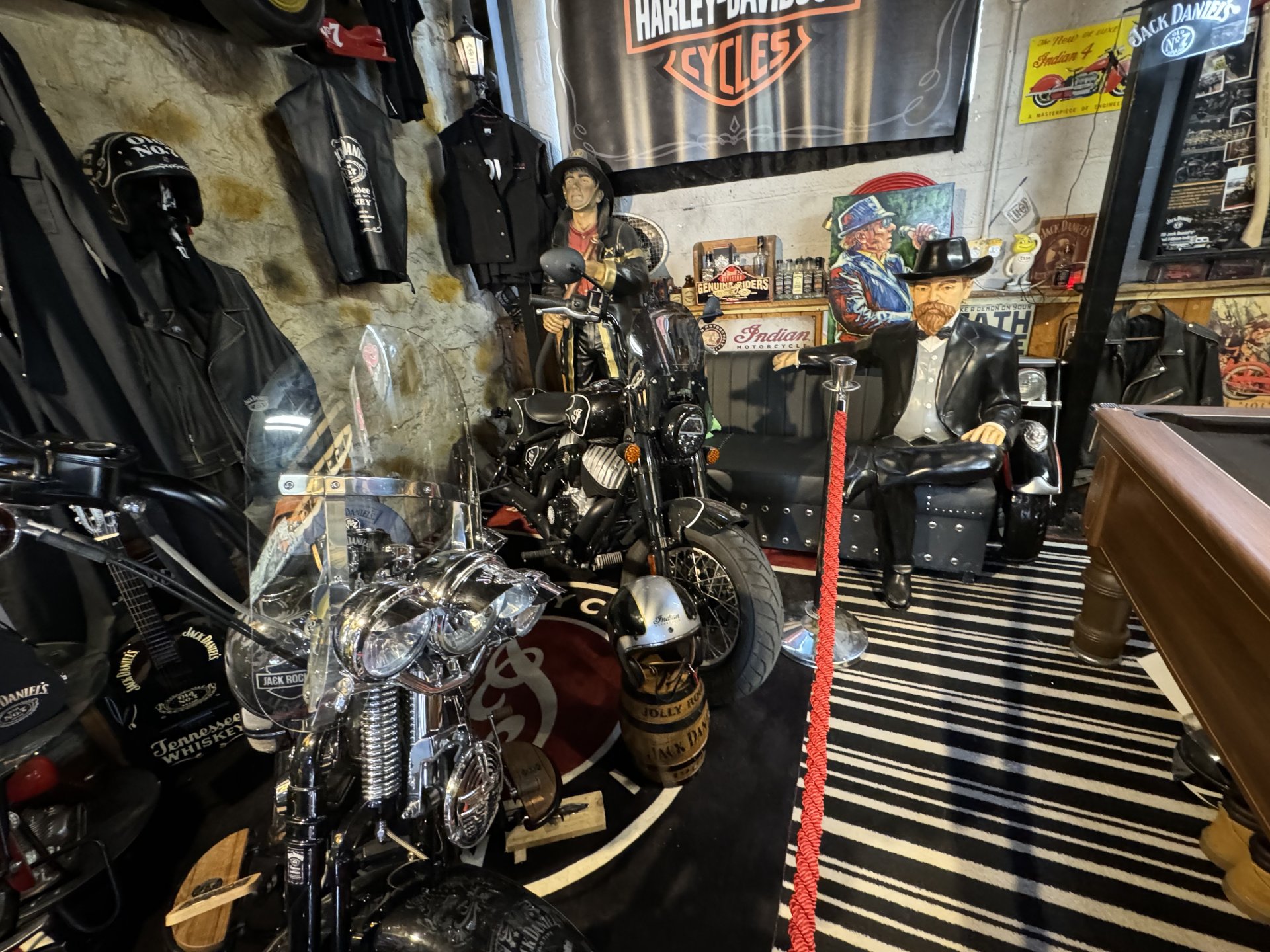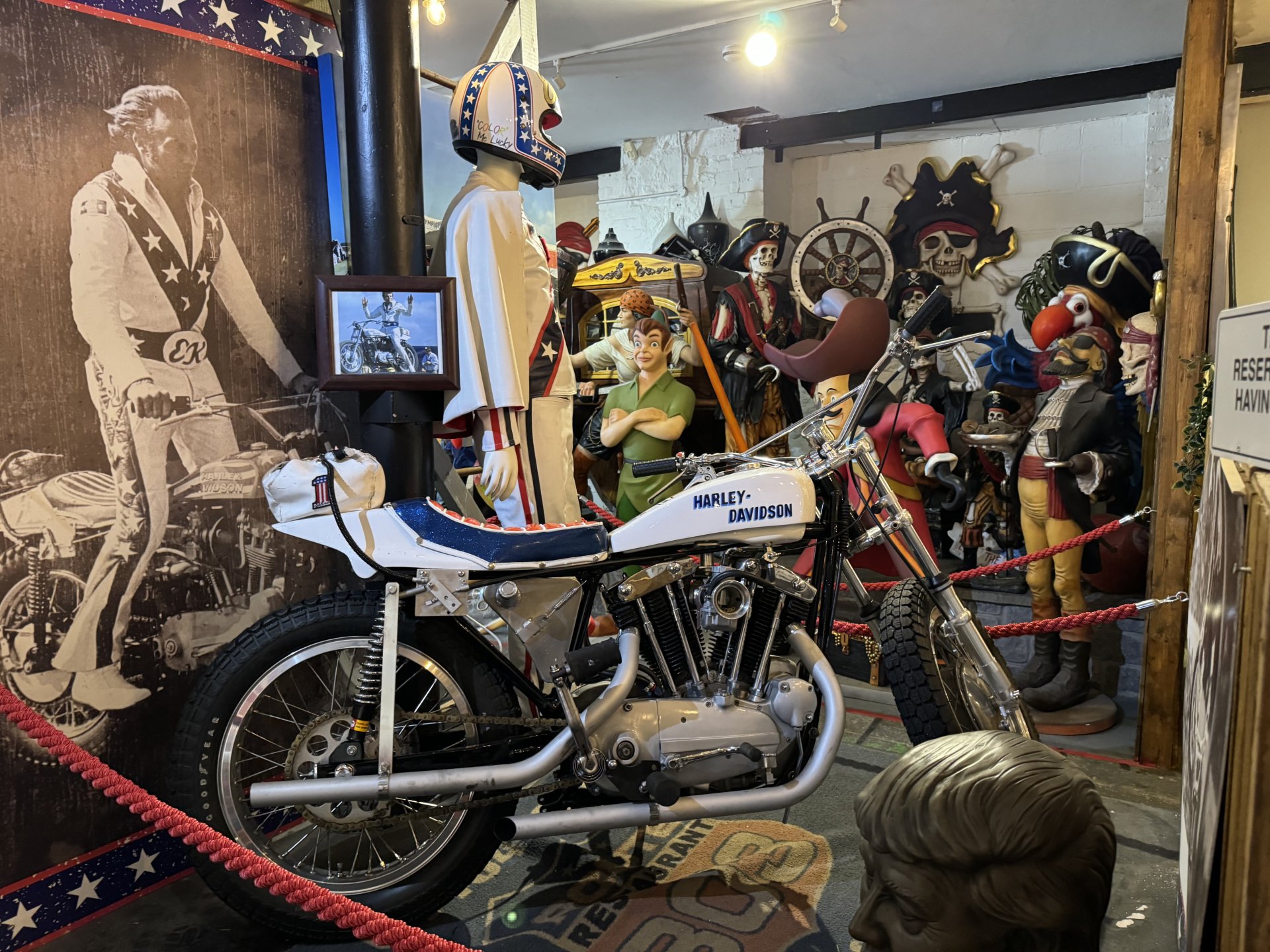 I wanted to head off early to go to Jollys Bike Shop in Bovey Tracey this morning. But of course life is never that easy. By the time I walked the dog took number one daughter to the stables and got Shadow out of her pit we didn’t get away until 11:00. Nothing much on the way out over to Bodmin to pick up the A30 to Sourton. Cruised at 80 mph most of the way apart from a couple of jams for breakdowns, but we filtered and never actually had to stop. I am surprised how accommodating all the drivers were making room for us to filter through. Unexpected. Anyway once we got to Sourton it was time for fuel. Of course by the time I had paid she had taken residence moaning how much more comfortable my seat was. Anyway with a full tank and 25 miles to go I used Google maps for voice directions through my headset. Now let me tell you now Google was not on form today, what should have been 25 miles turned into 30 with a couple of farm tracks with foot high grass in the middle thrown in. In fact at one point it looked really dodgy. Anyway eventually we made it to Jolly’s. We had lunch there and it was lovely and actually pretty reasonable. £12 to feed both of us. I think Jolly’s main business is as a prop shop, but they have a stunning collection of bikes to. Even got a Gandalf. And a spooky ghost encounter which freaked Shadow out Much darker than the photo and she actually wanted to hold my hand, first time in years Some bikes Stunning custom’s, real quality workmanship if a bit gay according to Shadow Yet more Harleys. A Honda After we did Jolly’s which we both really liked, I headed over Dartmoor which was absolutely stunning. Never fails to impress. Next stop was Princeton with its Prison. Still a stunning town despite the HMP. Big centre for walkers , some good pubs. Been there singing a few times. After Princeton on to Tavistock, Gunnislake, Callington, Liskeard, Lostwithiel and home. Trip stats, 6.5 hours and 145 miles We did stop on Dartmoor for an ice cream and I did laugh at Shadow. She went up to order her ice cream and lost the ability to speak to the rather handsome young man serving. I had to step in as she went to pieces Of course she denied it when I told her mother when we got home.