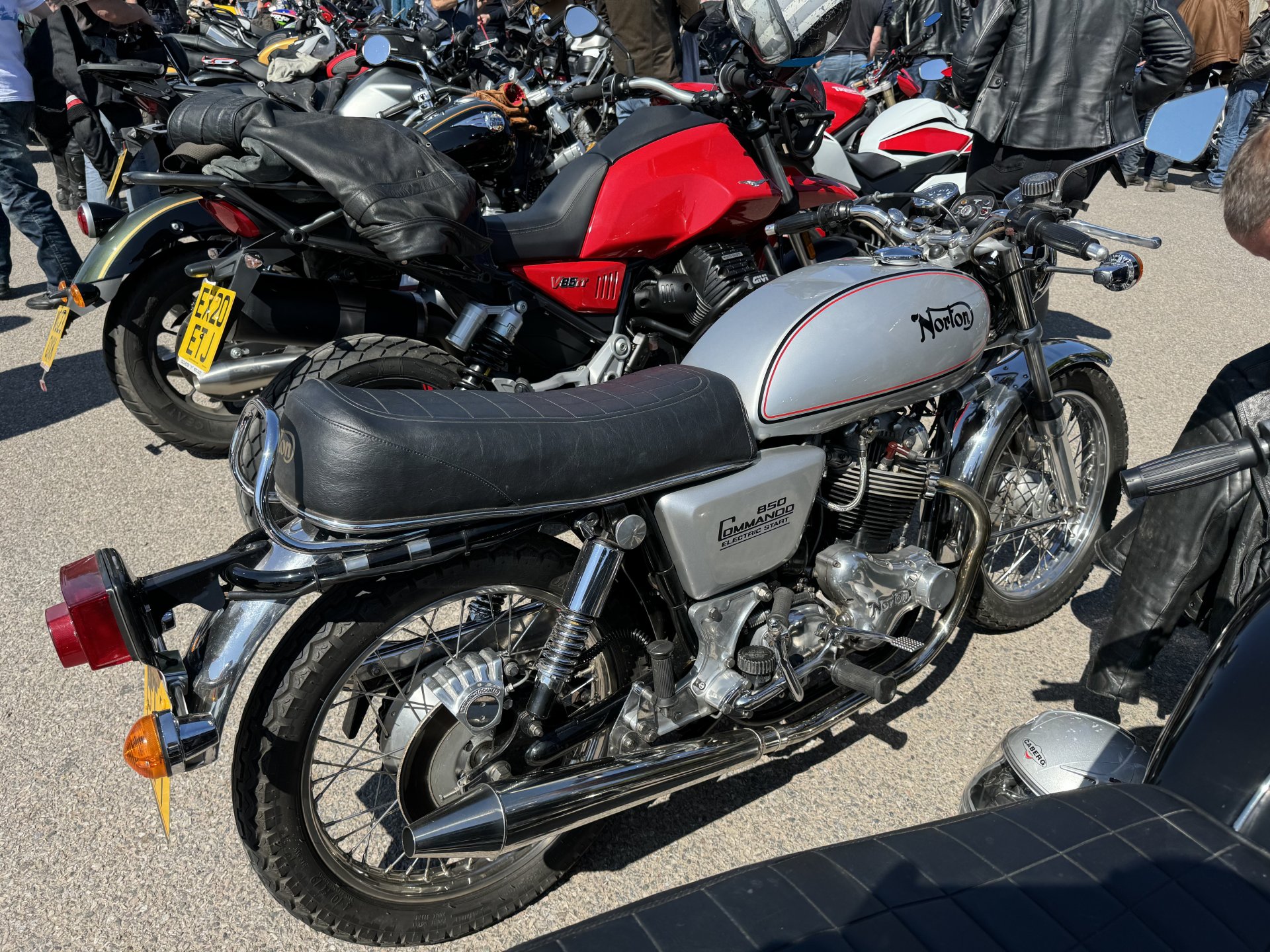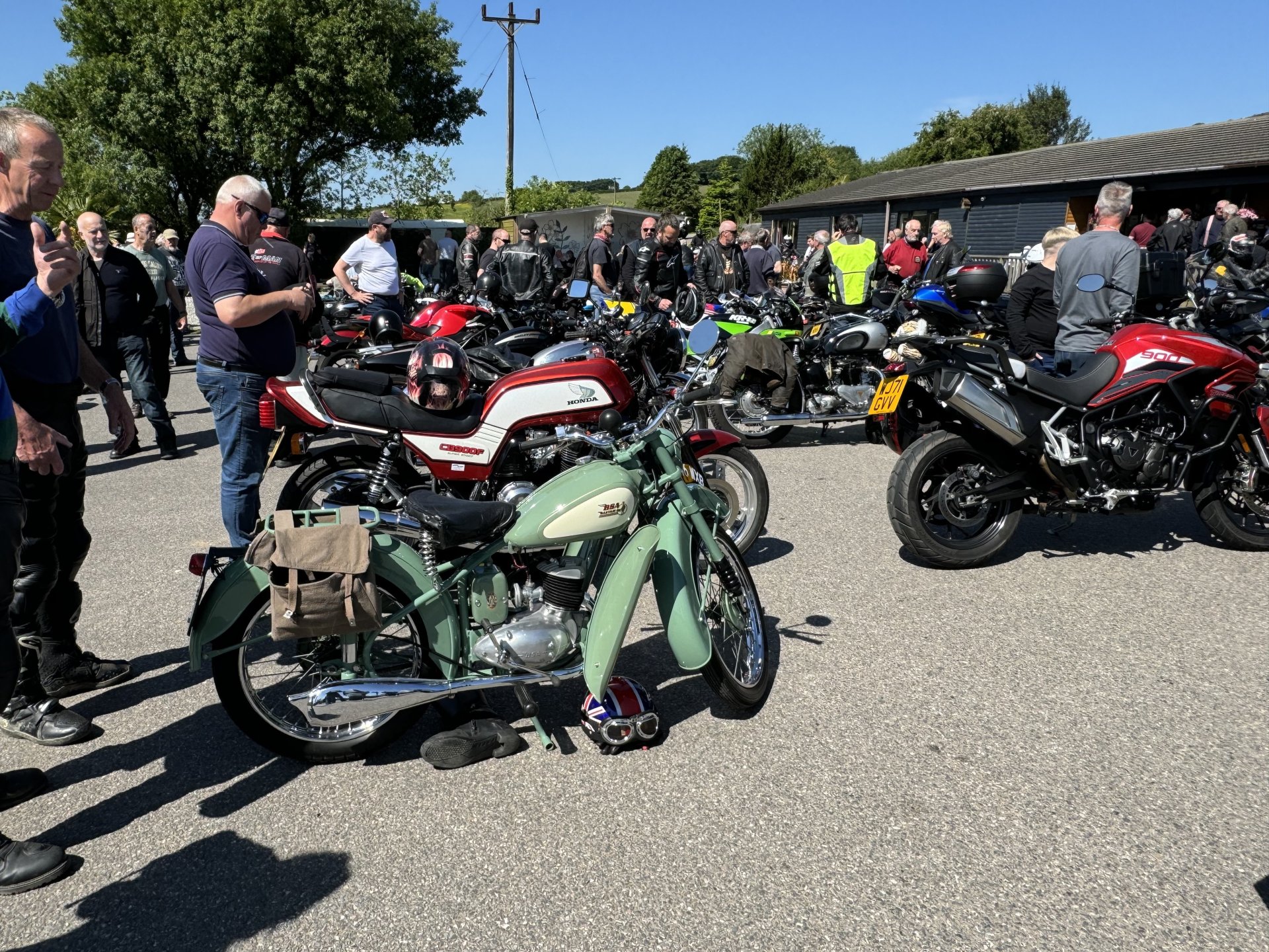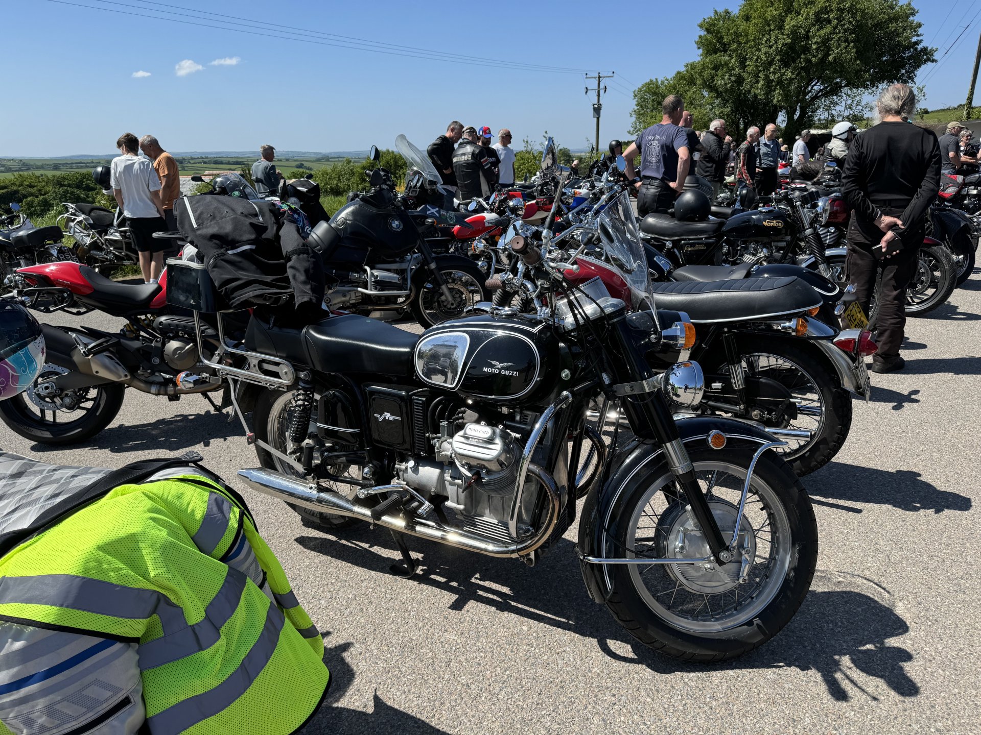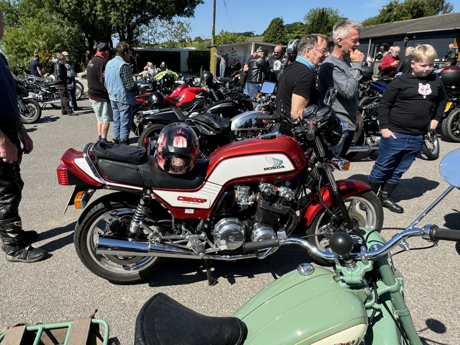 Been working overnight Friday and Saturday plus again tonight Sunday, not moaning but it does make getting out on the bike more difficult as I do have to sleep at some point. Anyway finished work at 8:00 am in Launceston getting it home, changed and my bike out and up at 4 Turnings garage for 9:00 am to meet up and go to Kit Hill this morning. Bit of a rush but made it. 6 of us today, me and Hornet, Steve and Super Meteor, Martyn and V85s, Gary one and 1974 Bonnie, Bob and 1975 Commando, Gary two and 1200 Sportster, Chris and 900 Triumph Scrambler. We made 3 miles and Bob’s Commando died, made another mile and it died again then again but started the fourth time. This time after an Italian tune up it ran fine for the rest of the trip up the Kit Hill. Don’t know about the trip back as I headed home before the rest to sleep at midday. Much as I think his Commando is the mutts nuts that there is why I haven’t got one. Fuck that. It’s around 30 miles to Kit Hill, it was a great run in beautiful weather. Loads of bikes out and about. Bimbletastic It seemed to be Commando and Brit bike in general day today. Some really nice stuff there, loads of UJMs, Harleys, Indians and even a couple of Himalayan’s. Not one chinky bike though Bob’s ‘Bastard Commando’ his term not mine The sound this made was awesome I know they aren’t a thing any more but I like the look of that Victory Overflow parking Triple Brick, I nearly bought one of those back in the day, in fact still have a hankering. I always thought they were small back in then but I suppose my perspective has changed Old a new Bonnie’s side by side, old Bonnie for looks for me. If it were my money it would be the newer bike don’t want the vibes Lovely old Honda Yes please Bantam D1, belongs to a friend’s brother.