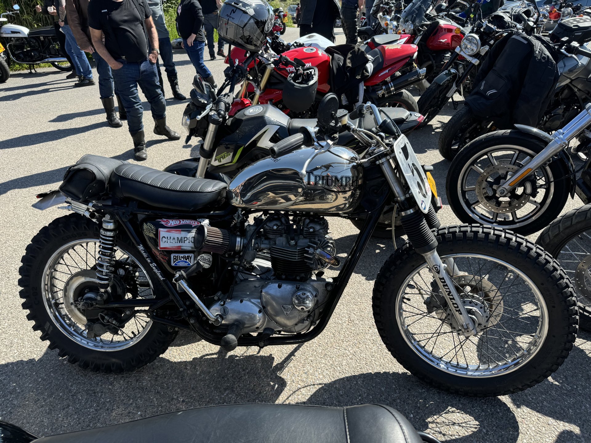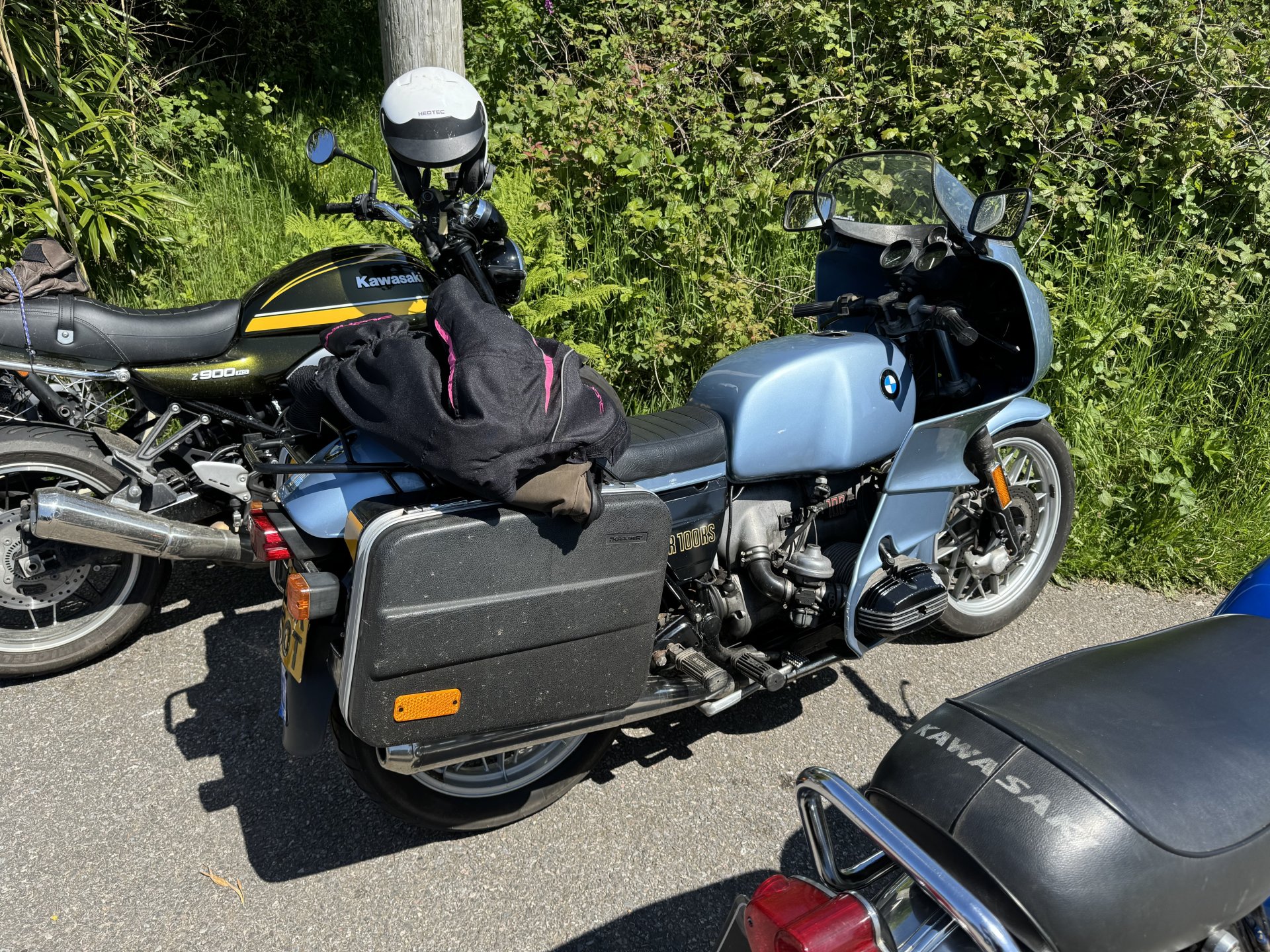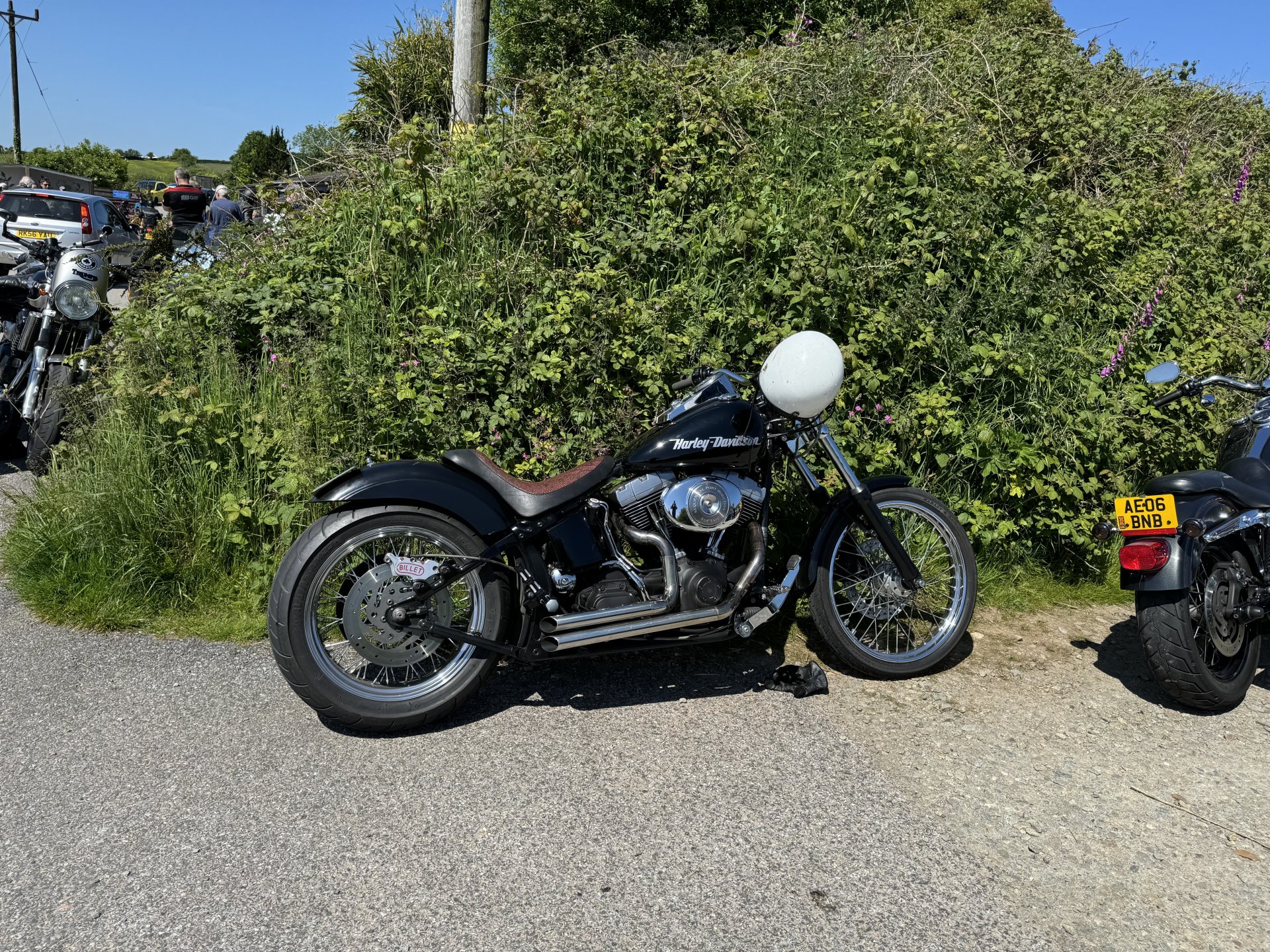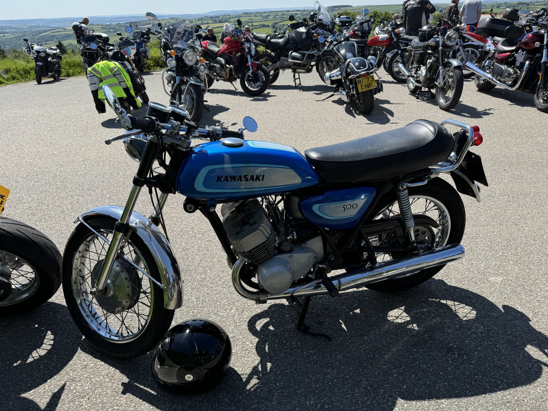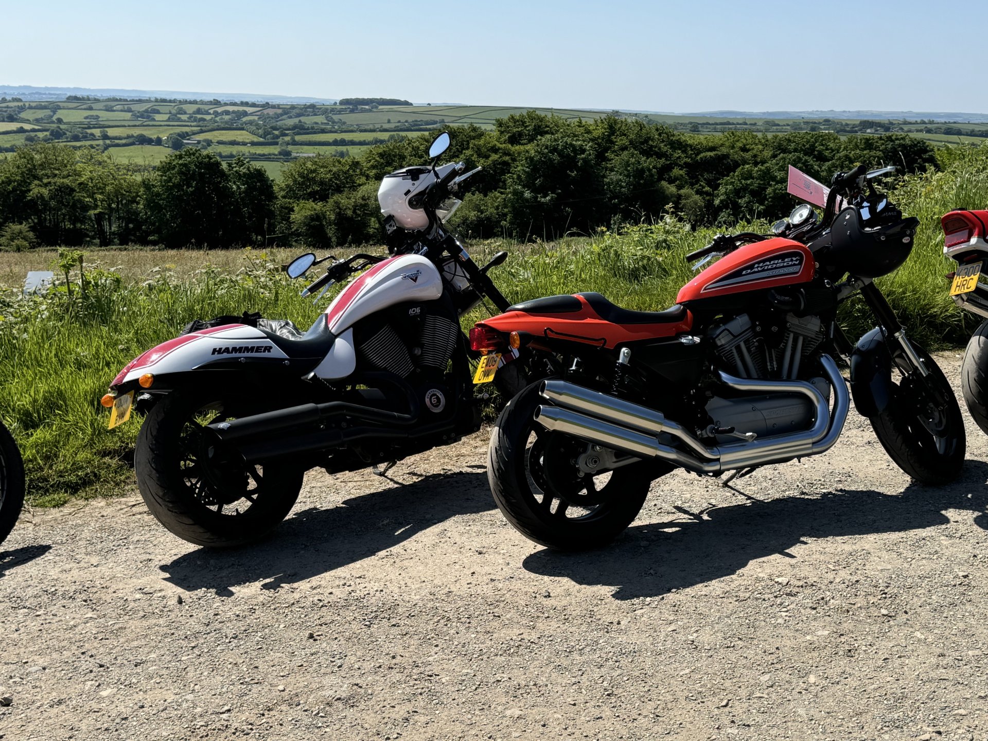 Been working overnight Friday and Saturday plus again tonight Sunday, not moaning but it does make getting out on the bike more difficult as I do have to sleep at some point. Anyway finished work at 8:00 am in Launceston getting it home, changed and my bike out and up at 4 Turnings garage for 9:00 am to meet up and go to Kit Hill this morning. Bit of a rush but made it. 6 of us today, me and Hornet, Steve and Super Meteor, Martyn and V85s, Gary one and 1974 Bonnie, Bob and 1975 Commando, Gary two and 1200 Sportster, Chris and 900 Triumph Scrambler. We made 3 miles and Bob’s Commando died, made another mile and it died again then again but started the fourth time. This time after an Italian tune up it ran fine for the rest of the trip up the Kit Hill. Don’t know about the trip back as I headed home before the rest to sleep at midday. Much as I think his Commando is the mutts nuts that there is why I haven’t got one. Fuck that. It’s around 30 miles to Kit Hill, it was a great run in beautiful weather. Loads of bikes out and about. Bimbletastic It seemed to be Commando and Brit bike in general day today. Some really nice stuff there, loads of UJMs, Harleys, Indians and even a couple of Himalayan’s. Not one chinky bike though Bob’s ‘Bastard Commando’ his term not mine The sound this made was awesome I know they aren’t a thing any more but I like the look of that Victory Overflow parking Triple Brick, I nearly bought one of those back in the day, in fact still have a hankering. I always thought they were small back in then but I suppose my perspective has changed Old a new Bonnie’s side by side, old Bonnie for looks for me. If it were my money it would be the newer bike don’t want the vibes Lovely old Honda Yes please Bantam D1, belongs to a friend’s brother.