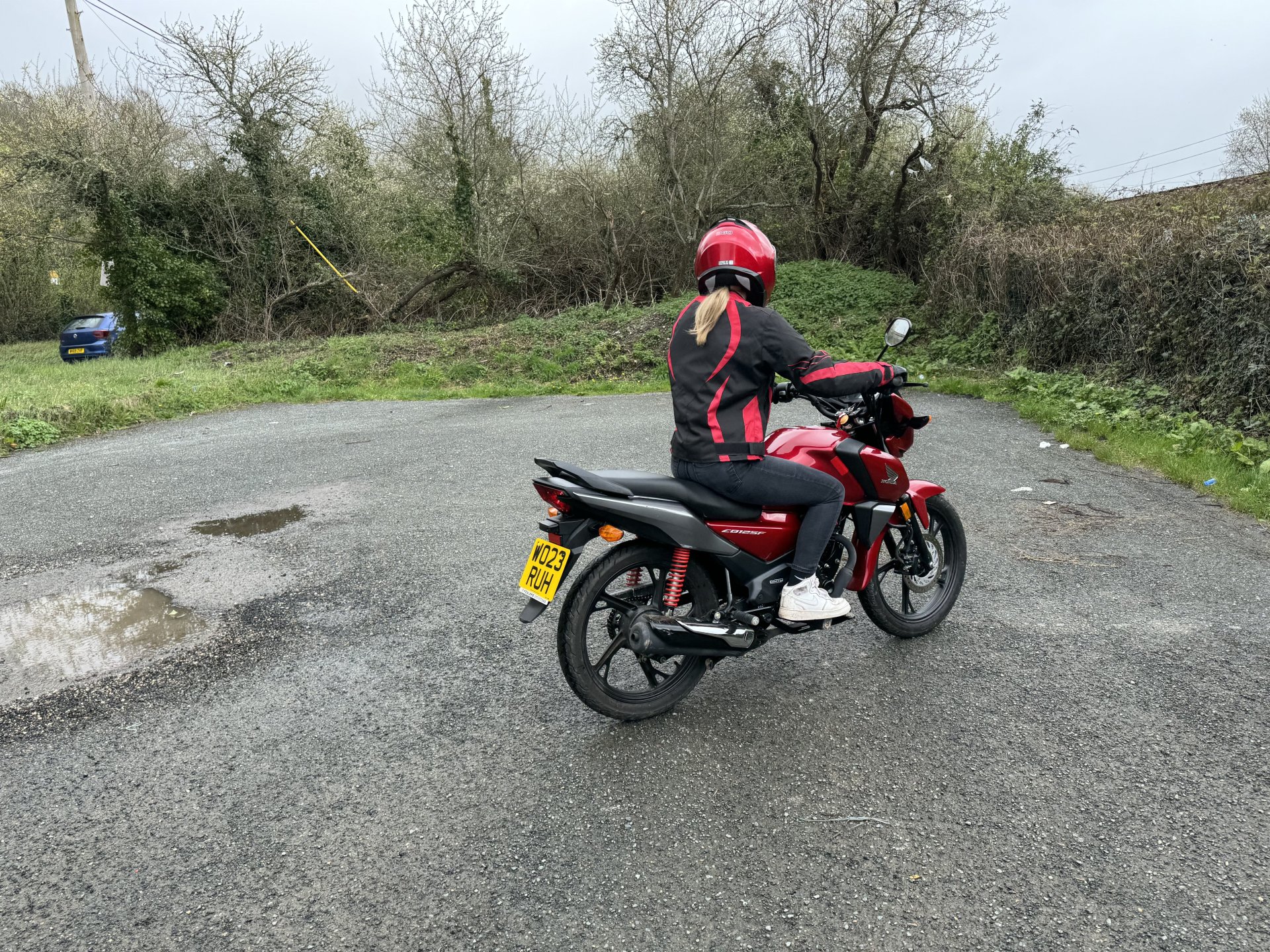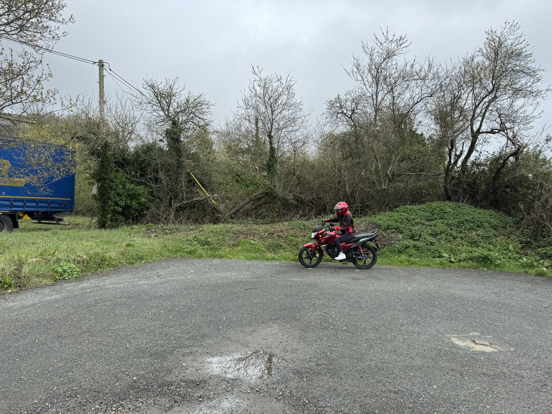 21. Another couple of hours out with my youngest. Small improvements and has now managed to do a few controlled figure of 8’s. I was pleased with her progress but it is a good patience tested for someone who is not naturally so. Each stint went on for no longer than 30 minutes. Took a couple of breaks to talk about what we were doing any why. We laughed during one of the breaks outside the shop as this guy turned up and was howling for his mum who went in the shop. Stunning creature. Have to have a couple of days break now as we are both working but should be back at it on Monday.