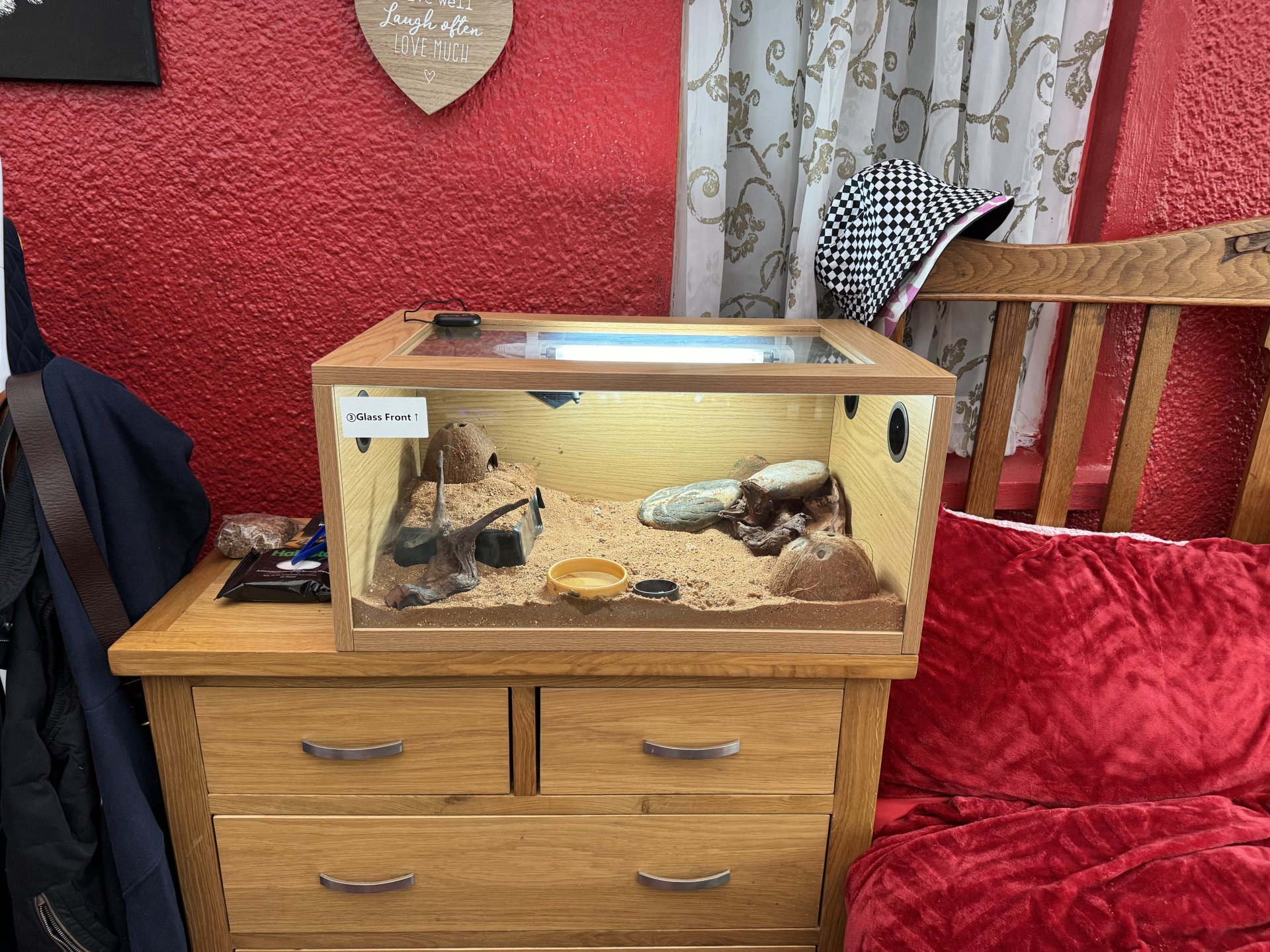 You would not believe the stress and fuss my youngest is making about getting everything right for the Bitey Little Fucker. Jesus Christ she was in earlier fussing about the temperature of his Vivarium being to low, found out she had put the heat mat in upside down. Sorted now she is in because the temperature is 1 degree to high, told her to put the thermometer in the right place then all is perfect. Then she is on how he hasn't eaten a cricket yet. FFS she has been like it all day. Yet you got them running around wild having the time of their life without being on the verge of death every 10 minutes. Oh and she has christened it 'Stitch' I have told her he will always be the Bitey Little Fucker to me. Apparently I'm not funny at all but seeing the whole escapade has cost me the best part of £300 I will laugh if I want to, as tears are the only other option