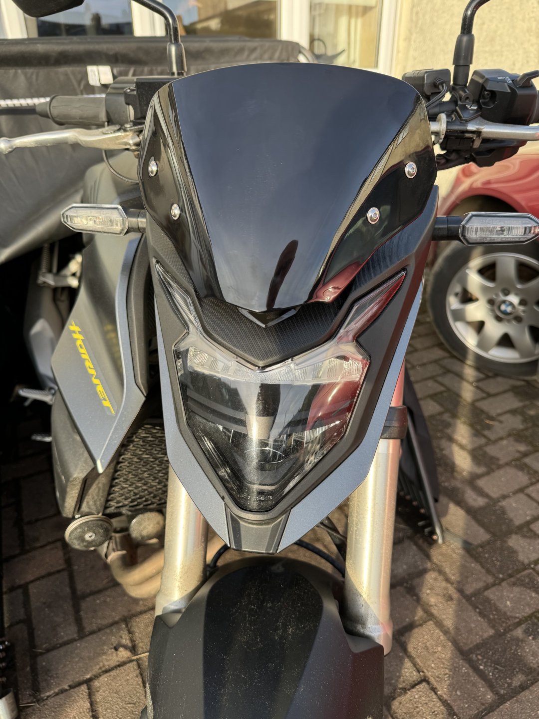 As you probably know I traded my CB500F for a Hornet. I agree with the light looking a bit odd. I bought a small screen that improves things in my opinion. Ride a Hornet if you can I am confident you will be impressed, very much like the CB500 just better in every way. I love mine and the only downside for me was the higher fuel consumption, but that is the only thing I can think of and not a big deal in any way.