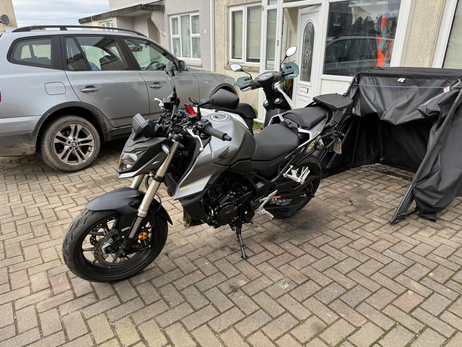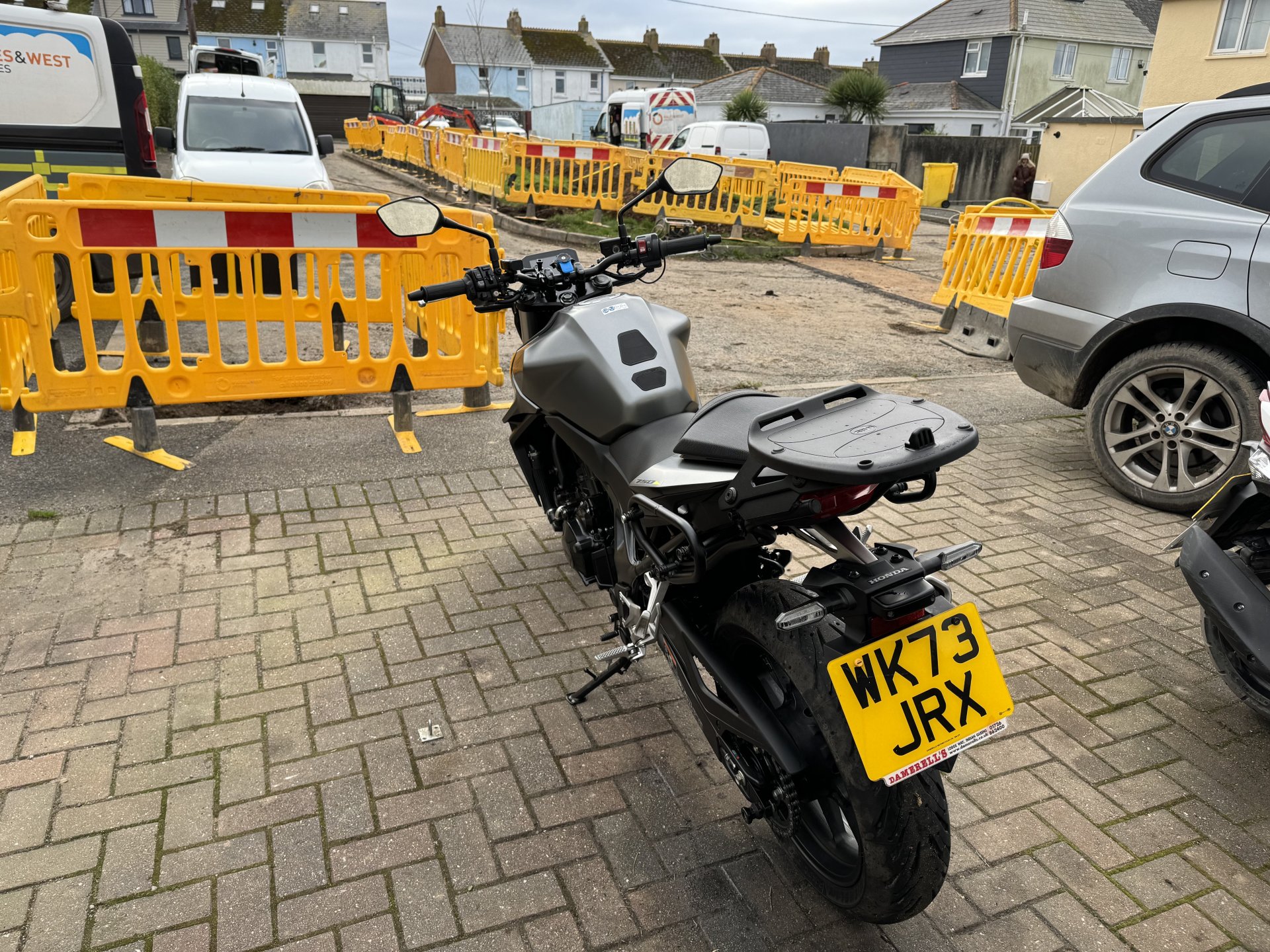 The little square I live in is being dug up to fit a new gas main. Its fucking caos out there at the moment. The lads doing it are as good as gold but its a pain nonetheless. Been out fitting some hand guards to my boys scoot as he has been freezing his tits and fingers off coming home from work. Also managed to drop his scoot on ice last night. All low speed, he is actually quite sensible on the roads, and there is only couple of mild scuff on top of scuffs that were already there. I cleaned and checked his bike over before I did the handguards. Budget chinky stuff is definitely built down to a price. Also put the topbox plate on my Hornet and gave it a wipe over, tyre pressures, oil, chain and other maintenance.