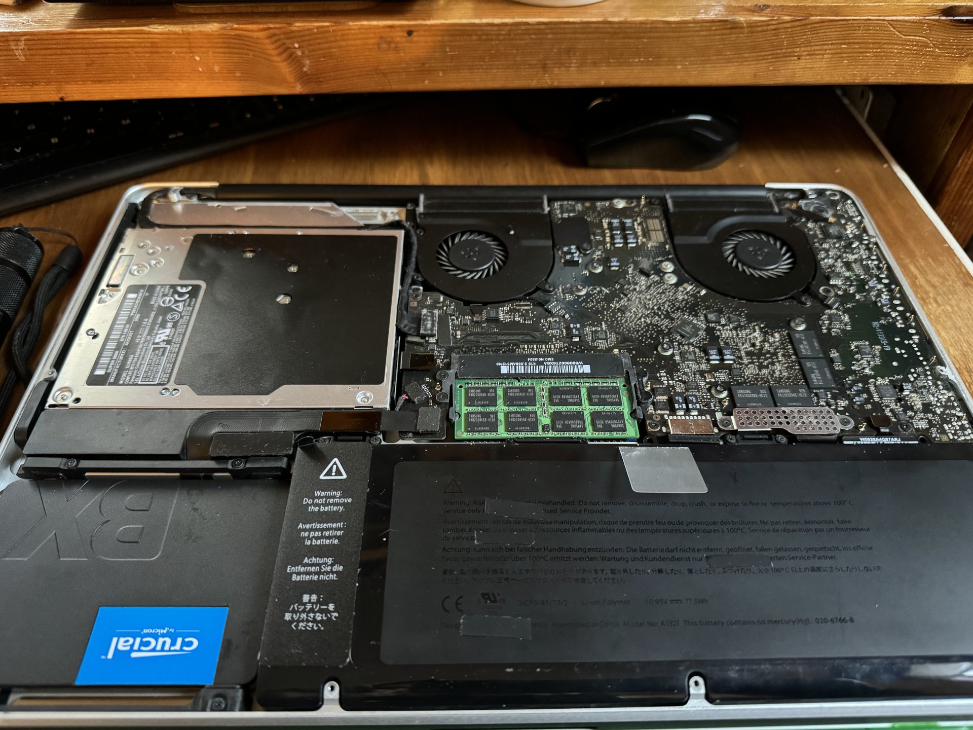 Well looks like aI spoke to soon, as the battery died on Kermit. Not a genuine Apple battery I will say. So that triggered me and I had to sort it. £30 for a new one and so open heart surgery and all is good. I would have loved to fit a genuine Apple battery but they are just not available so had to go for another shonky chonky one, although to be fair the last one worked for 3 years so I am not to disappointed with it. See the puffy old battery that was blocking the track pad. Any way all good now and Kermit is happily charging and forced his way back into the fold