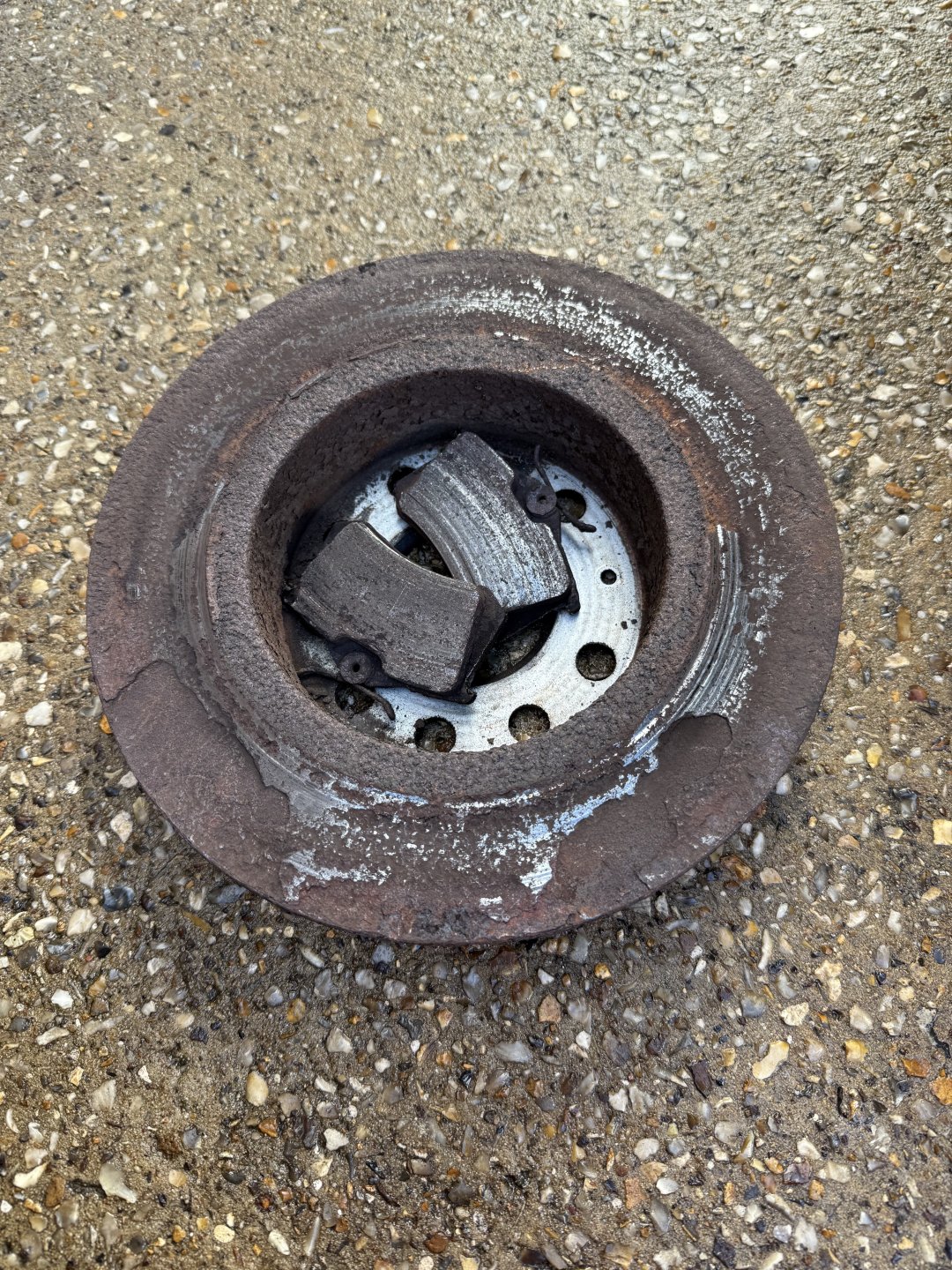 Possibly the worst disc I've changed in my working life. Strangely, the other side had the seized caliper and had been hot but nowhere near as bad as this one.