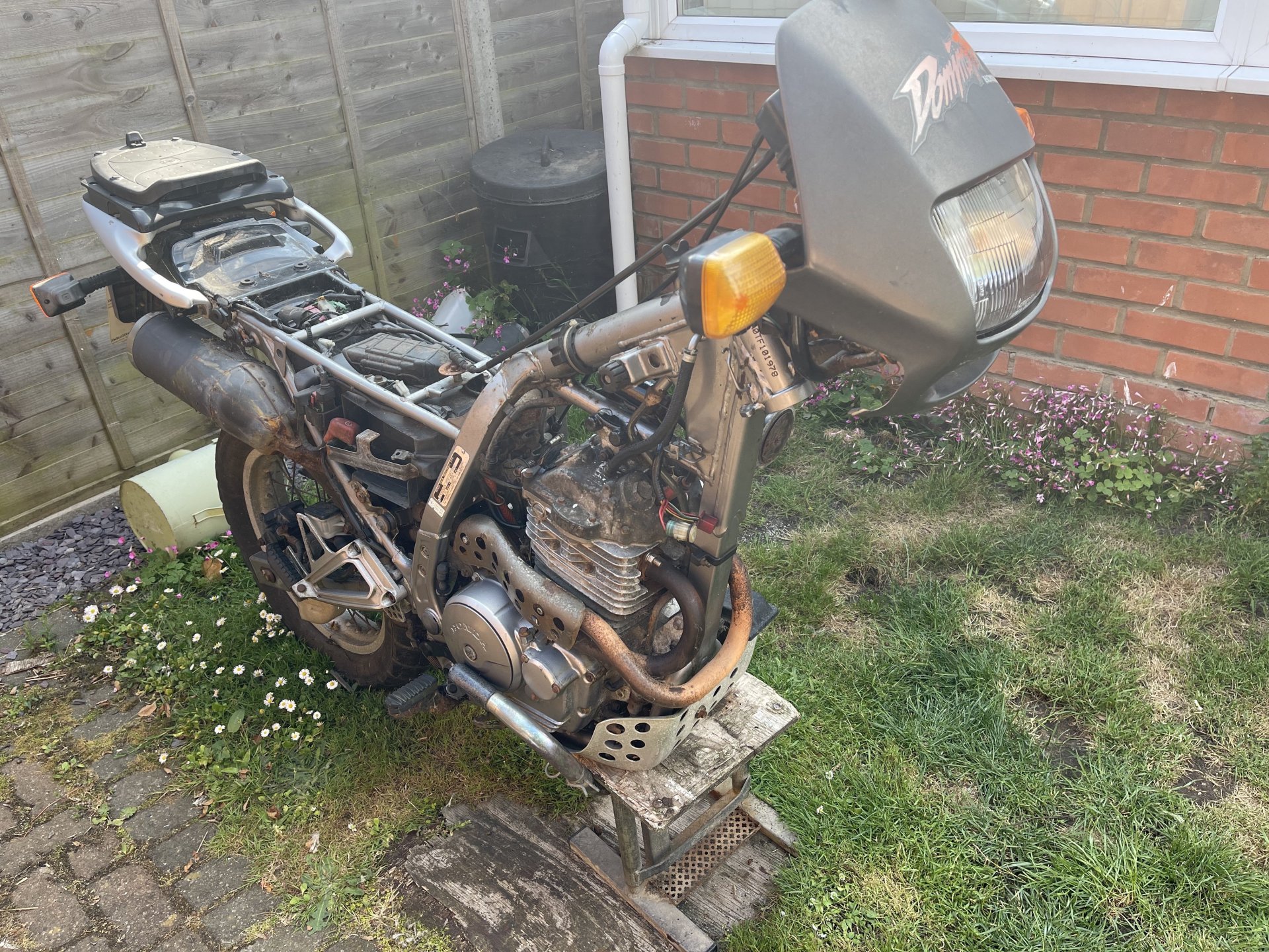 Bloody rabbit should be, but the bike will be ok. Scruffy but we'll get it on the road. Got any death wings Pete? Both tyres cracked up on the walls.