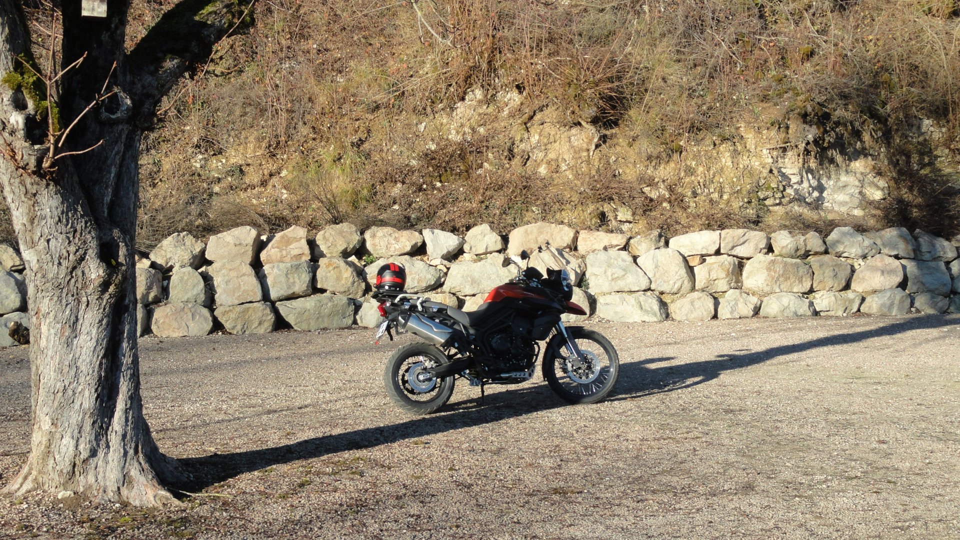El cheapo tent from decathlon bought years ago for about 3o€ specifically for the Bol D'or ( i.e to be disposable) but still going strong. reasonably easy to put up and take down, rolls up small and into a bag that is narrower than the panniers and is held on with 2 bungees. For a 2 night trip I have a change of clothes and footwear in one pannier. sleeping bag ( a good one) and inflatable matteress ( back packing item) with wee stove in t'other. Top box has the rest of my gear ( chargers, torch, spare gloves depending on season, 1st aid kit, bog roll, maps, one meal worth of food, coffee, water bottle and book) in the summer i'd fit waterproofs in here as well, out of season jacket liner if not wearing it. I usually manage a small tool kit in there somewhere as well. A proper waterproof roll bag is better and bigger than a topcase if your using a soft pannier set up like yours I expect. I do regret not having a hammer or something to bash tentpegs in with on that trip, the ground was hard as bloody nails in places!