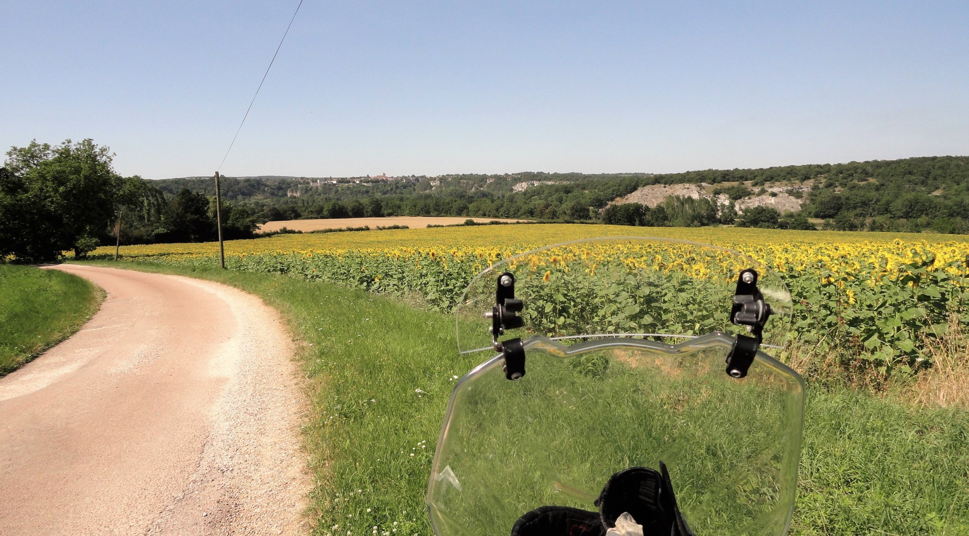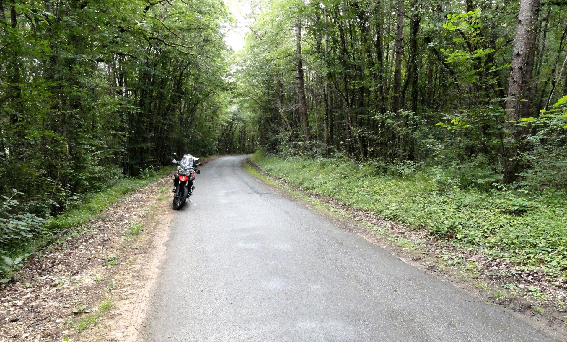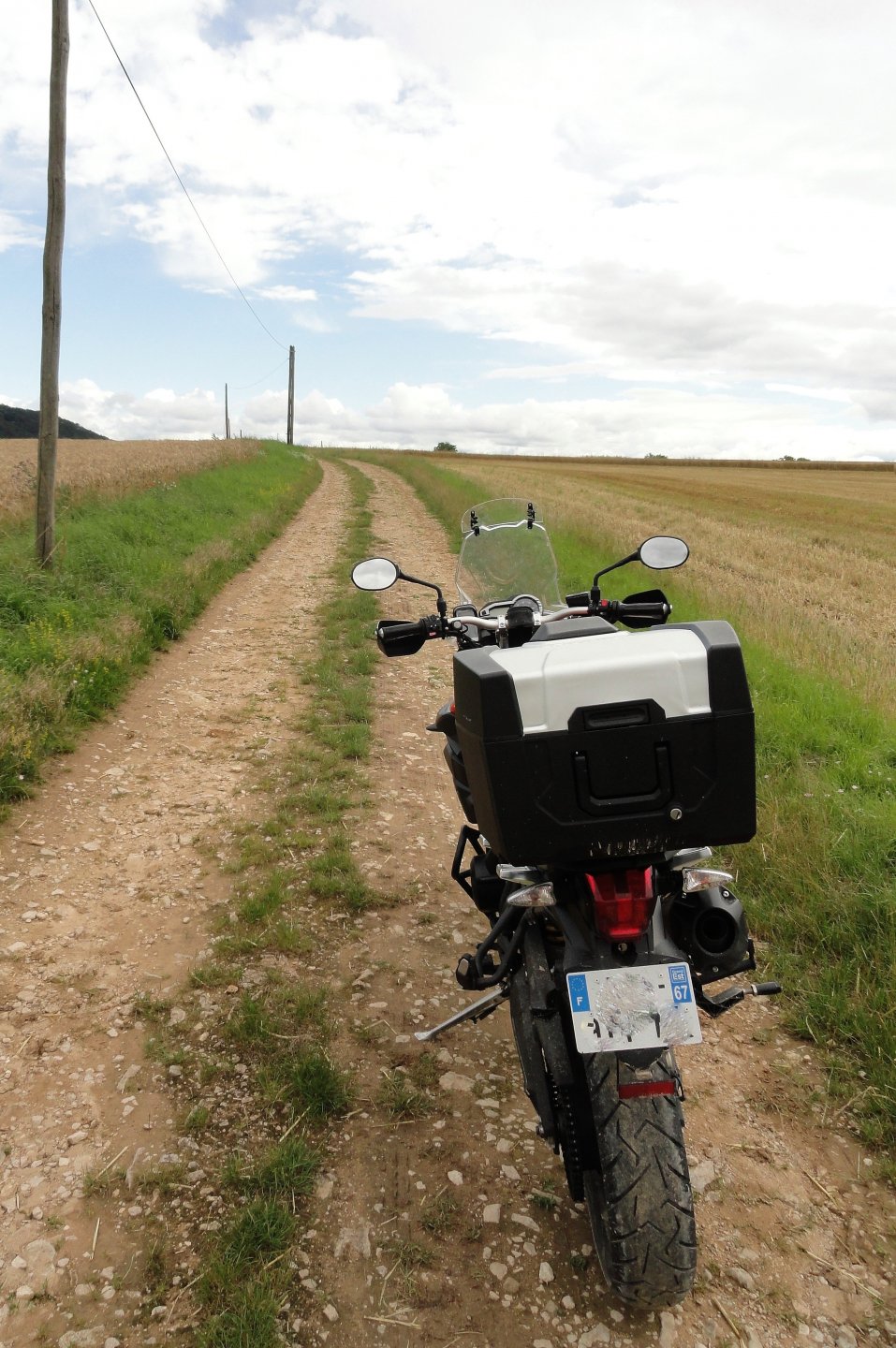It's a rock formation, basalt I think. called " Les rochers de basseville" it's f'kin apalling Bob, hot and wet with endless waves of storm cells moving noth east across most of the country. Storm dodging is fast becoming a riding / navigation technique. it was rather fun, I don't usually risk dirt tracks when there's storms about as I'm alone, on road tyres and not particularly competent off road so if it gets wet and slidy I could find myself rapidly out of my depth, but I am starting to gain confidence with the tiger off road and these were trails that i,ve been on before in the company van so I knew where I was and how far I needed to go to find tarmac again.