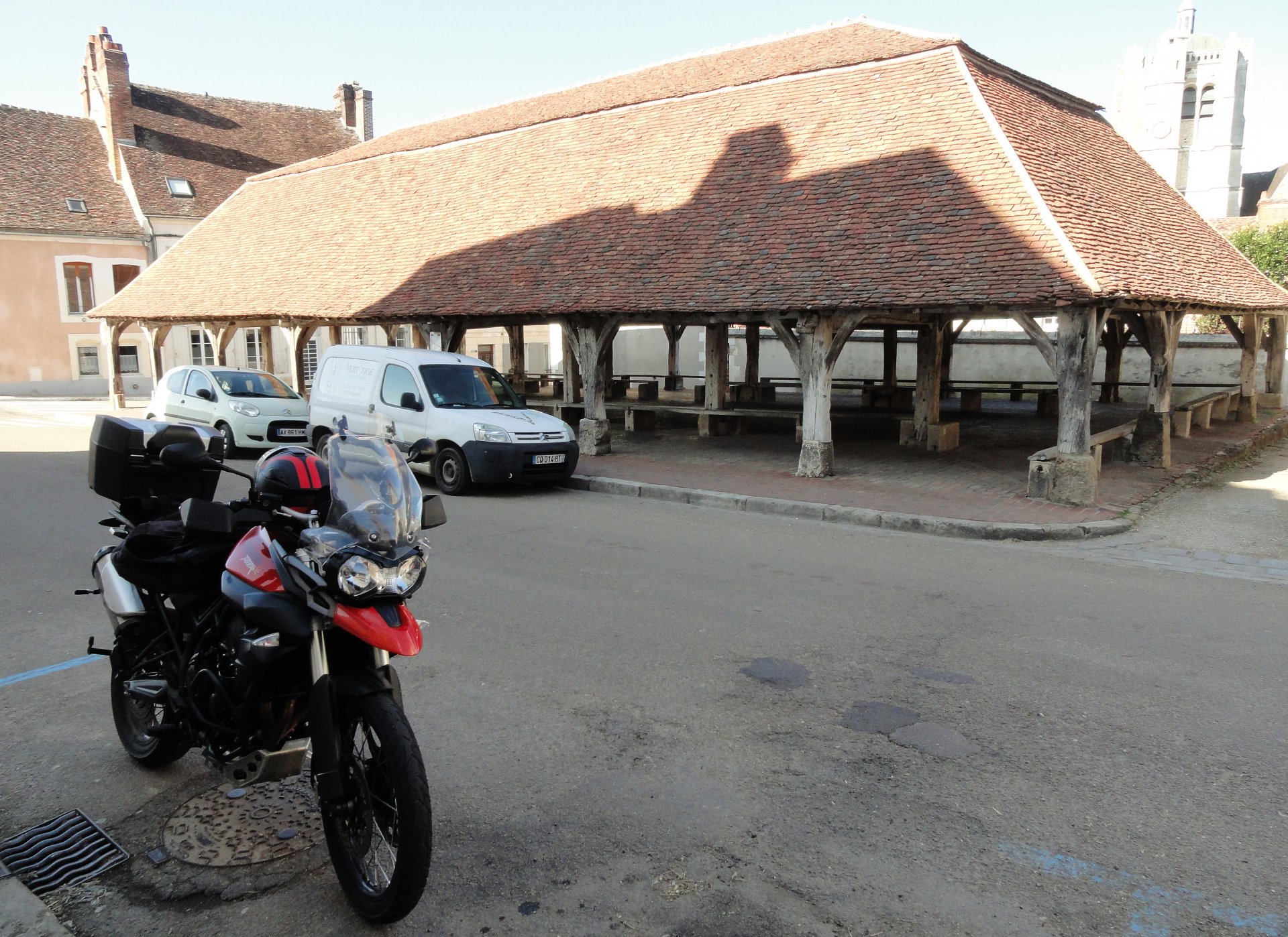 continuing the Cardinal points of the Yonne departement with the Eastern most point accessible by road: Desperately getting some riding in before we get shut down again... The eastern most point of the Yonne is on the D186 between Jully and Fotaine les seches ( which is in the Cote D'or departement but has a Yonne postcode...bizarre!) 47:46'38"N 04:20'04"E Round trip of 130 odd km, took nearly 3 hours with lots of little windy back roads. The trip to the east edge was more interesting than to the north with wide open vistasalternating with the eternal forest roads. Surprisingly few vinyards though as the route skirts the southern edge of the Chablis region through the Tonnerois area. Destination point was prettier too but no sign or marking of any kind to actually show the boundary like they do on the major roads. This is it, to within a few meters : everything in front is "Cote D'or" and behind is "L'Yonne" ( I like this pic) I was running ut of fuel, having not refilled since yesterday's Northwards jaunt, so googled the nearest fuel point and headed there at Ancey le Franc. From there rode home via Noyers sur Serein got home just in time to pick up a call from N01 daughter aho'd managed to rip the rear bumper half off her car whilst picking her sisters up from school... ho hum... nice afternoon out though, but temps are rising and it's getting to that stage where the flies are back out, you really want thermal gear on whilst actually riding but the minit you stop you drown in your own sweat...