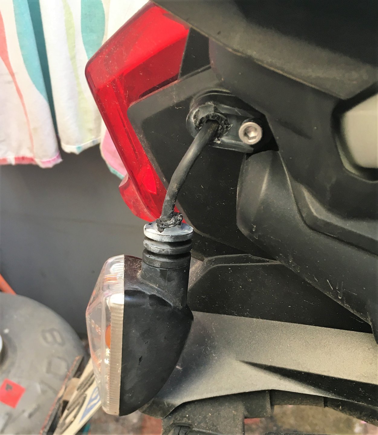 Replace an indicator... quick job you'd think... I could do this on the transalp in about 10 minutes ( having had plenty practice at dropping the tralp and breaking them) It's fixed on with one allen head bolt threaded into an insert or a clip inside, and the two electrical connectors under the seat...right... WRONG!