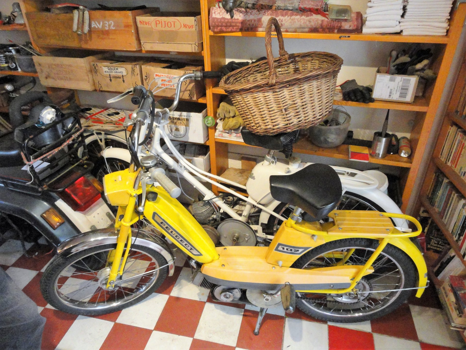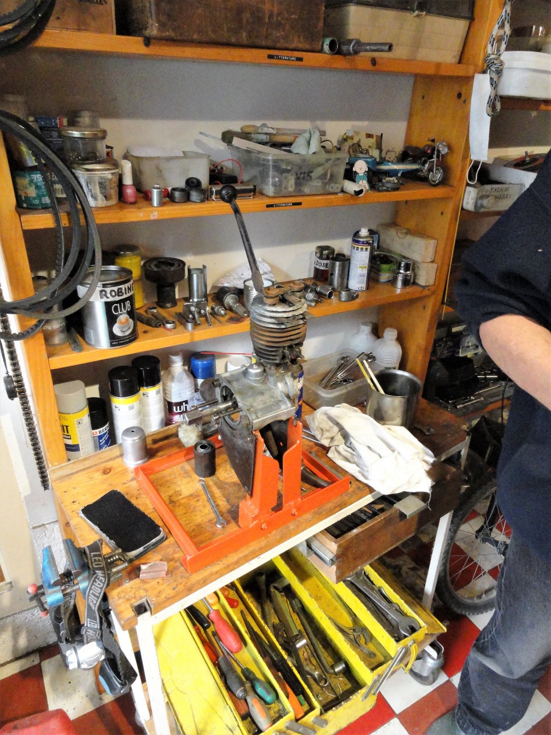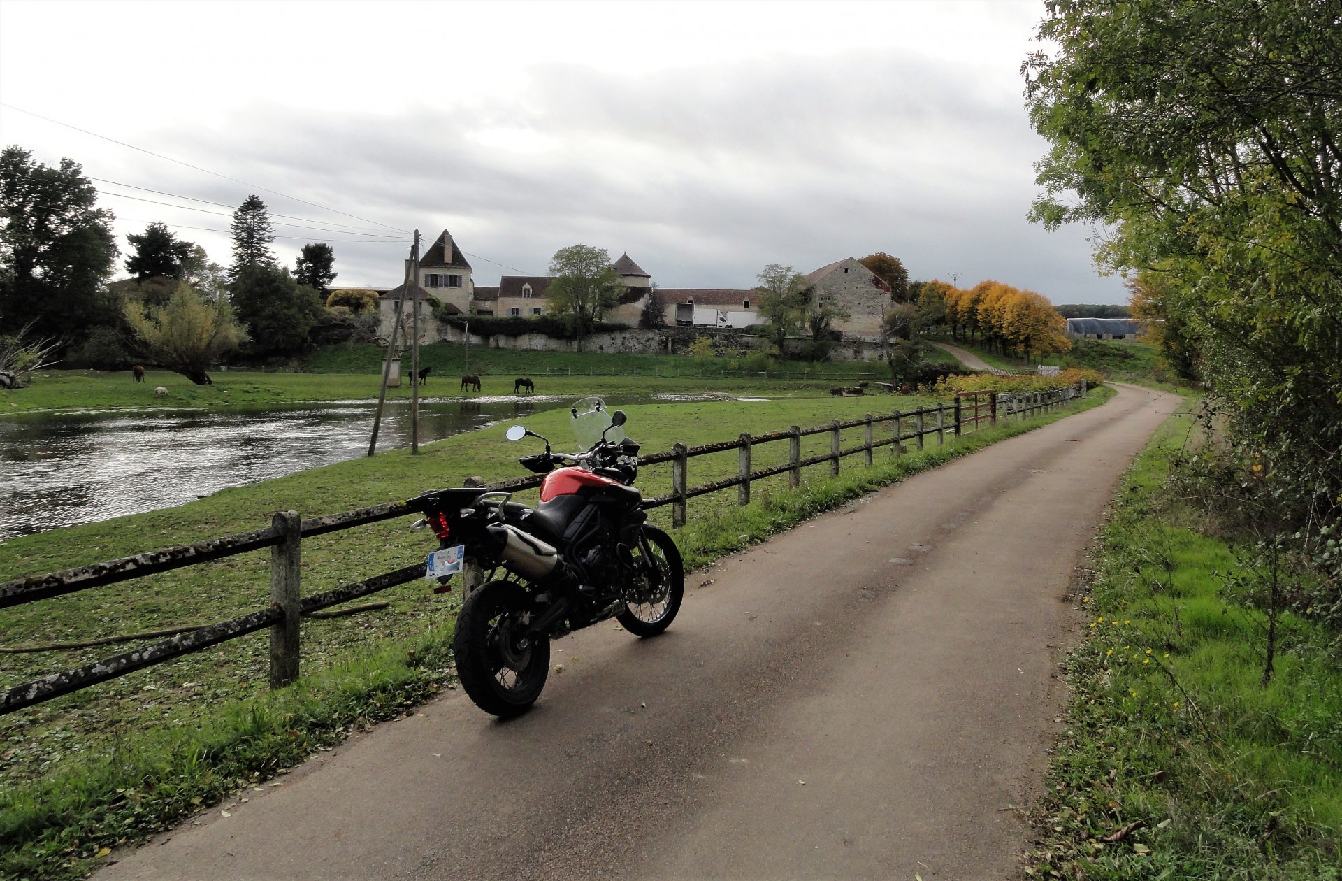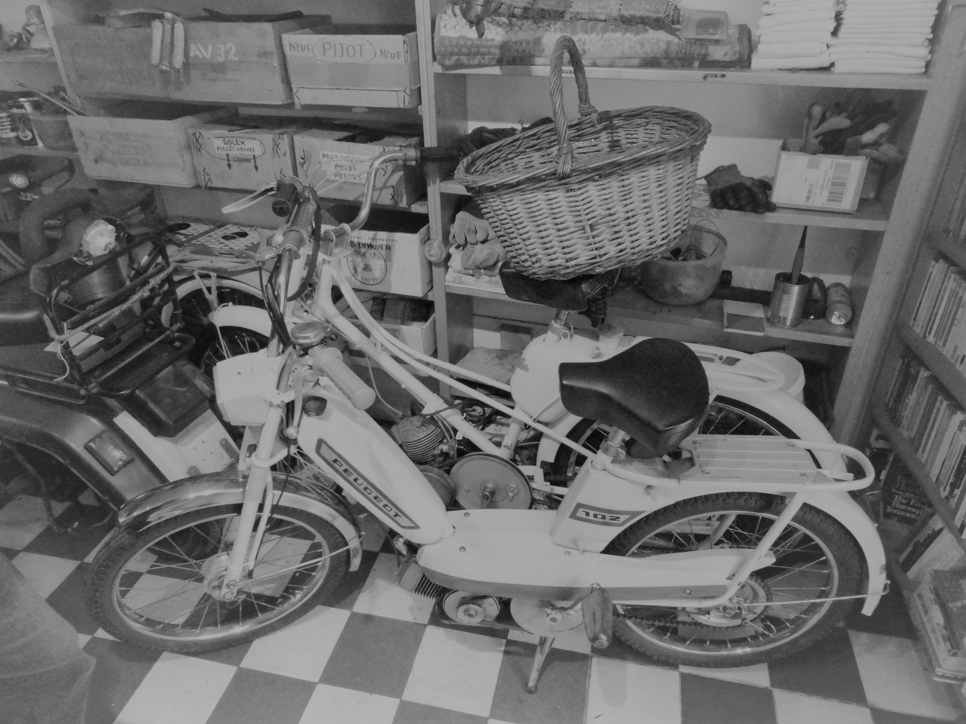 Had a serious session with the physio this morning which did my arm some good so I thought I'd better cancel that out straight away by going riding this afternoon out towards Chablis and Tonnerre first leaft home about 3 ish. Almost caught the curvature of the earth here, or what would be the curvature if it wasn't actually flat of course... 9/10ths cloud cover but not cold, about 16c I think. Chablis Vinyards going golden, shame the light was so poor a horsey farm for Pete and in a small village "Massangis" I nearly missed this but Tigger said "Oh! Tymmeh's Tomos!" But it wasn't, it's Motobecane from 1974 ( i think) and there's another one the other side I spent an hour or so here, this guy doesn't really sell them, he does them up. the motobecane will do about 70kph he reckons and last year he rode it down to the Millau viaduct and back with some mates on similar machines, that would be a hoot! in the vice in his workshop/ front room was the motor from a 1959 Solex his whole workshop looked like it had slipped out of the 60,s and today; The light was fading fast but when he said he used to ride big bikes and still had a Thruxton and a Velocette in the garage out the back I just had to have a peek and was confused to find only one bike... 'turns out to be a Velocette Venom Thruxton (which I didn't know even existed, I thought only triumph did a "thruxton") from 1967 if I remember right. gorgeous machine... but he rather i didn't take pics of it as it's worth quite a lot of money apparently. I still had an hour or so to ride home and it was nearly dark so I didn't take any more pics and got home around 7. My arm now hurts like hell, but it was worth it.