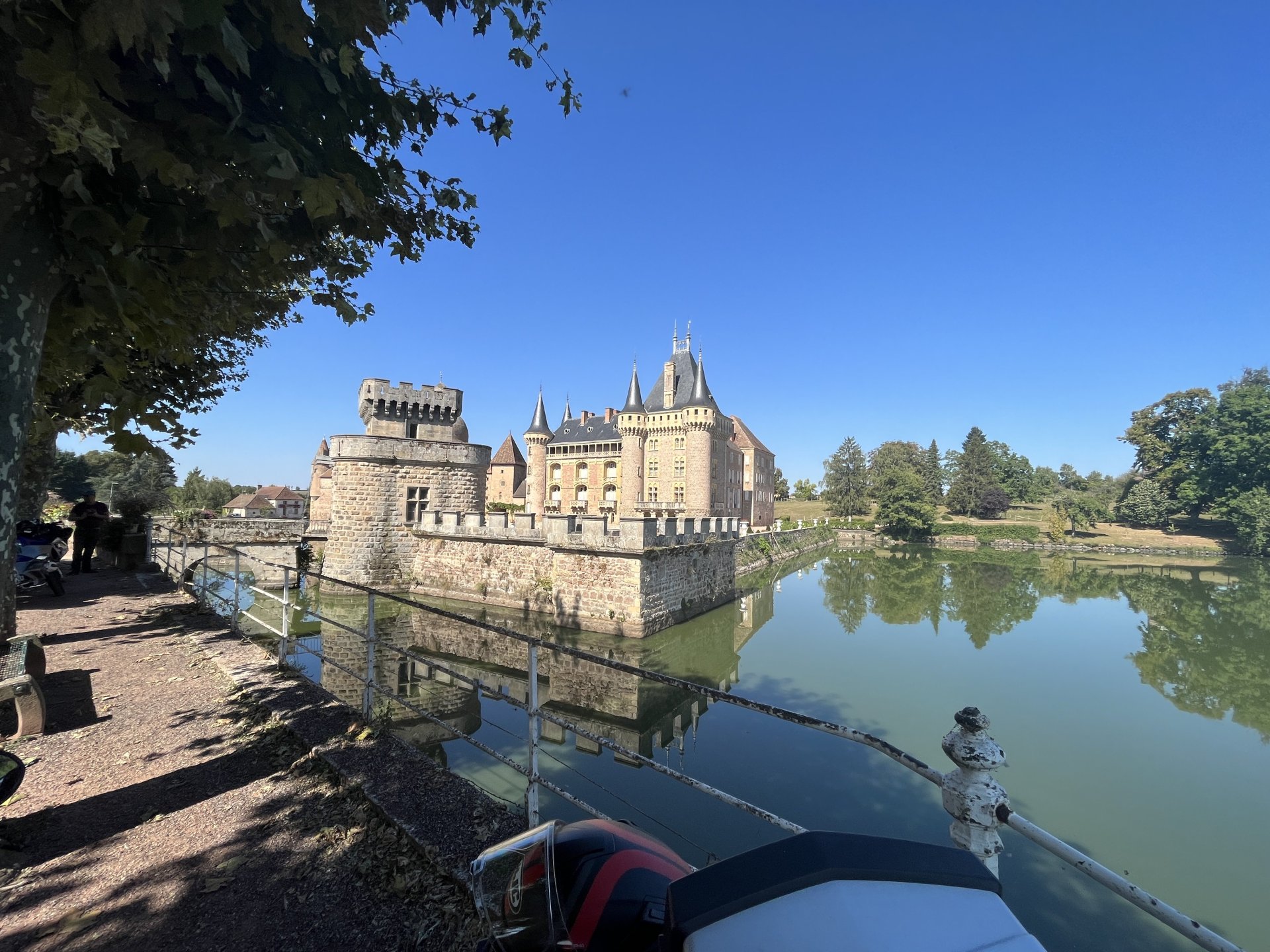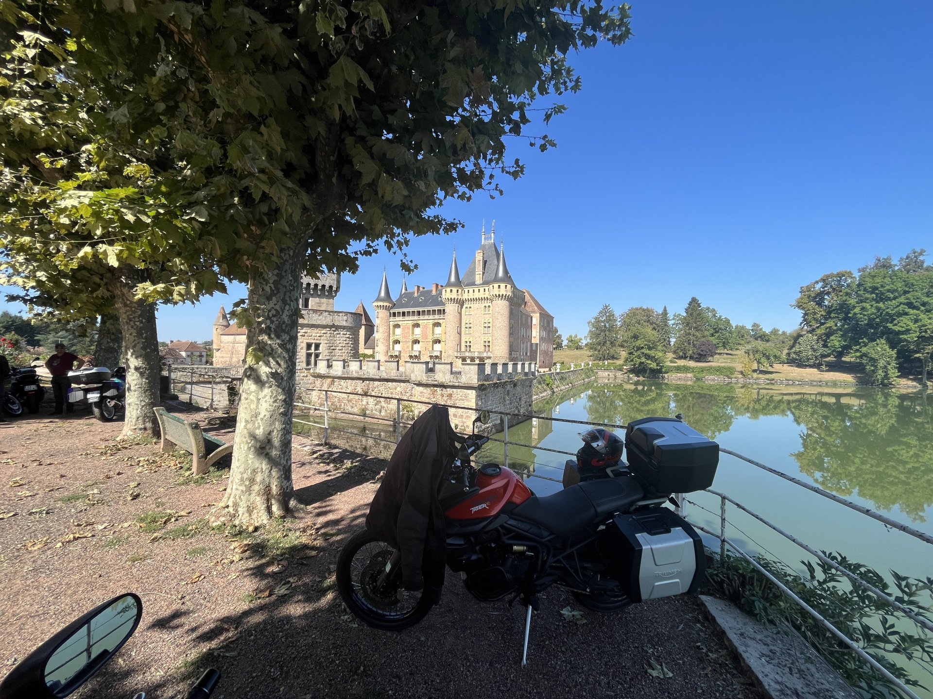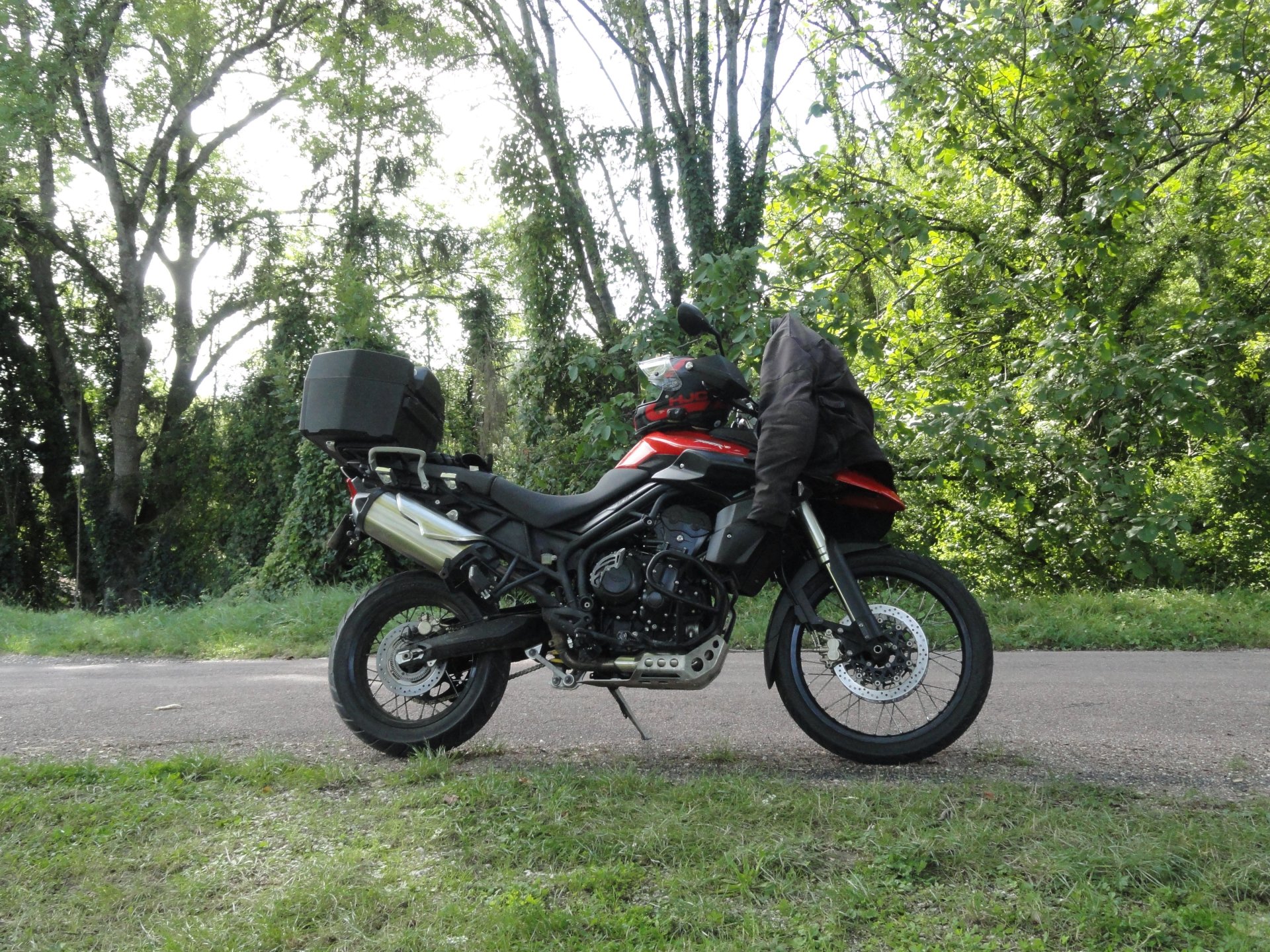 6 of us set off Saturday morning for a weekend in the Beaujolais, it wa going to be a laid back one cos the nutjobs of the usual group were otherwise occupied so there was only us sensible ones left... The first leg was from a mates house in Vallan ( 'bout 10 minutes from mine) down through the well known riding area of the Morvanand into the Charolais region south of here. As we were not actually straying far from home we took a meandering roundabout route which ended up at La Clayette for lunch. Being just south of Charolles, it was eviden that charolais steak was on the menu. the restaurant was easy to find, "opposite the Chateau" this was a coffee stop in a sleepy burgundy "one horse town" This was like 10 AM and the temp was just starting to get warm, around 25 ish (c) By the time we stopped for lunch we were vying for space in the shade at the bike parking and it was a solid 30deg C The chateau has belonged to the same family for the last 300 years, but was built in 1380, so a little over 100 years BEFORE colombus set of to get lost... themorning route: The afternoon route dropped south as far as Tarare, before winding back north east to Tramayes and again was planned to keep pretty much to the back roads. the route down as far a Tarare: Having had an excellent lunch of prime charollais steak and chips we lazed about a bit befor getting moving and reached Tarare around 4, temps well up around 35 C we were looking for shady roads... At tarare I jumped off from the group as I needed to sort a problem for by bro in law in Lyon and my plan was to nip across to Lyon, sort the problem and then jump on the autoroute north from there to meet the others at Tramayes around 6 30 pm when they should also arrive at the hotel. so my route looked like this I got to bro in law's in under an hour and sorted what needed sorting ( and had a bit of a mank at the care staff as he's got an expensive high tech cooling fan in his room but no one had thought to turn it on for him... not really their fault, there are almos no permanent staff now so they're all agency staff and know fuck all about anything and care a little less...) The temps in the city were up in the 40's so I wasn't hanging about longer than neccessary and rapidly got the F out of there ( I don't like cities at the best of times) Getting out or Lyon northwards means either going all the way around to the east or going through the Vaise and then the Fourvieres tunnels which is like the dartford crossing but with french drivers... not exactly fun at 5pm on a saturday evening and though I was able to filter through the worst of it thanks to a local bike who I let through and then tailed, by the time I got through the peage onto the A6 proper i was ready for some air so trusted the "Coyote" navigator to warn me of any speed traps I wound the bike up and didn4t get overtaken till I was pulling off at Macon ( for info, on the autoroute, apart from the automatic cameras that are well signed, the police are only really interested in anyone doing over 150km/h real speed cos less than 20km/h over the limit is basically a 45€ fine and 2 or 3 points so not worth their while) so I kept it around 150 t0 155 on the speedo, which is 145 to 150 real, you take of 5% which gives about 142 - 145 and your'e well within the "less than 20 over" bracket... so I got to Tramayes in time to grab the room with the best shower and grab a beer from the bar before the others arrived. Lyon -> Tramayes ( and no it didn't take me an hour and 9 minutes...) The hotel was nice and clean, had a well stocked bar, which we underetook to de-stock in a fairly methodical manner, and a good kitchen sunday morning dawned after a hot night only really disturbed by a bunch of drunken old men giting up to piss out all the beer they'd consumed that evening... oh, wait a minute... that was us... Oh yeah, and the gunshots at 04h30, that definately wasn't us... Usual continental breakfast, coffee and lots of it, croissqnts, breqd and jam etc we rode northish from there via Mont st Vincent where we stoppoed for coffee at the village fete that was seting up as we arrived, very genteel it was too and the views... https://www.burgundy-tourism.com/natural-sites/le-mont-saint-vincent the church here is 11th century so a good 200yrs OLDER than yesterdays castle Only 10 am but temperatures soaring again so we were all grouped in the shade How d'ya fancy a front door like this? then onwards towards Santenay where we pulled up in the main square at midday and aced the last free table at the better of the two restaurants. Believe it or not I had fish and chips We'd been riding through vinyards all morning with evocative names like, Mercurey, Rully, Santenay, and so forth, Les vendanges ( grape harvest) oficially started last weekend and so were in full swing with tractors and grape waste strewed liberally all over the roads, which made for some acrobatic cornering manouvres fron some of the group. The afternoon was a fairly straight forward run home across our usual playground and our lead rider who had meticulously planned the route thus far expressed a desire to follow for a while rather than lead and made the mistake of sending me up front. Well, the days of the group waiting for me and the transalp after a particularly "fun section" are definately over and my revenge was well and truly exacted Autun, chateau chinon, planchez, quarré les tombes for a beer, avallon and home The section Autun, chateau Chinon, planchez is one that parisians will ride 2 hours down the autoroute to get to and 2 hours autoroute home having ridden it, that is how much fun it is. Sorry so few pictures but i wasn't leading so didn't get to choose when to stop, and when I was leading I was having too much fun to stop, and it was too hot anyway. Highest temp was 37.5 degC as we rode through Autun. about 700 odd km over the weekend I guess.