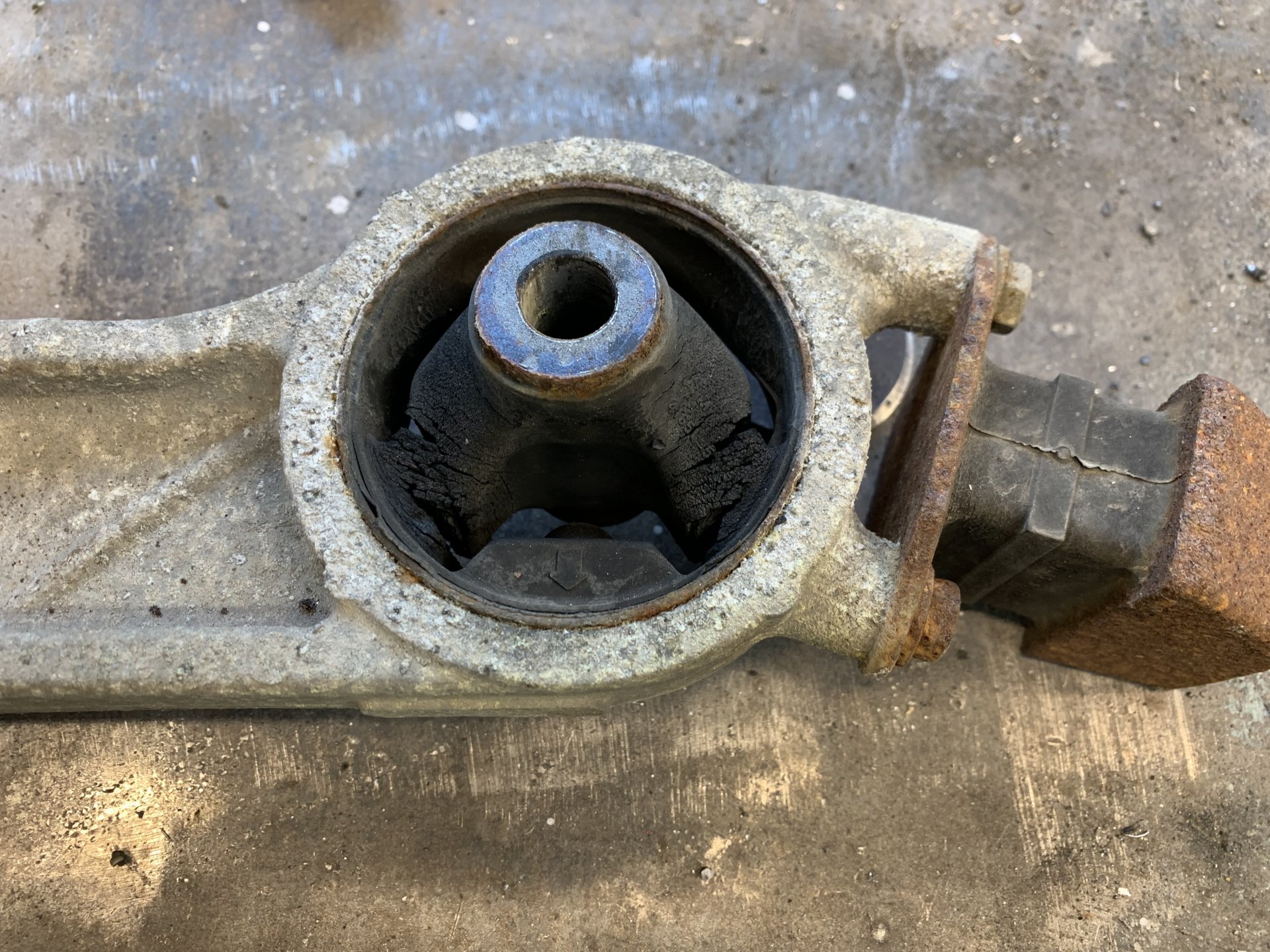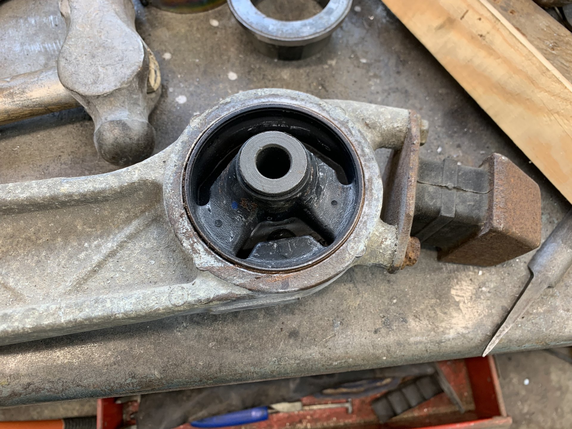Got the job done on the marmite wagon going by the skinned knuckle scale i skinned none so it was an easy job This was the bush i had to change located at the front end of the rear diff Had to make some bits to press the new bush back in taking the old one out was just a hammer and chisel job New bush in I've been getting a judder at low RPM in high gear now and again for the last few years and couldn't work out what it was, this seems to have fixed it stupid thing is i had the car MOT'd last month and the guy never mentioned this. I got under the car to re fit the exhaust heat shield that was rattling last week and spotted it straight away never liked this new MOT station i'm using he does servicing on our works vans he's fucking shit at his job i thought he'd be ok on the MOT's.