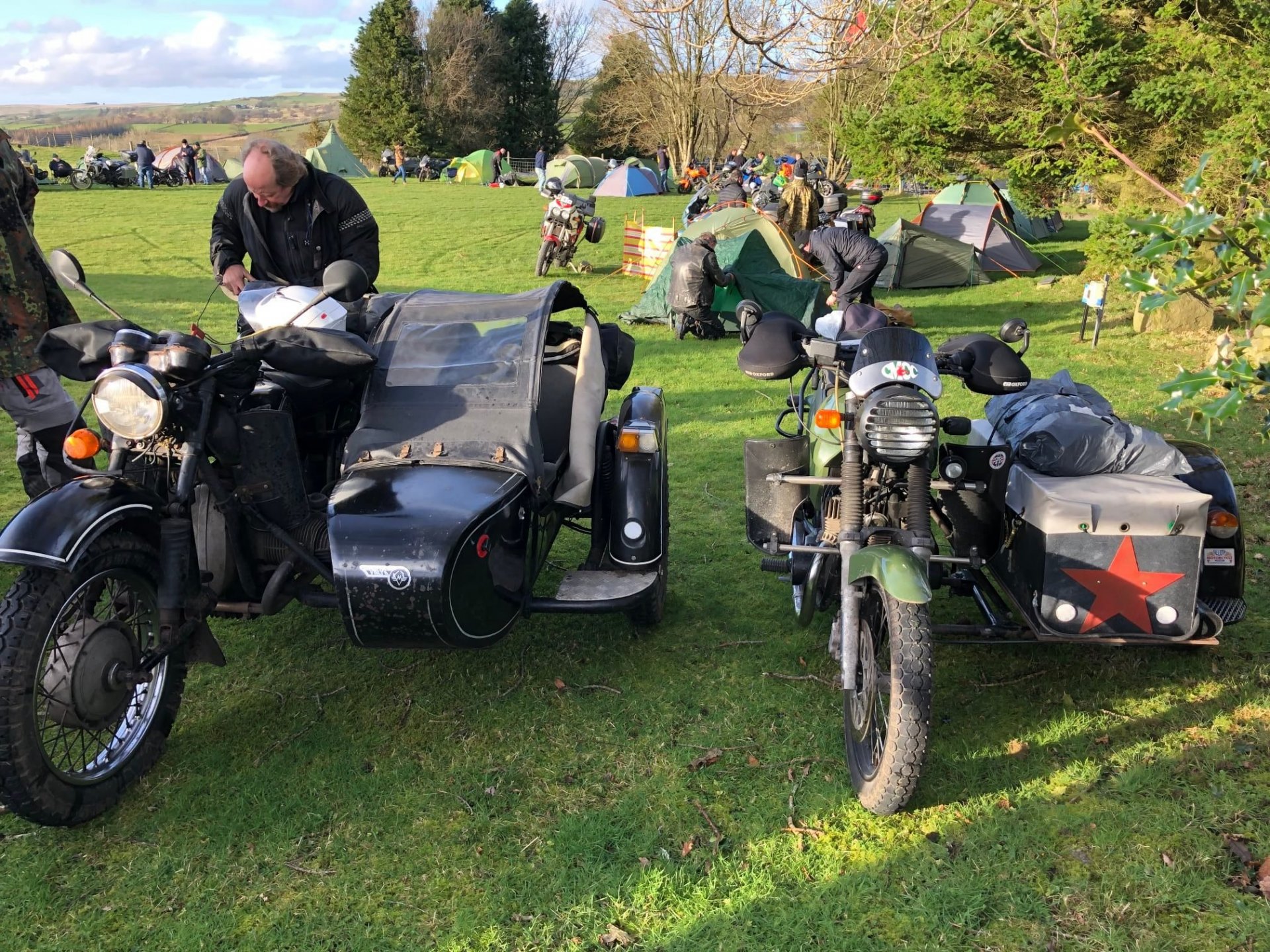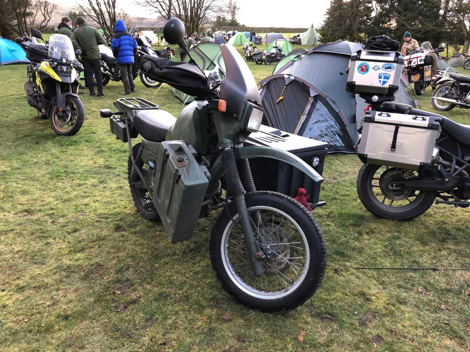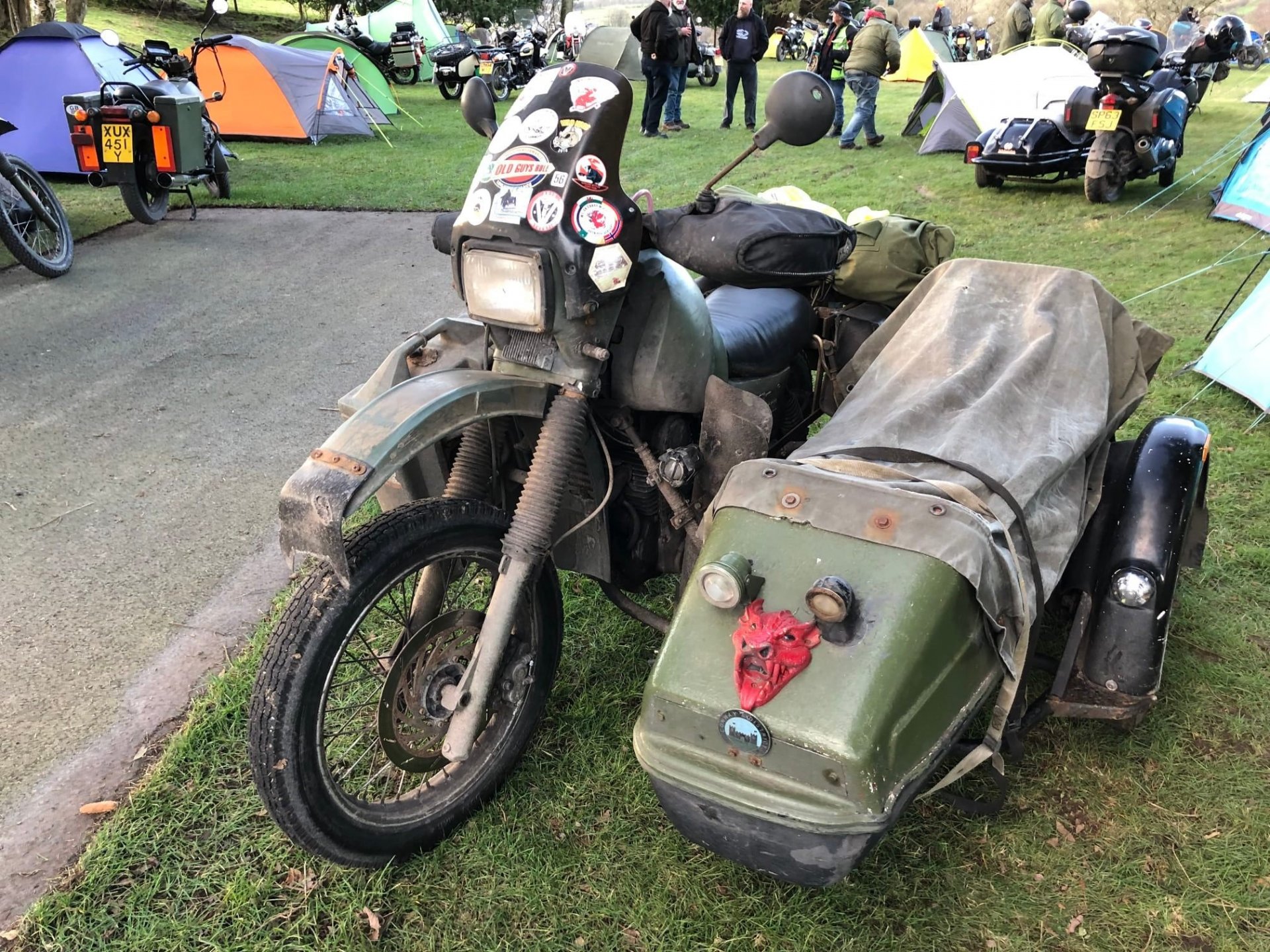 The Friday night was ok it was dry all night (except in my tent) but a very windy and was a proper pub camp site, and the evening was spent eating drinking and talking bullshit in the pub, quite civilised really. i was up and packed before the rain hit Saturday so only got wet on the way home. Photos pinched from else where, you get a different clientele to this rally then the summer ones not so many dickheads Notice how old every fucker is very few youngsters at all These two on the outside had travelled over 600 miles from Aingeray in France and they weren't the only ones from over the pond