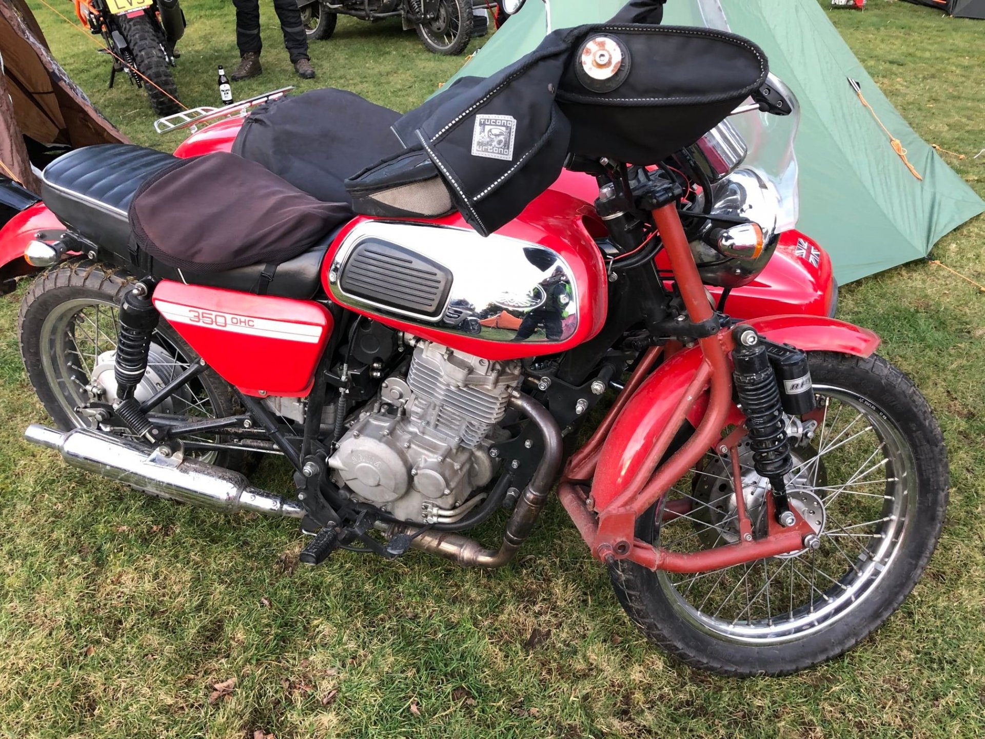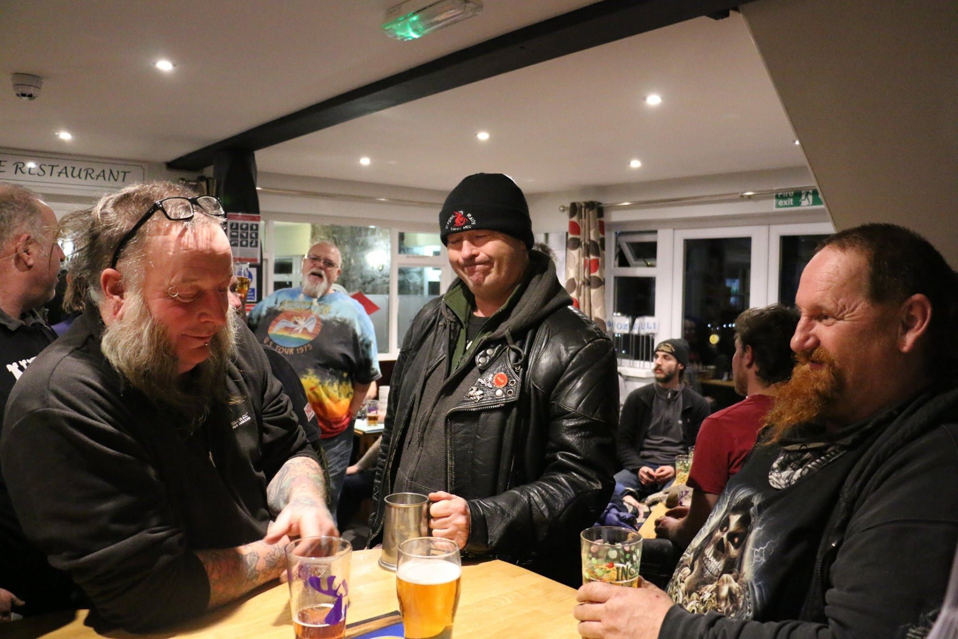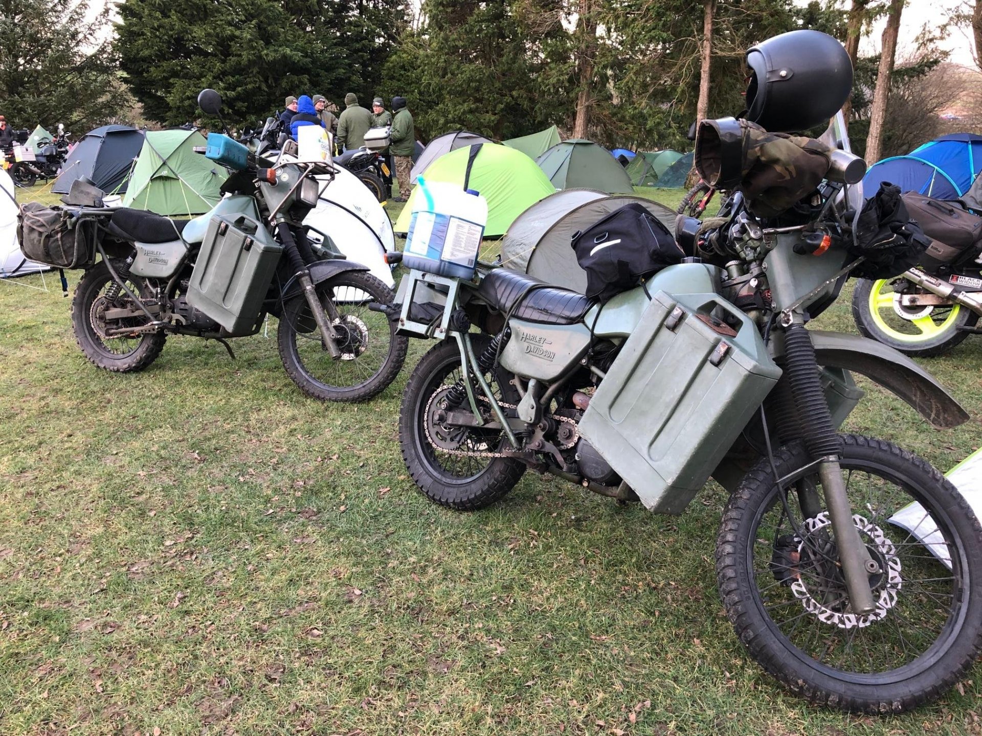 The Friday night was ok it was dry all night (except in my tent) but a very windy and was a proper pub camp site, and the evening was spent eating drinking and talking bullshit in the pub, quite civilised really. i was up and packed before the rain hit Saturday so only got wet on the way home. Photos pinched from else where, you get a different clientele to this rally then the summer ones not so many dickheads Notice how old every fucker is very few youngsters at all These two on the outside had travelled over 600 miles from Aingeray in France and they weren't the only ones from over the pond
